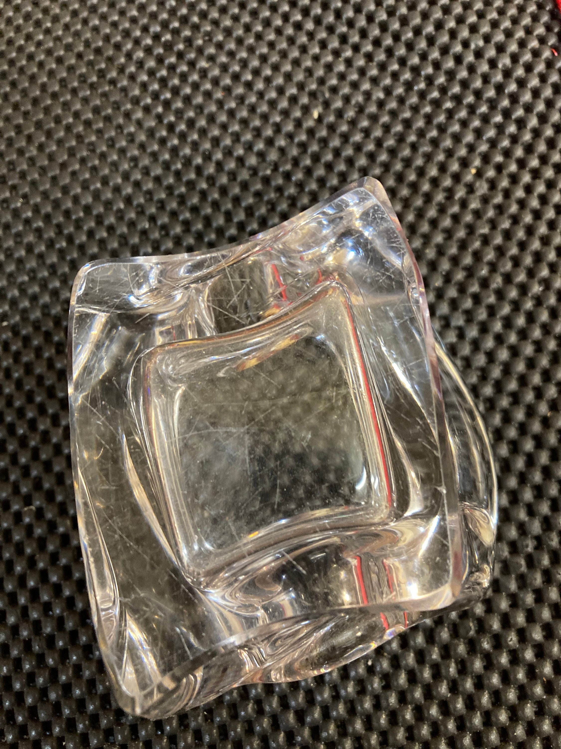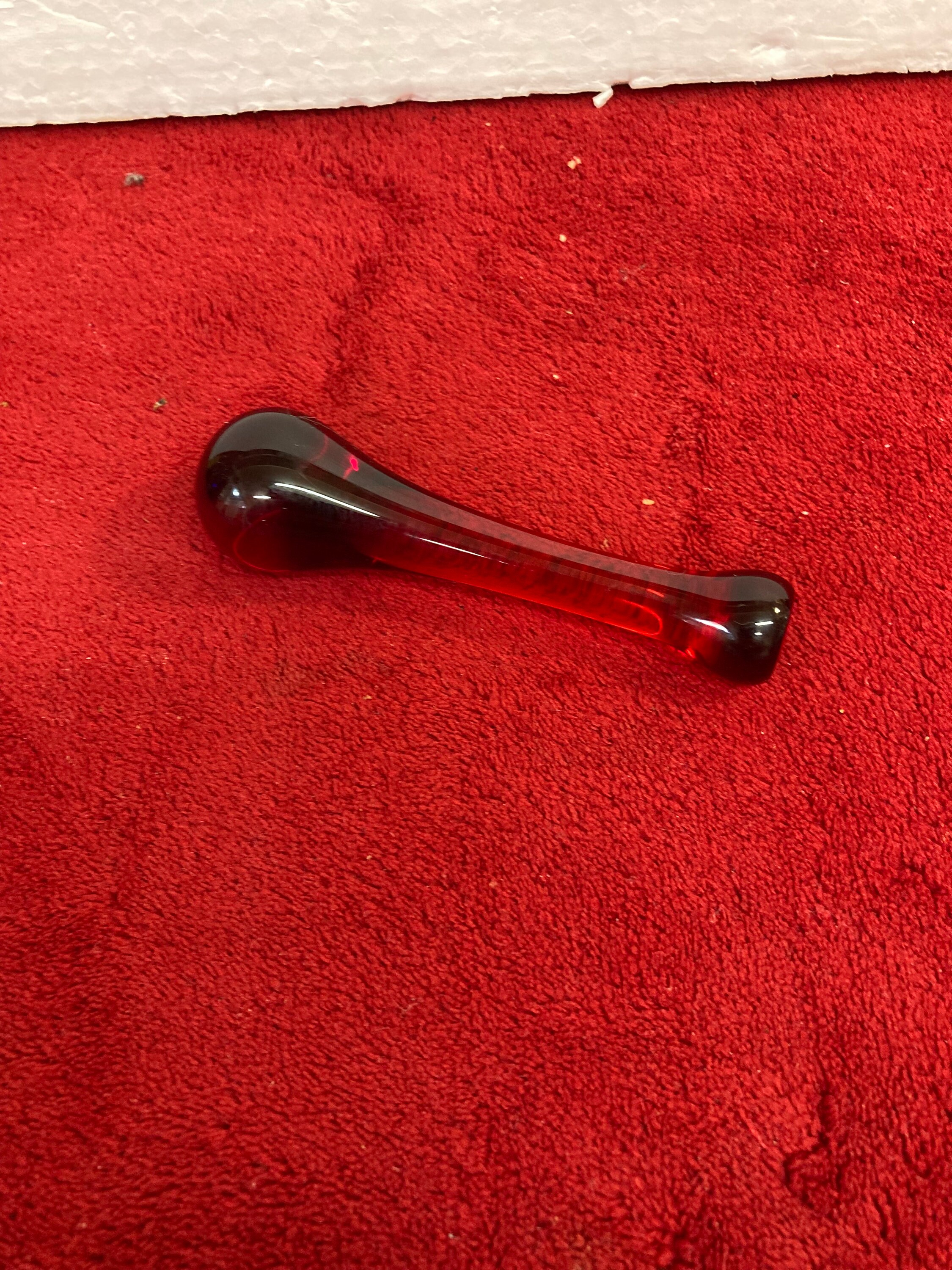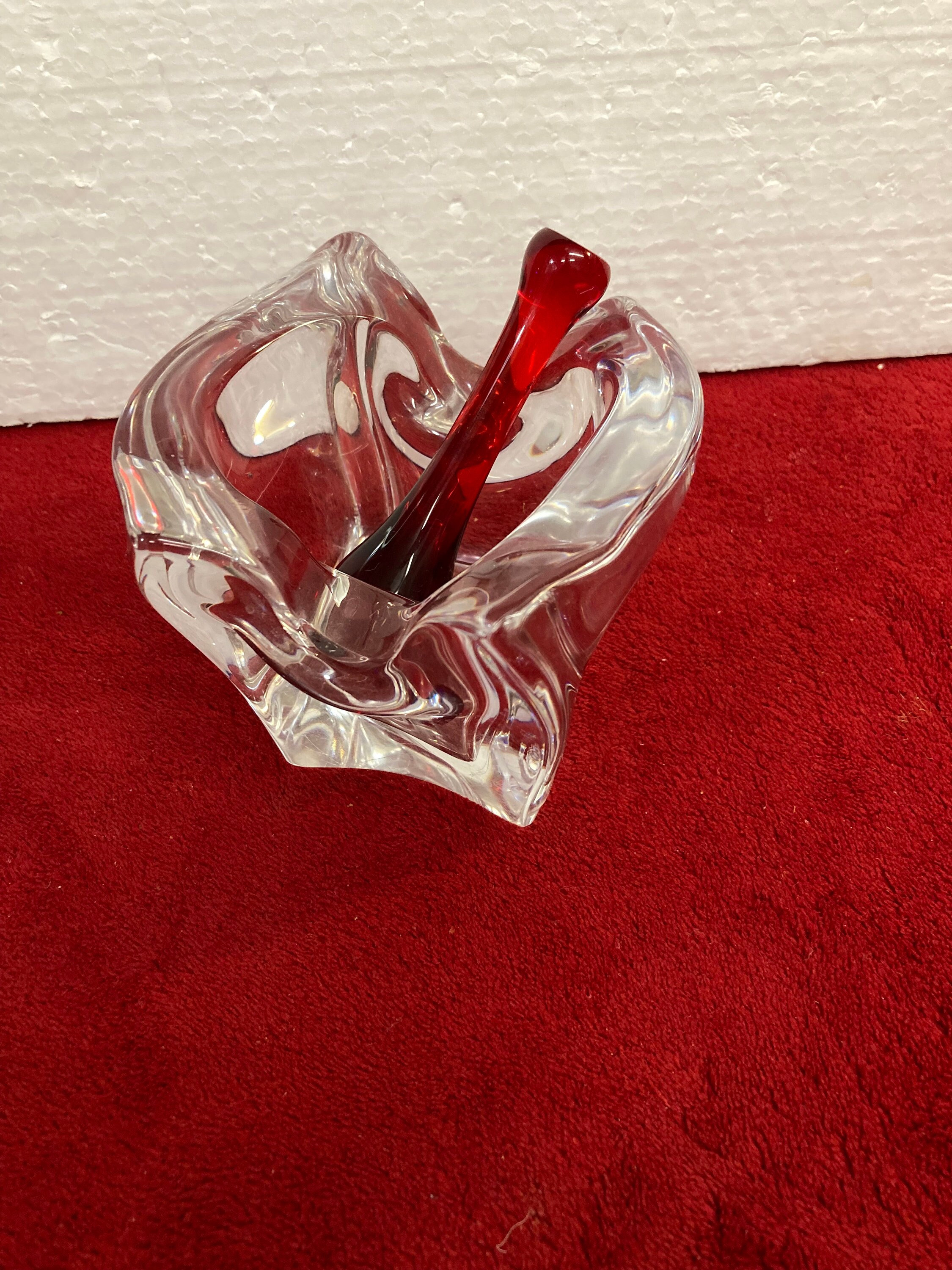 Handmade Vintage Clear Crystal Glass Mortar and Red Pestle