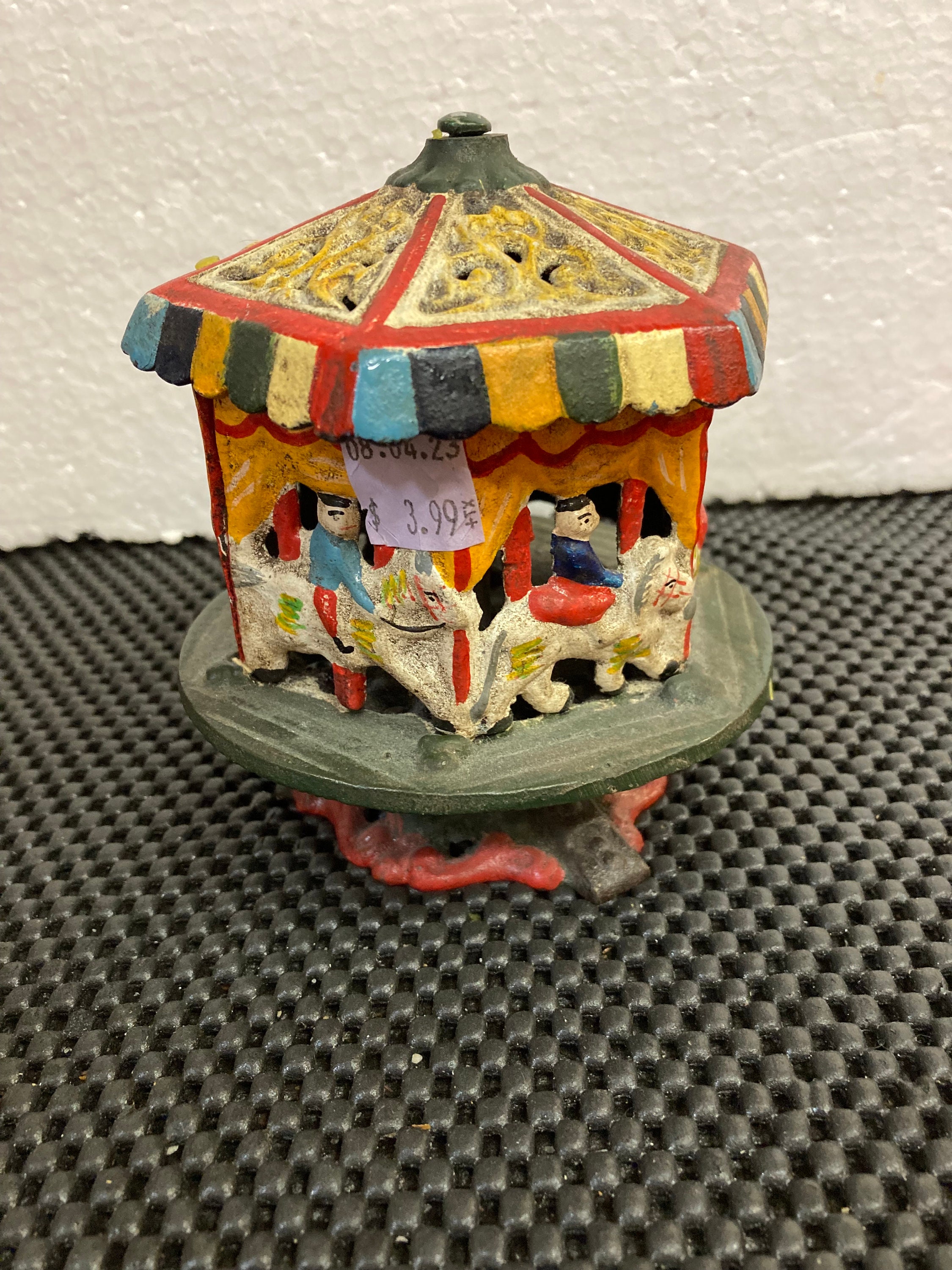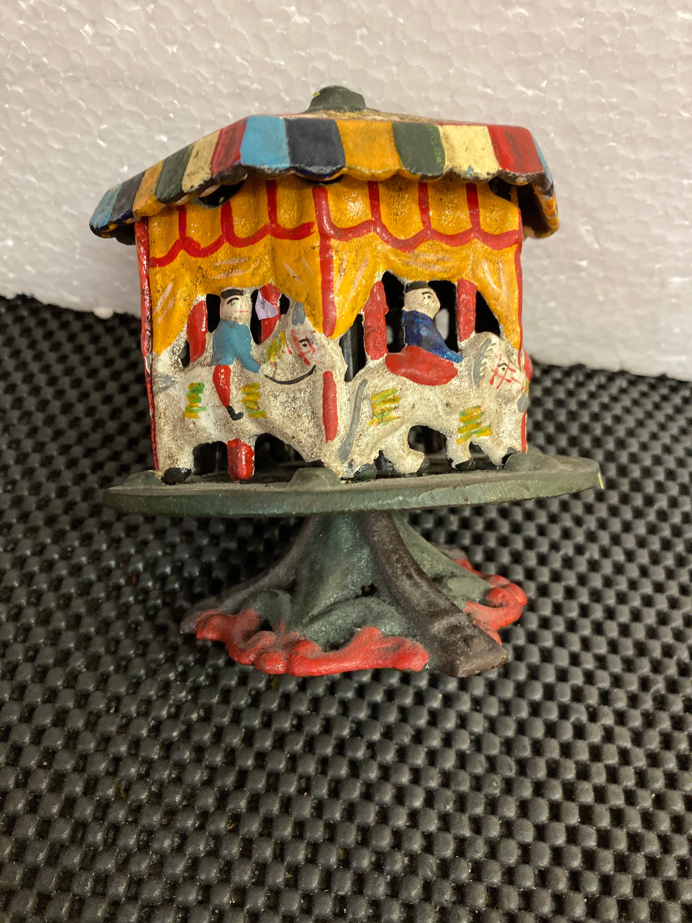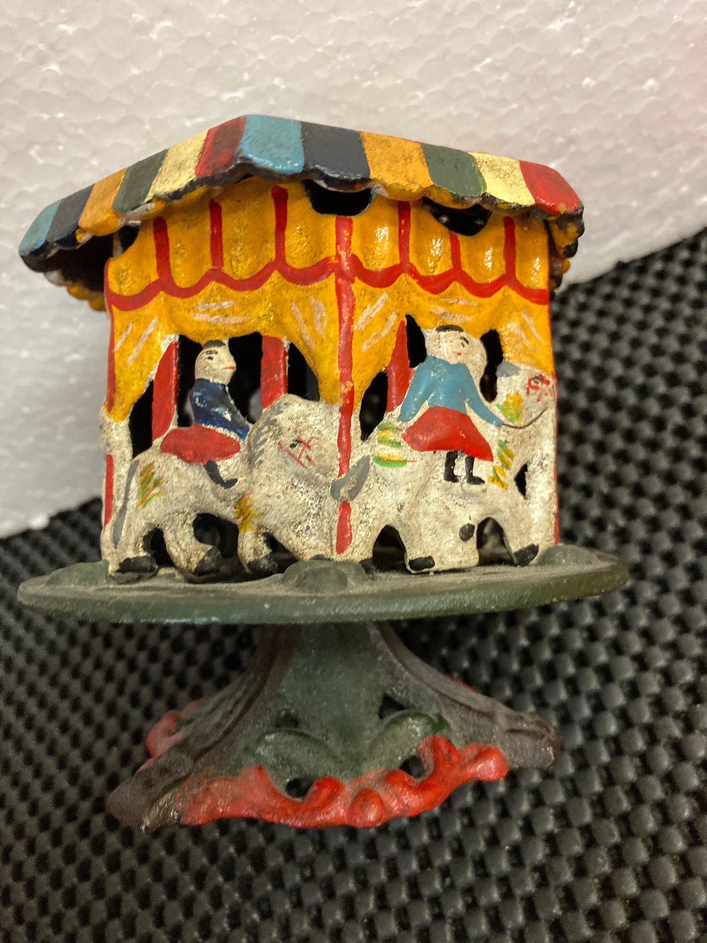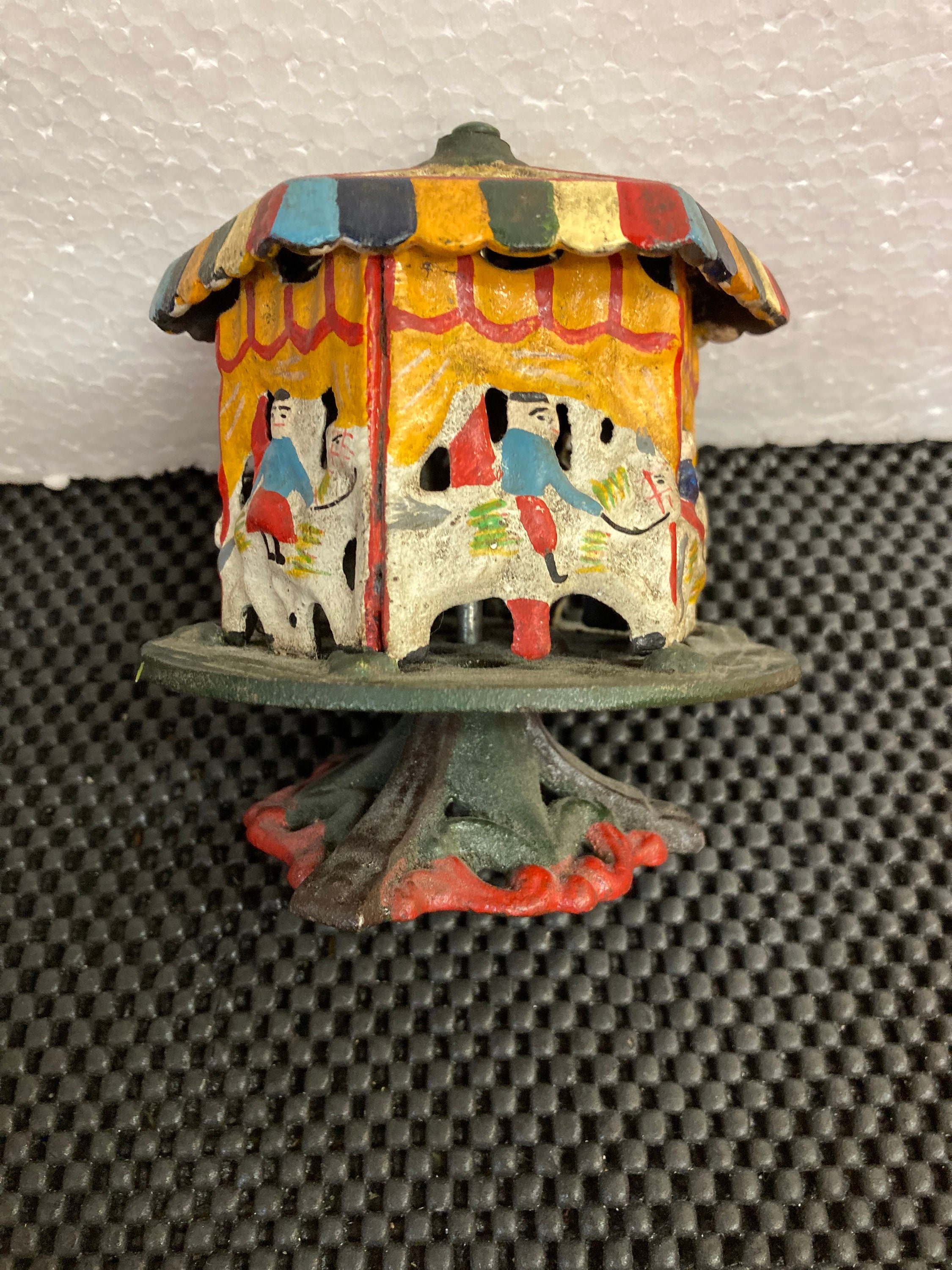 Vintage Cast Iron Spinning Carousel Merry-Go-Round 1800's Coin Bank