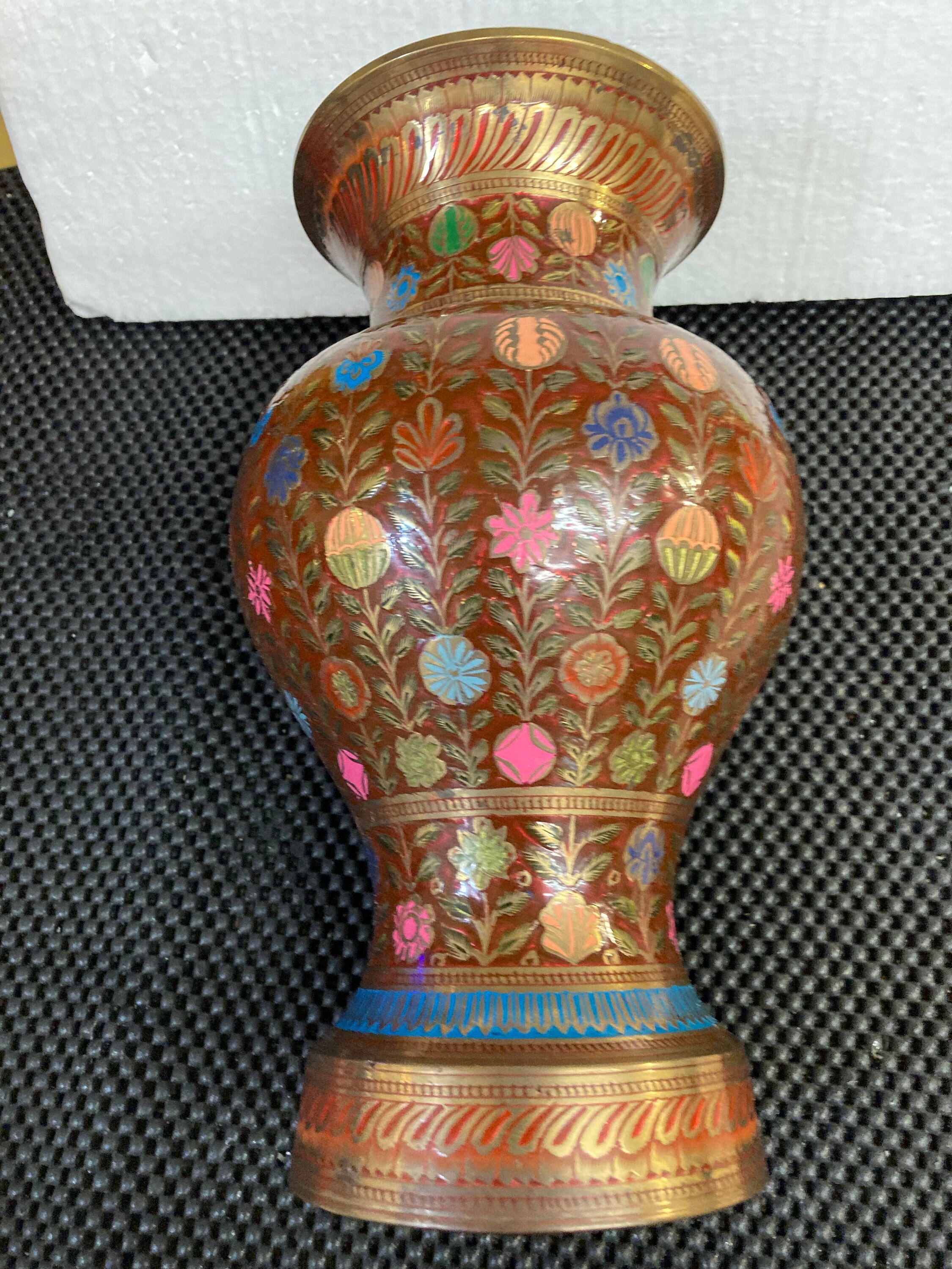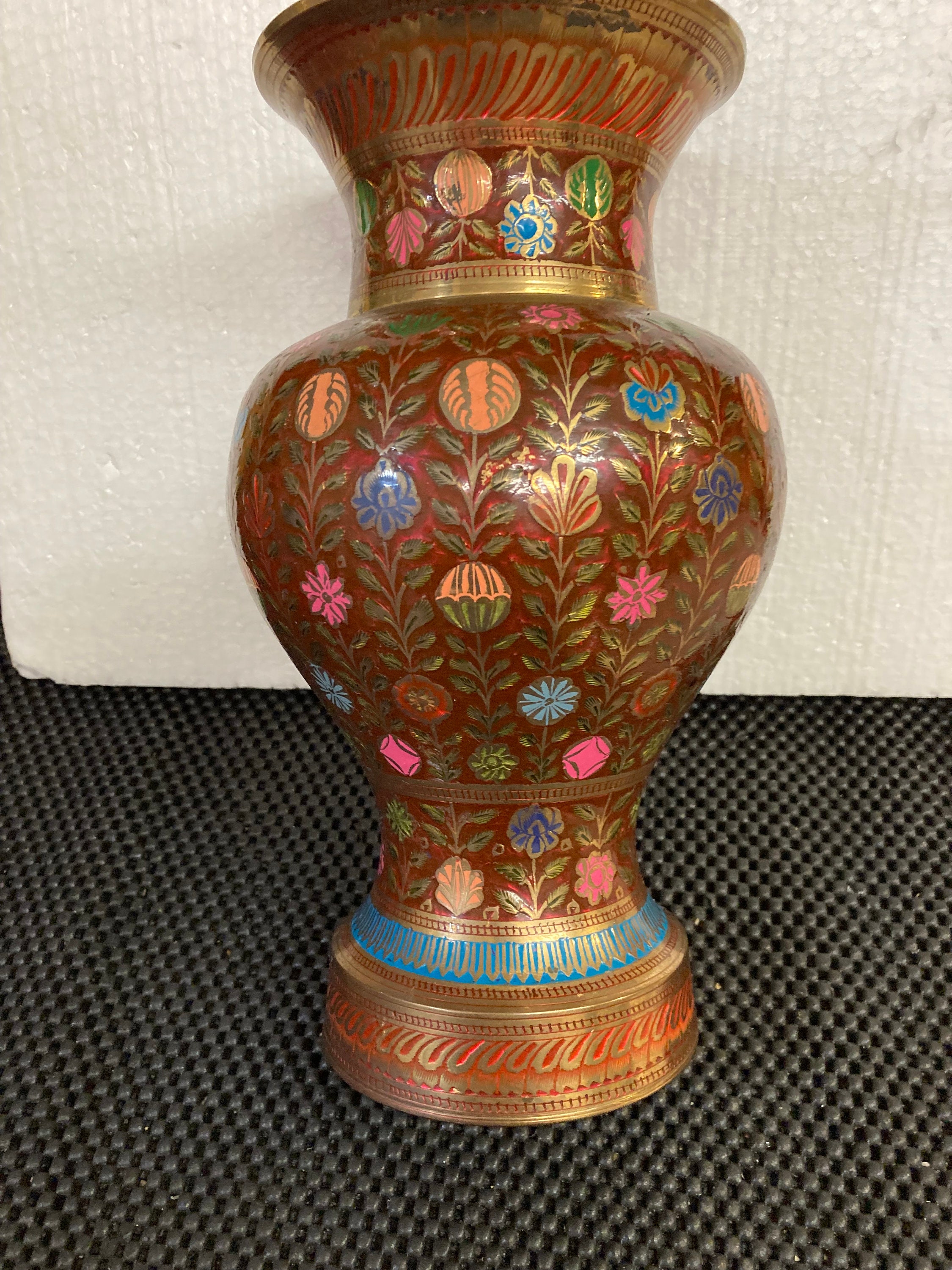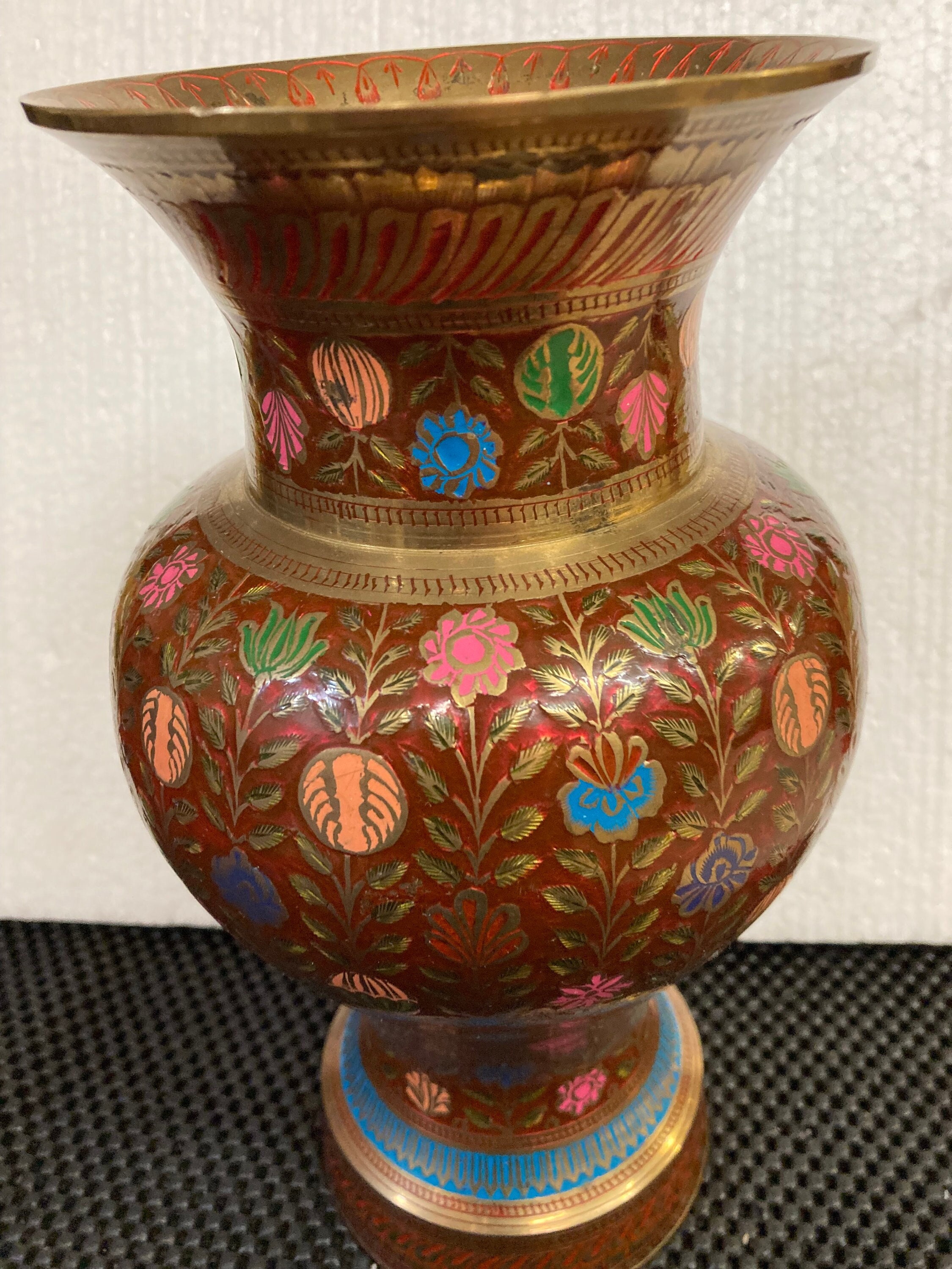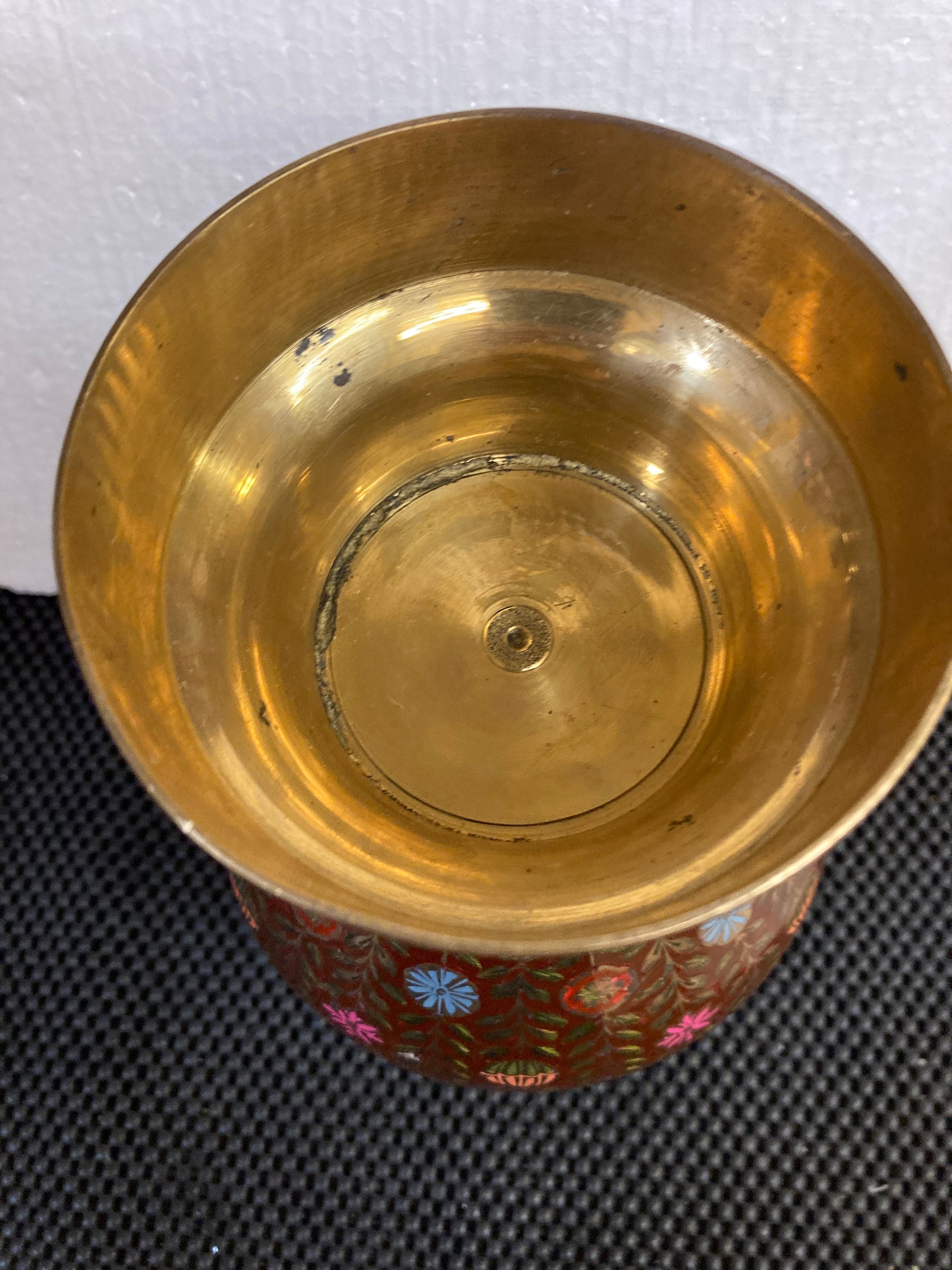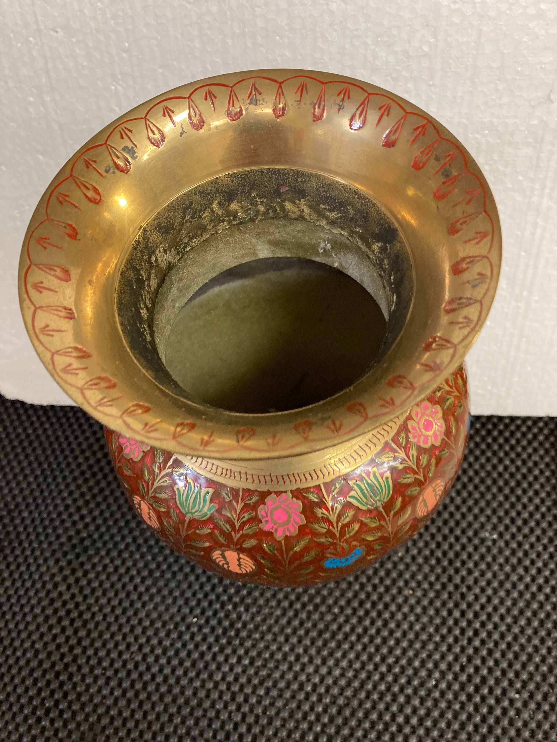 Chinese Floral Cloisonné Vase Gold Trim and Red Ruby Vine Design