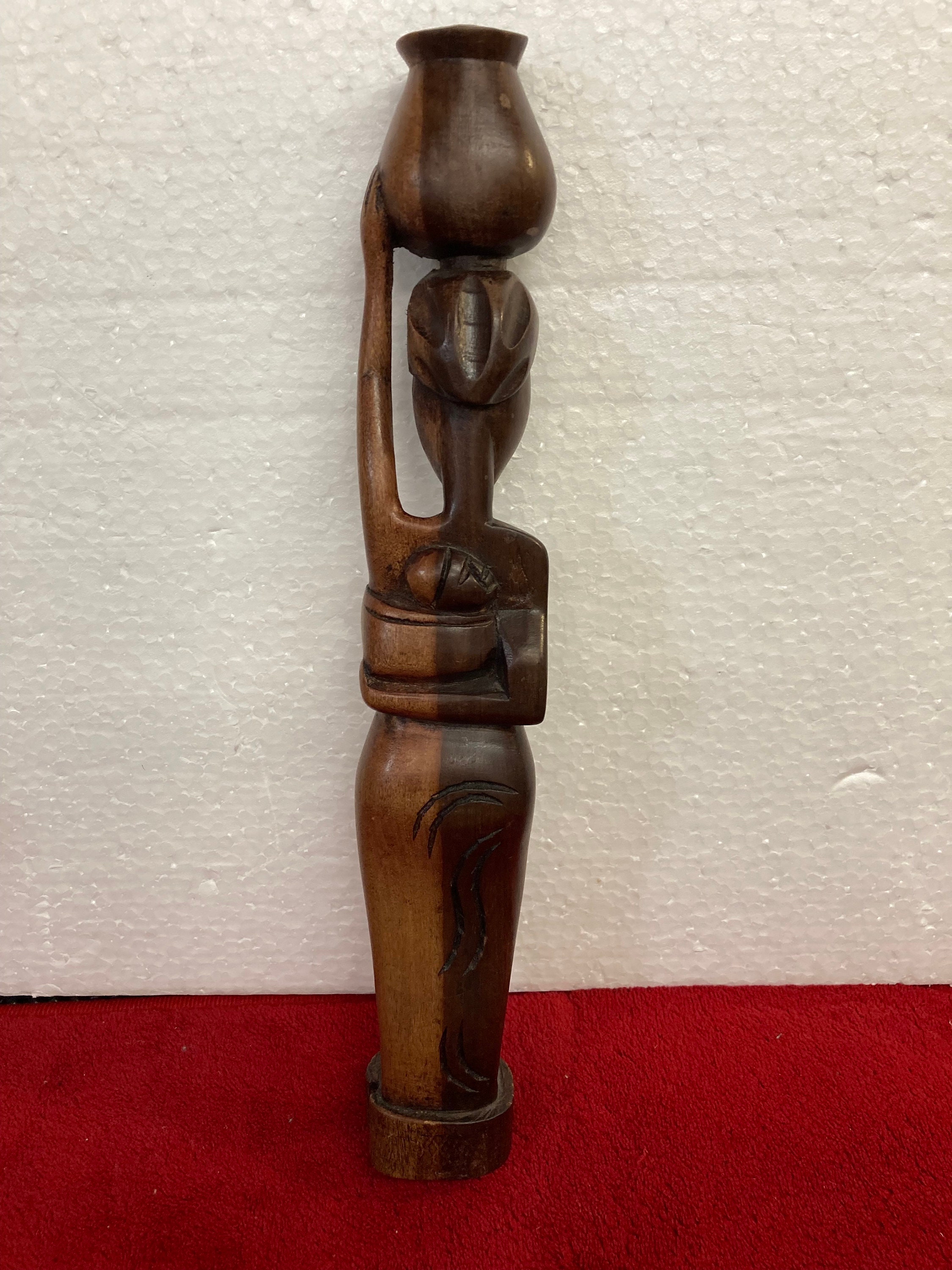 Hand Carved Wooden Vintage Folk Art Statue of Mother and Child