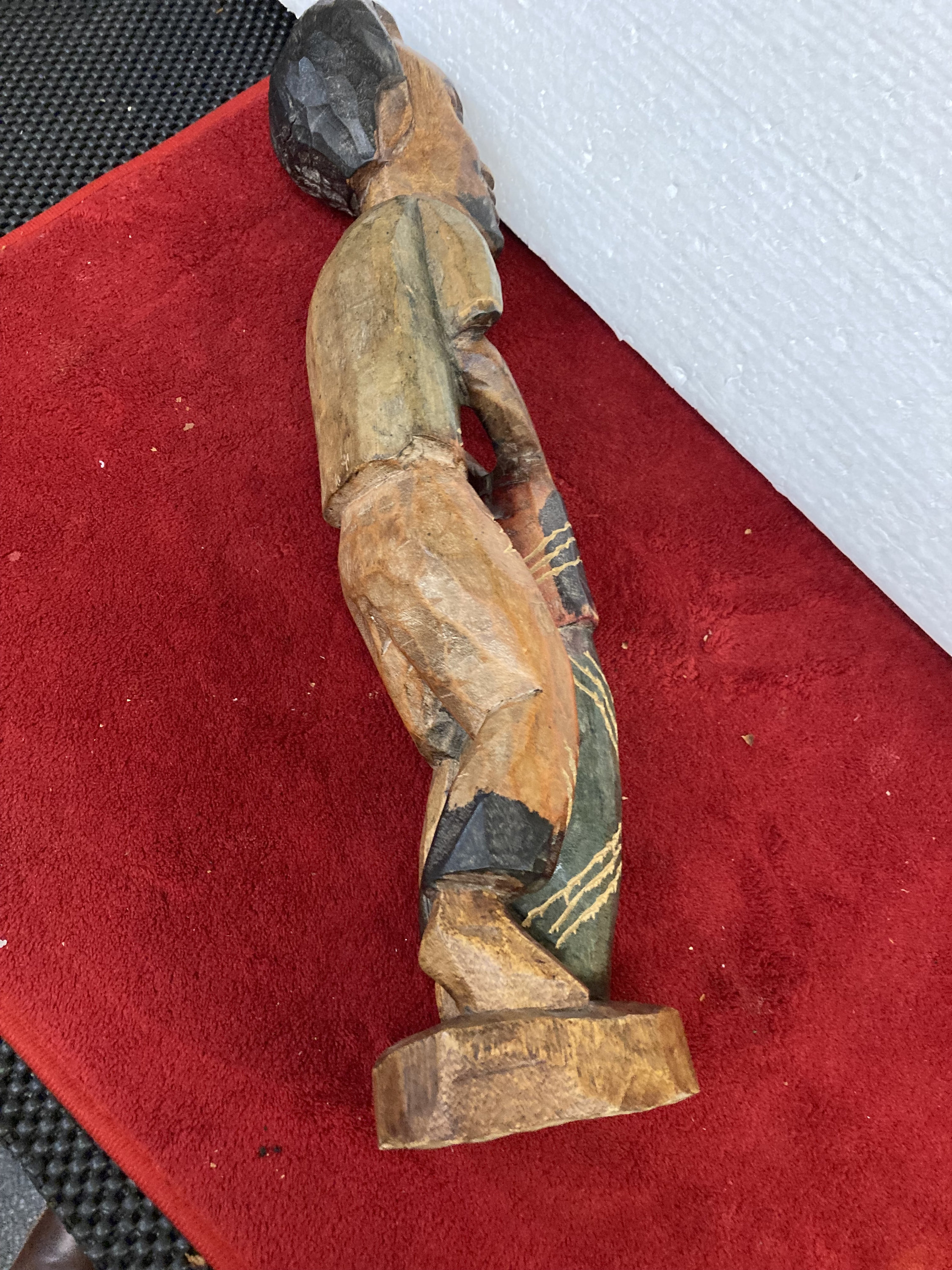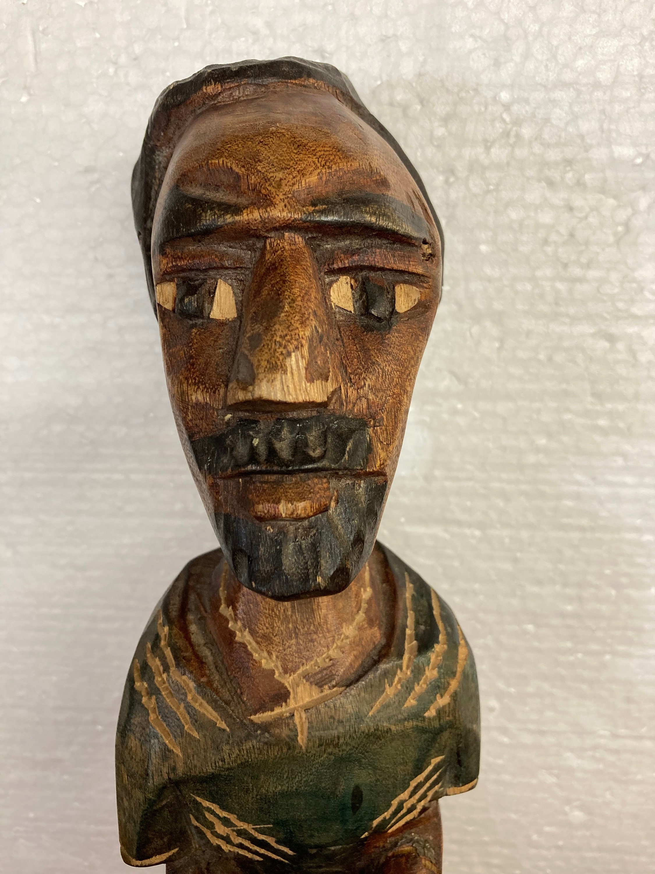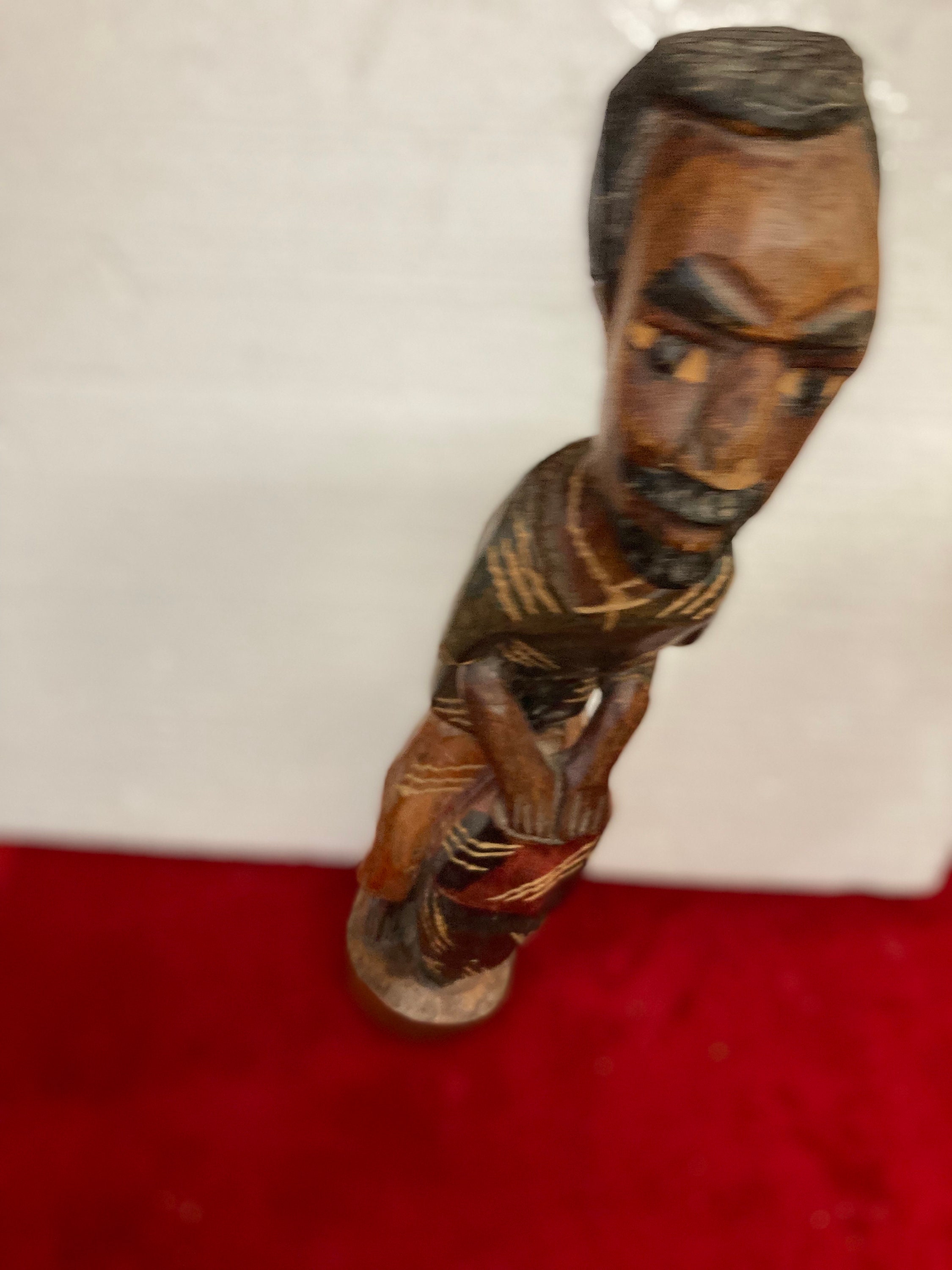 African Art, Handmade, Woodwork, Tabletop, Home Décor, Black Art, Music Art16" tall x 3 1/4" wide x 3" deepWeight 2 3/4 lbsCondition is vintage goodEstate Sale FindOrigin unknown, Jamaican or African