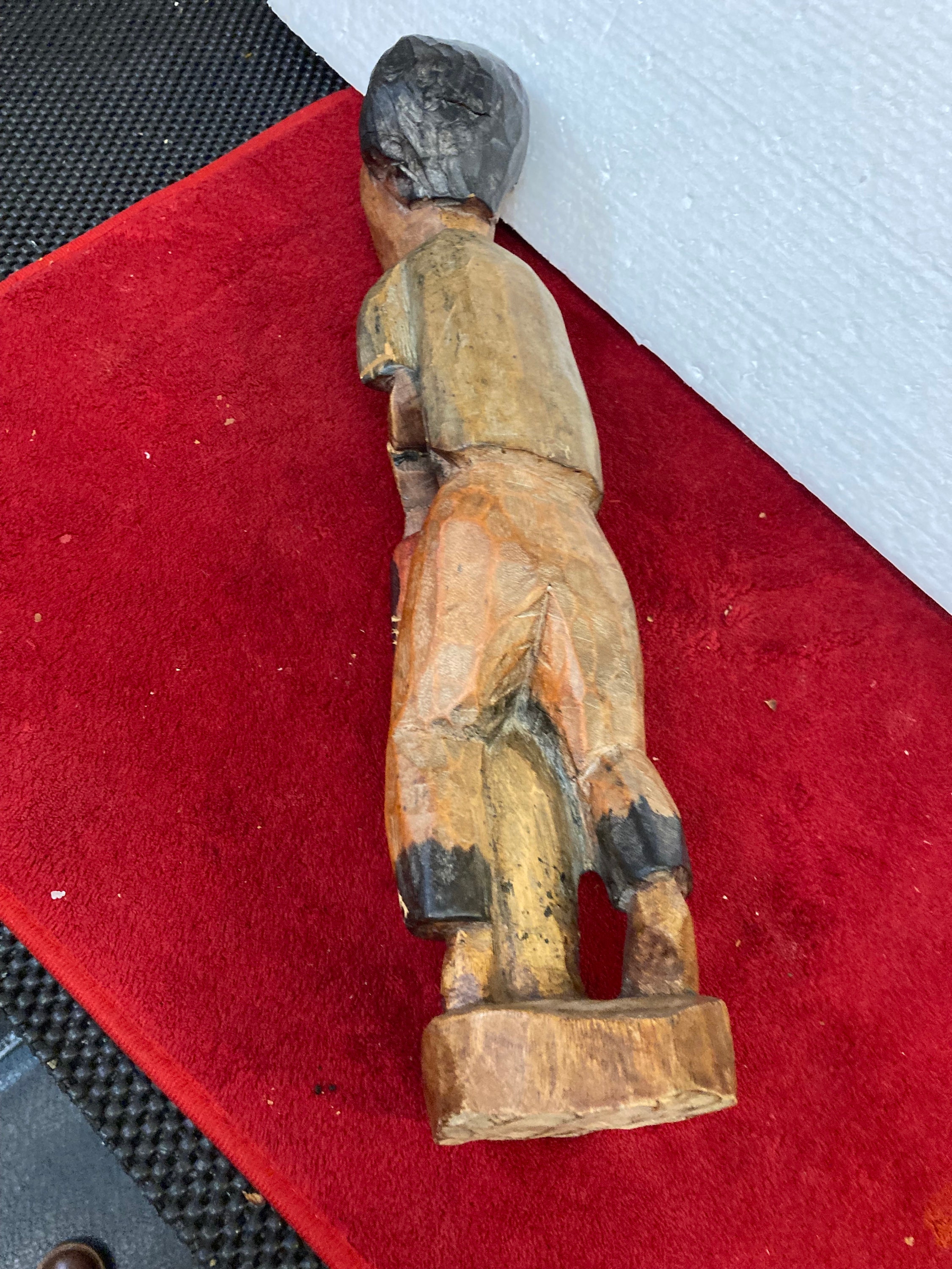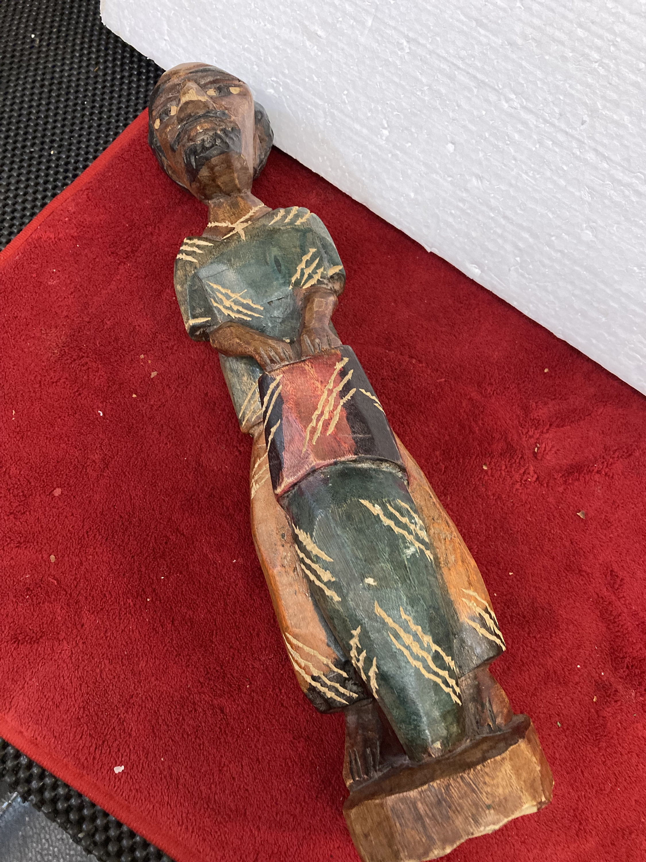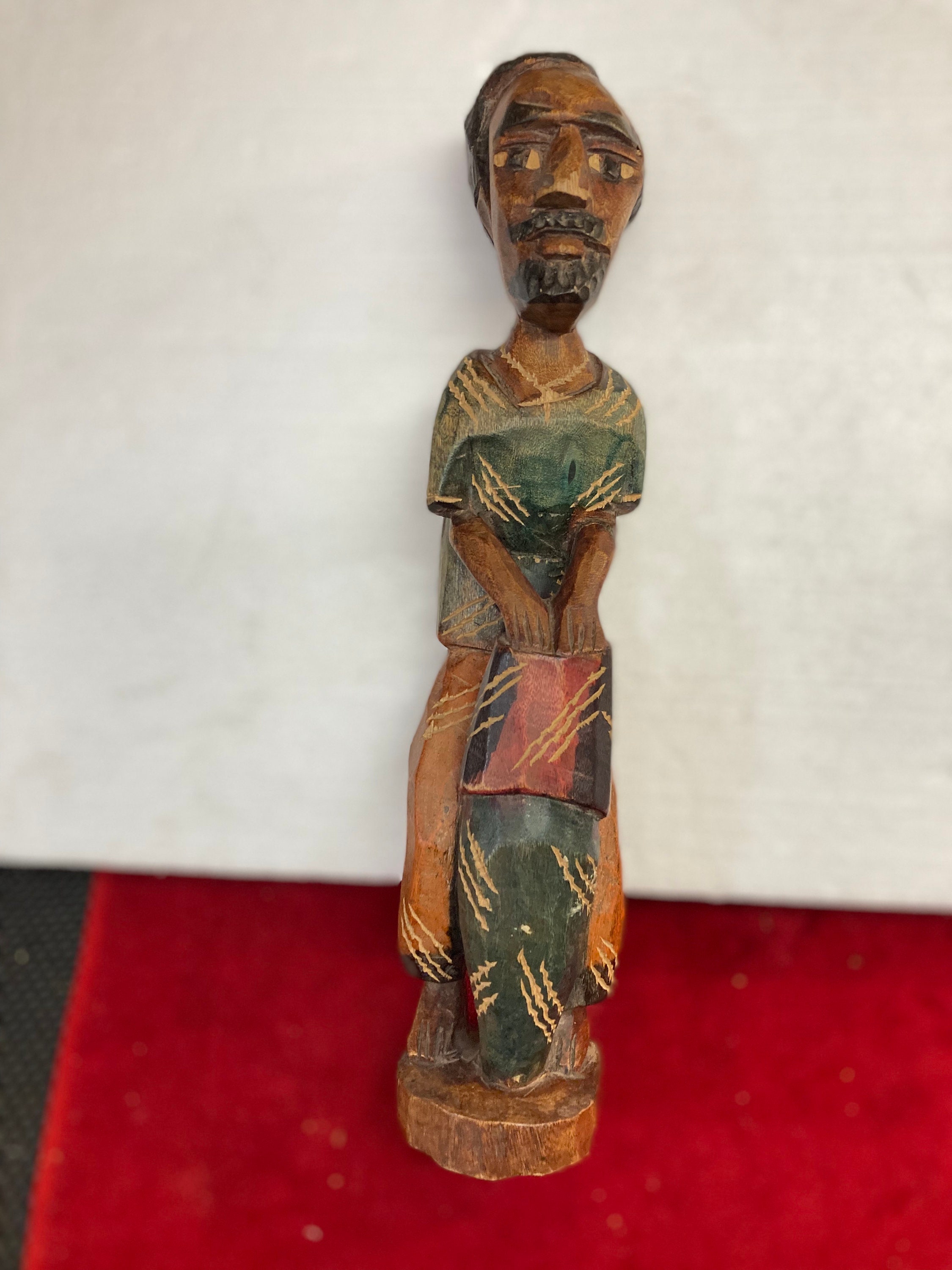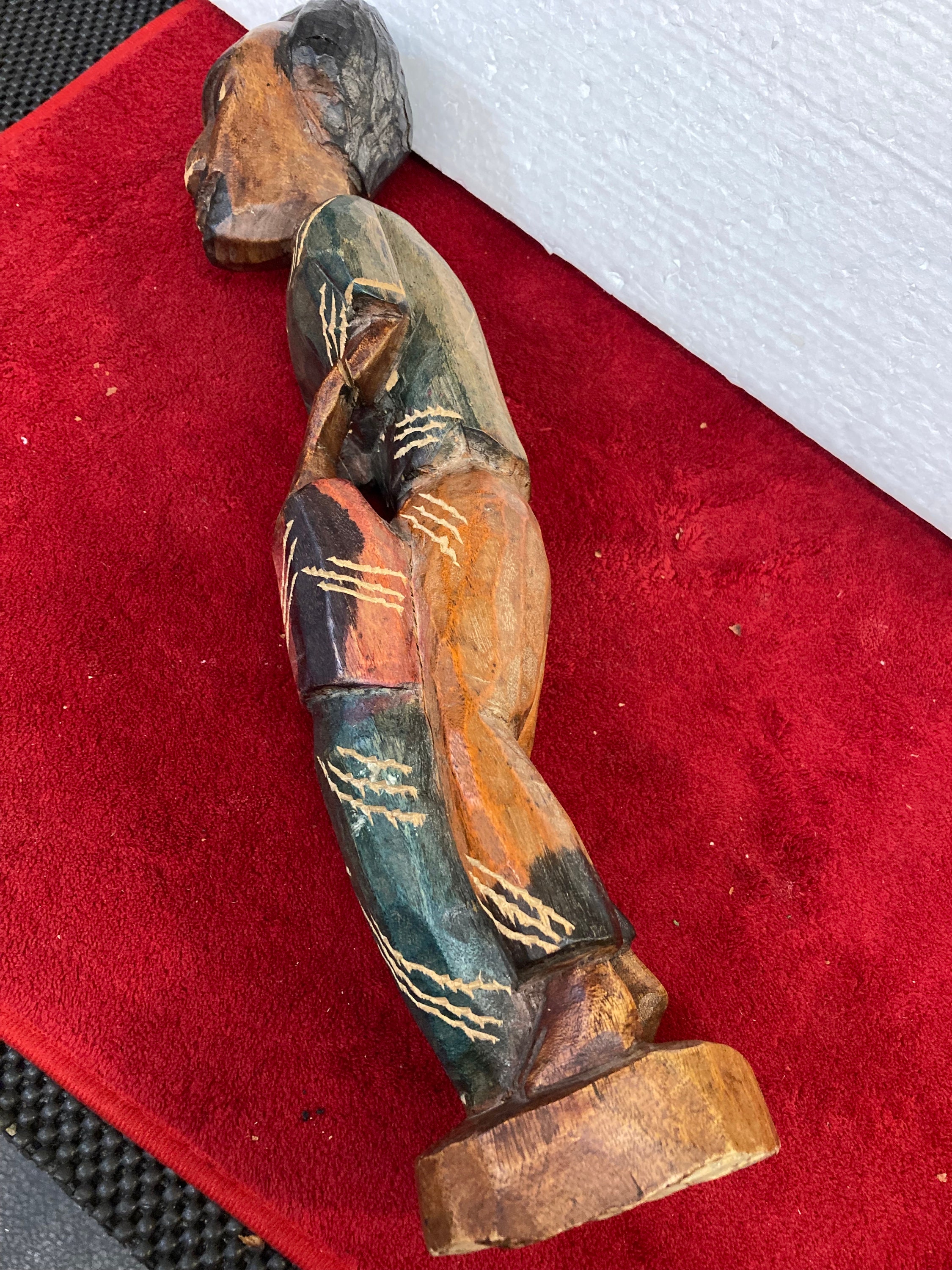 African Art, Handmade, Woodwork, Tabletop, Home Décor, Black Art, Music Art16" tall x 3 1/4" wide x 3" deepWeight 2 3/4 lbsCondition is vintage goodEstate Sale FindOrigin unknown, Jamaican or African