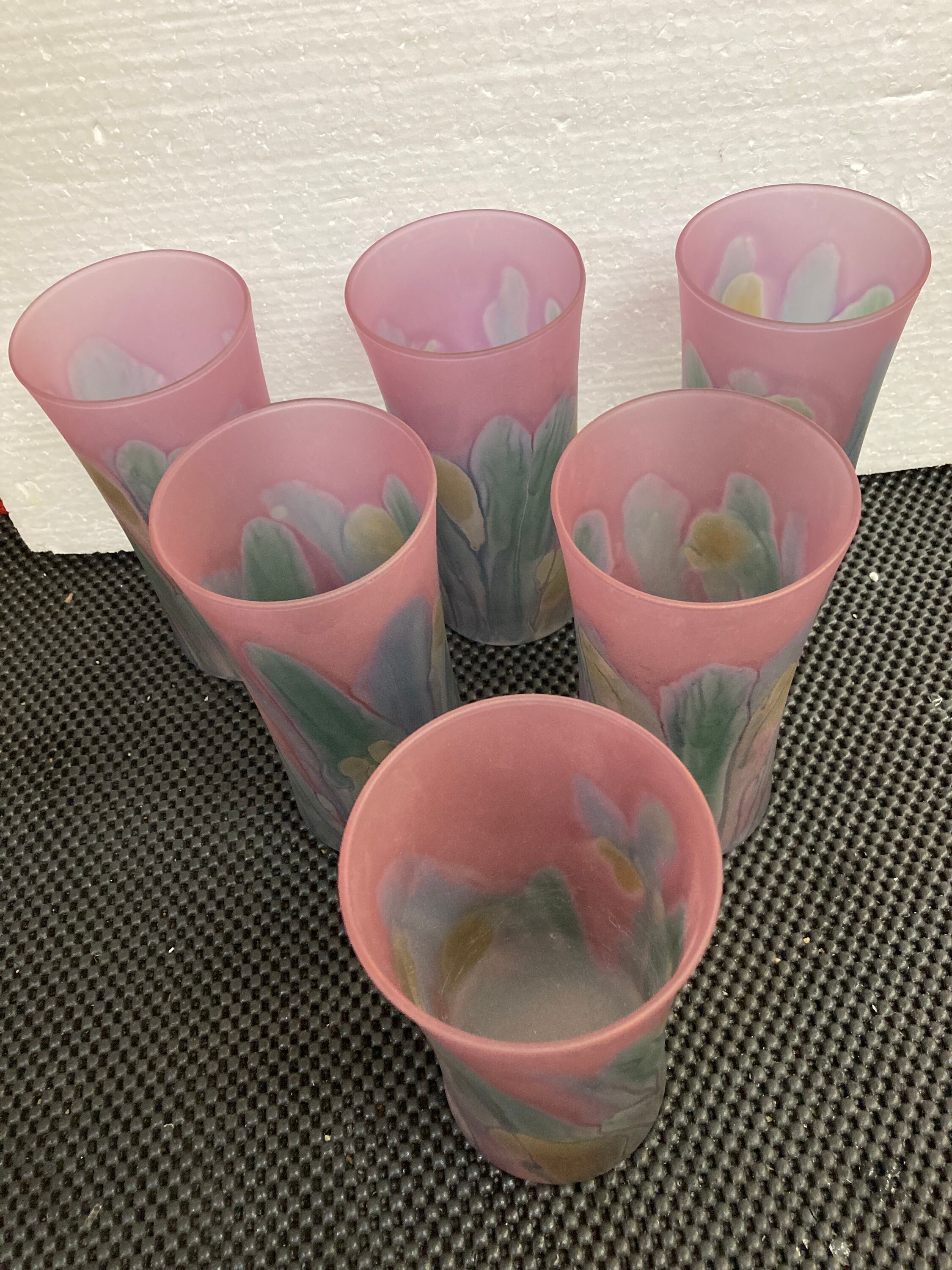 Six Hand Painted Reuven Art Glass Vases Made in Israel