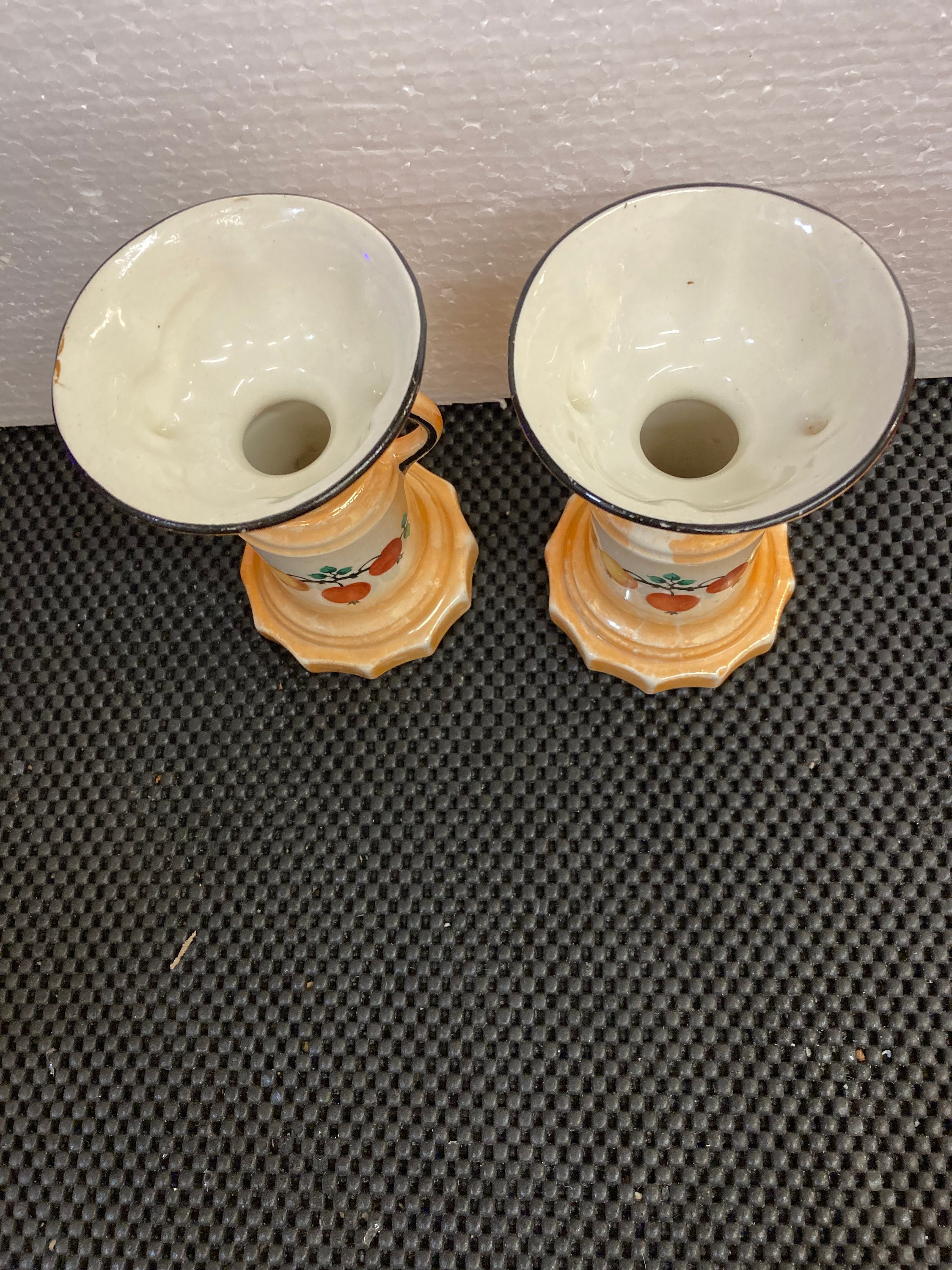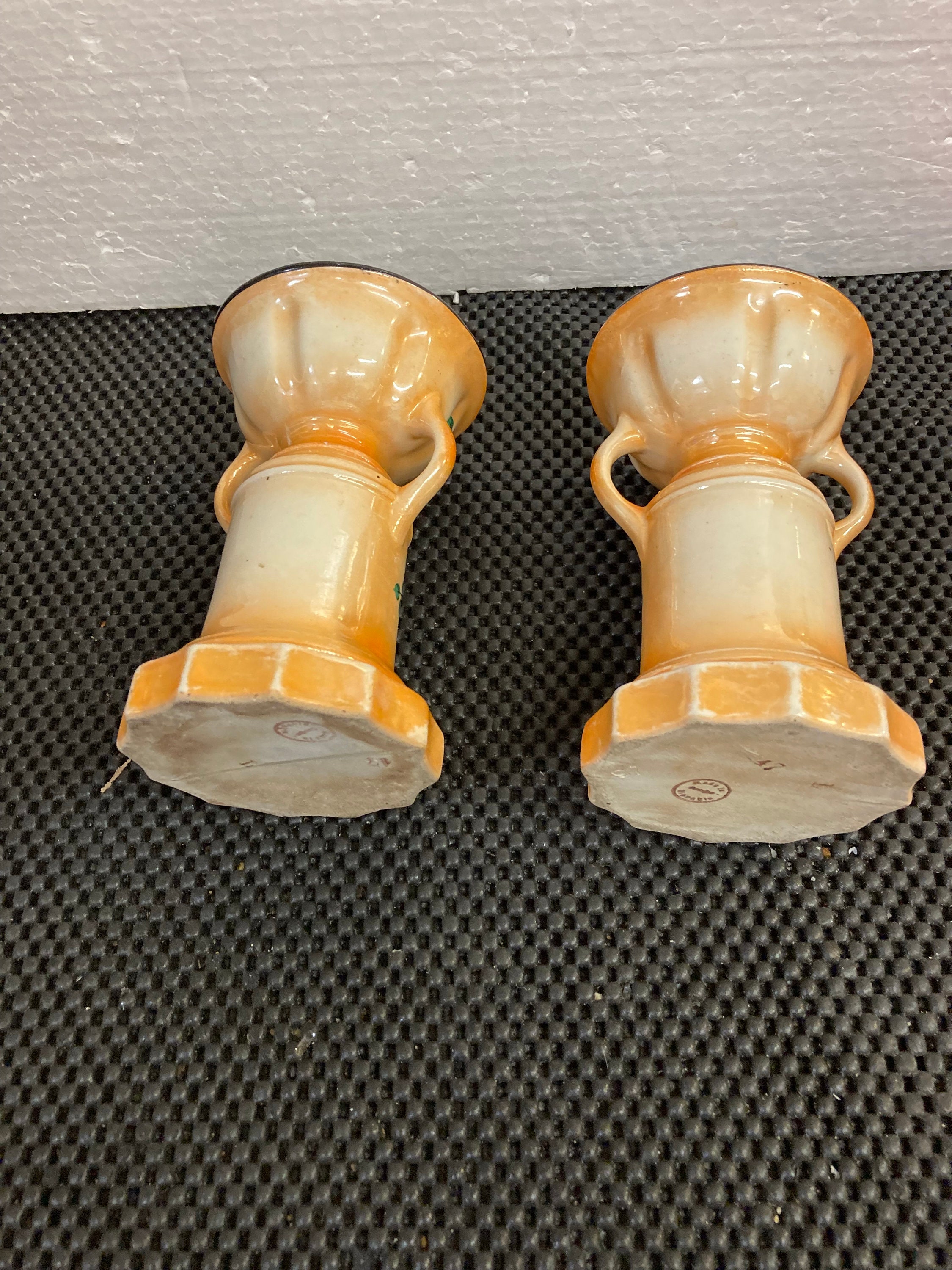 Both vases have no chips or cracks. The finish does have wear from age and use as would be expected for a vintage item of this age.