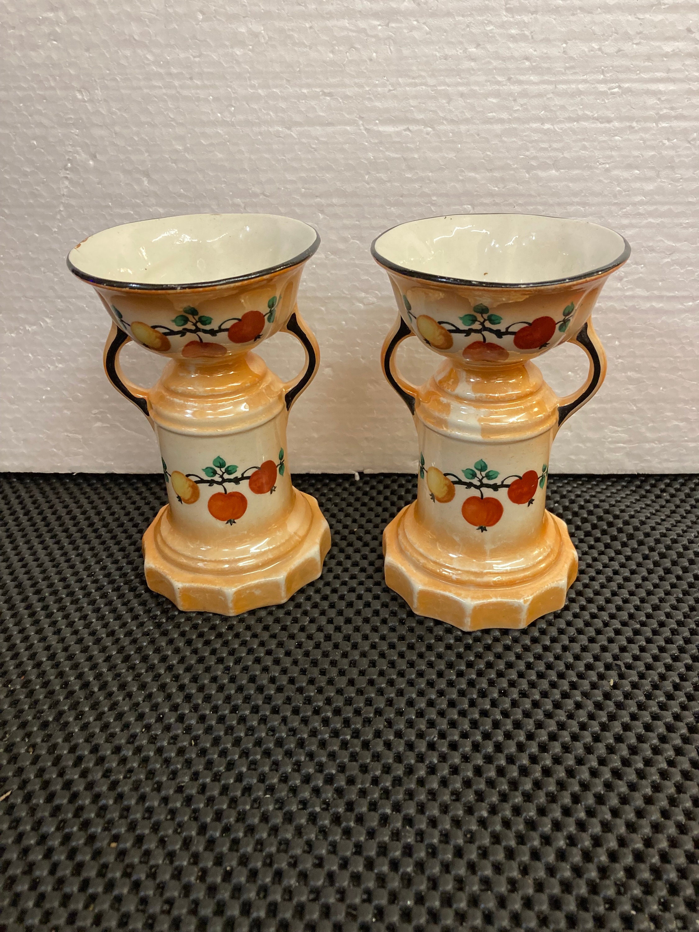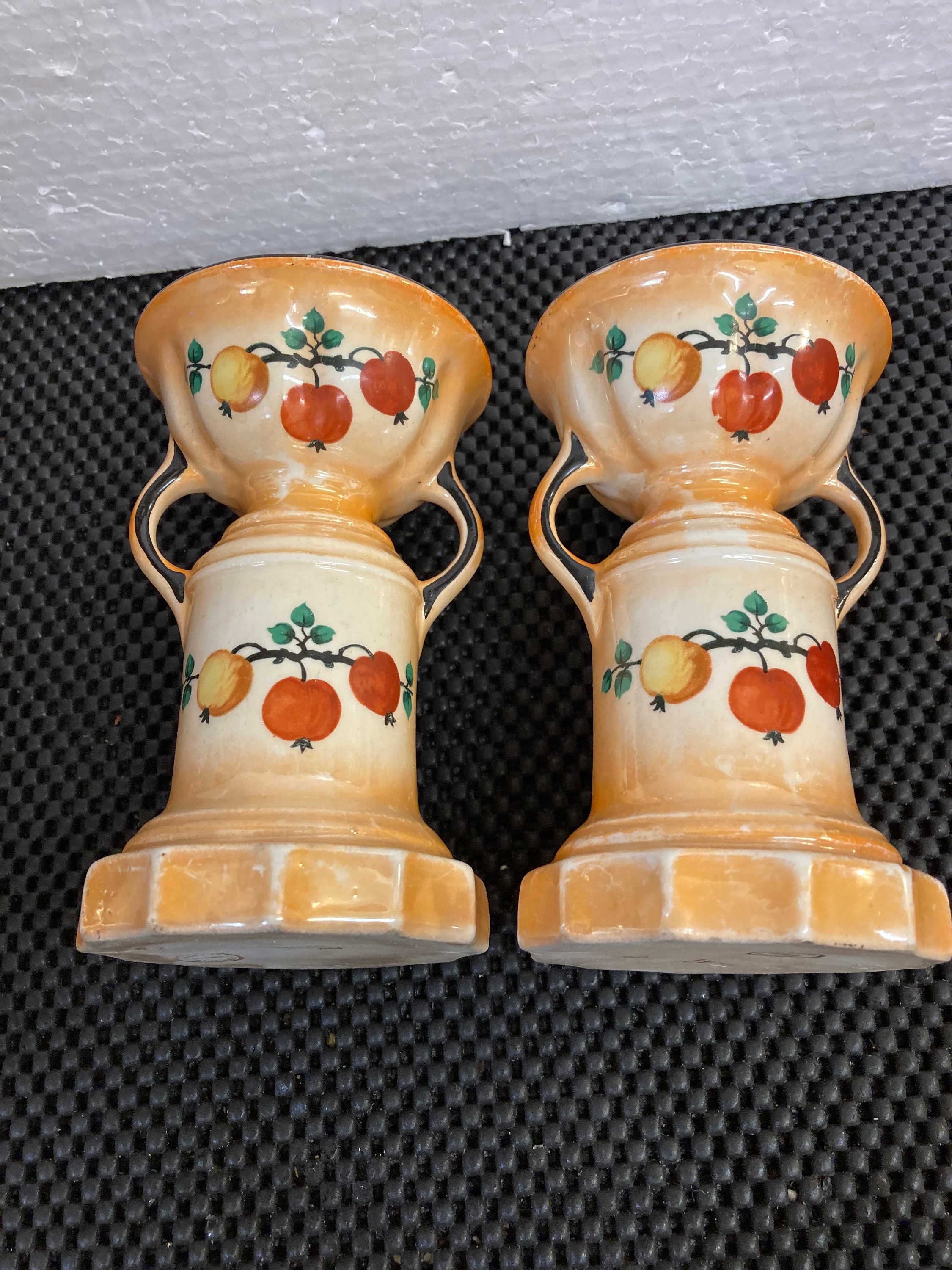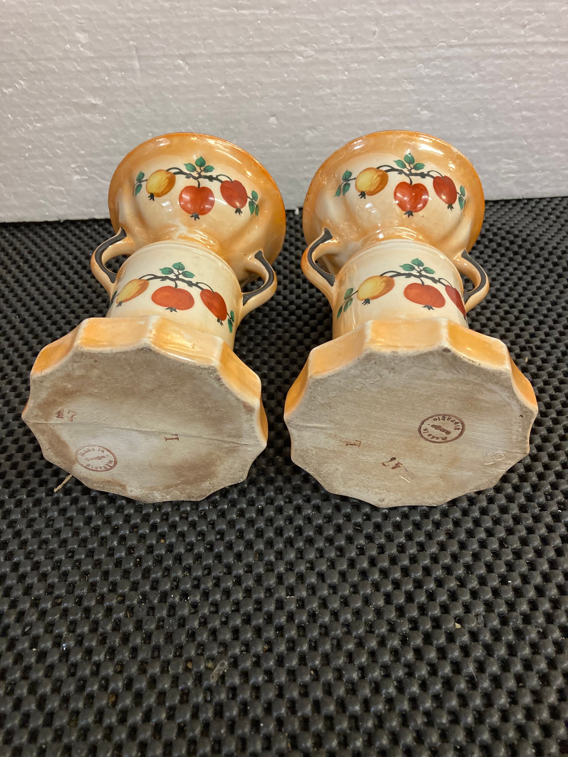 Vintage Czechoslovakia Lusterware Pottery Vase Two Handles Fruit Motif Art Deco