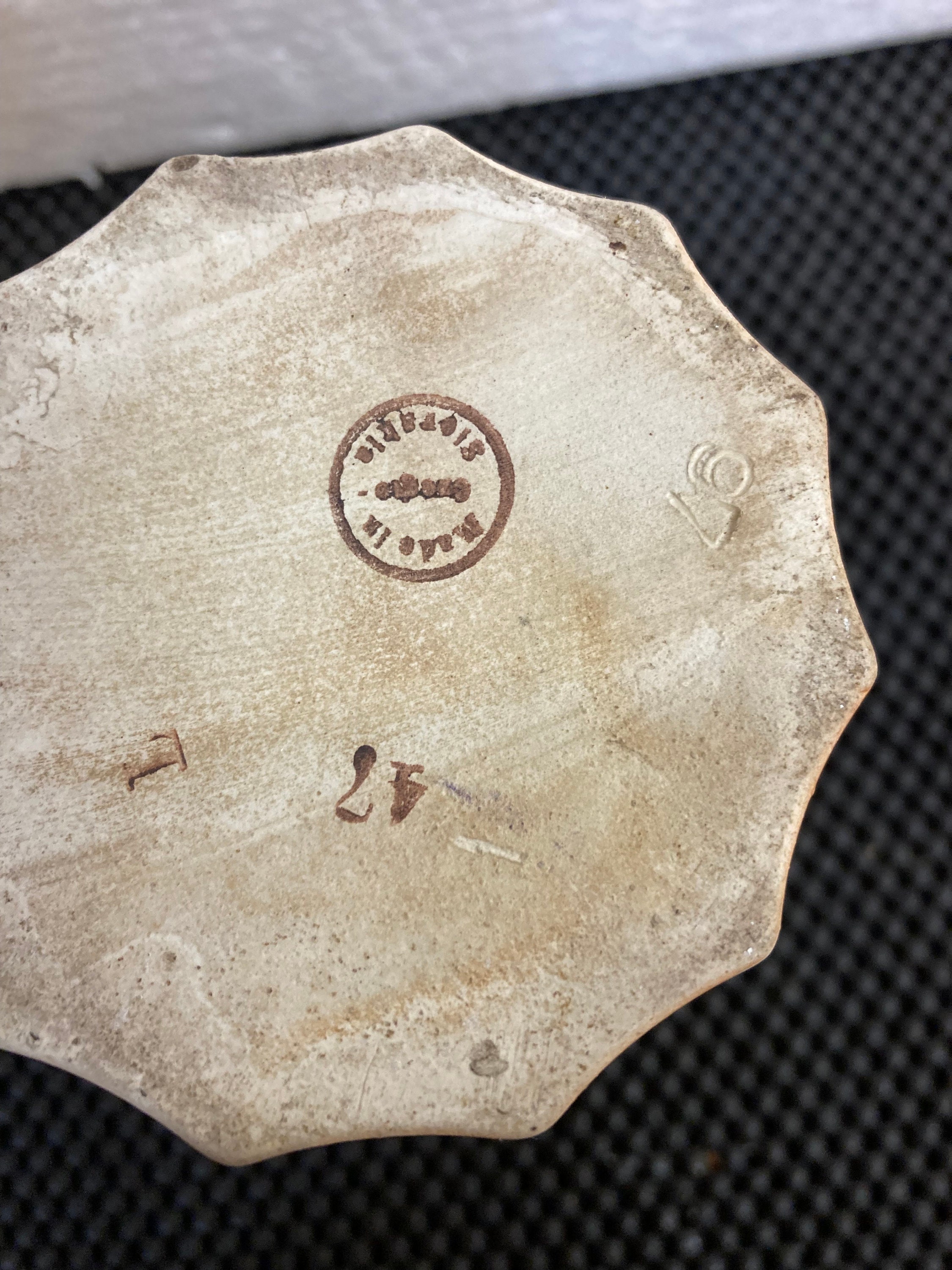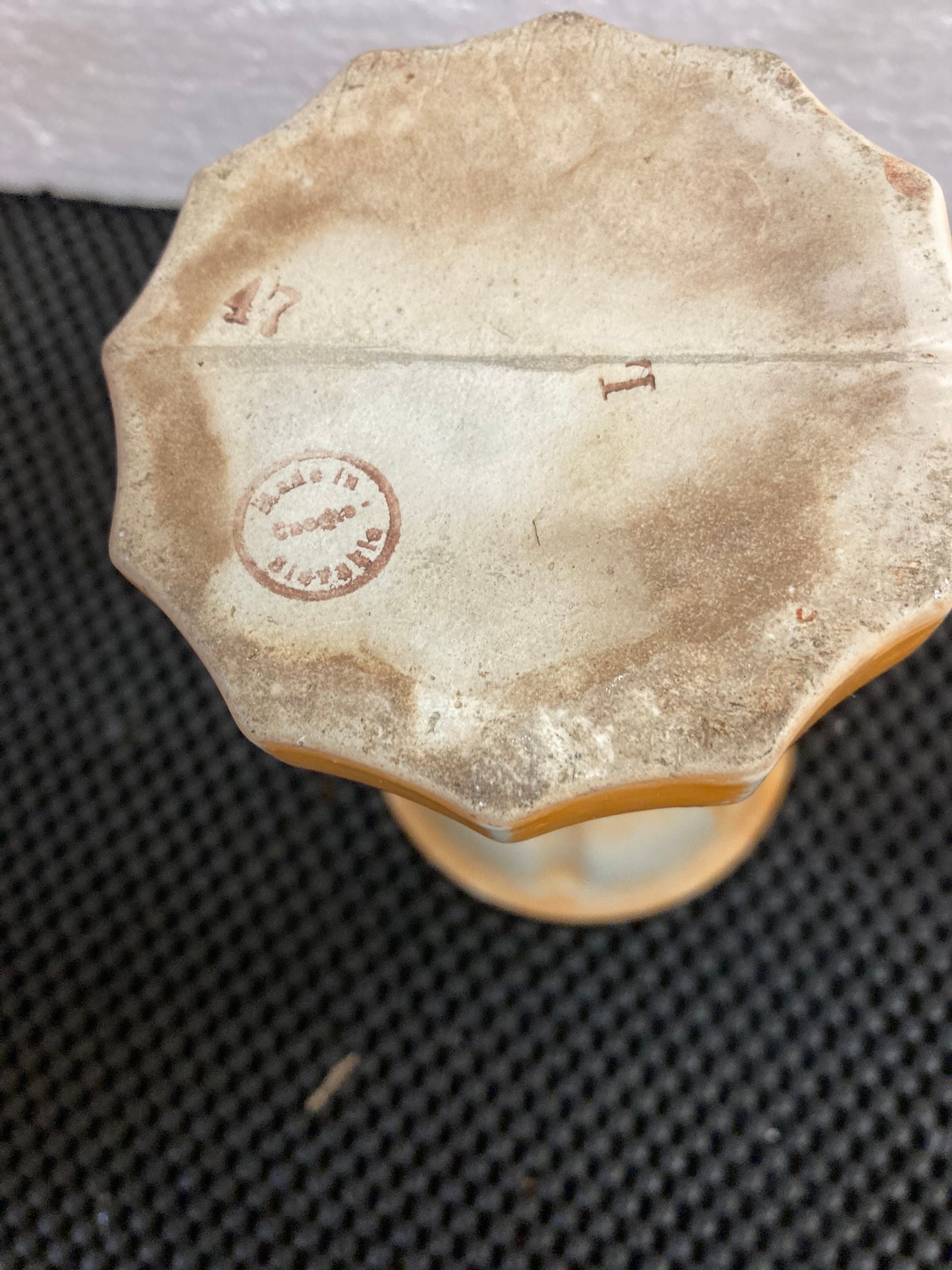The vases are stamped with "Czechoslovakia" on its base. It stands approximately 51/2" tall and its width from rim to rim is approximately 3 3/8".