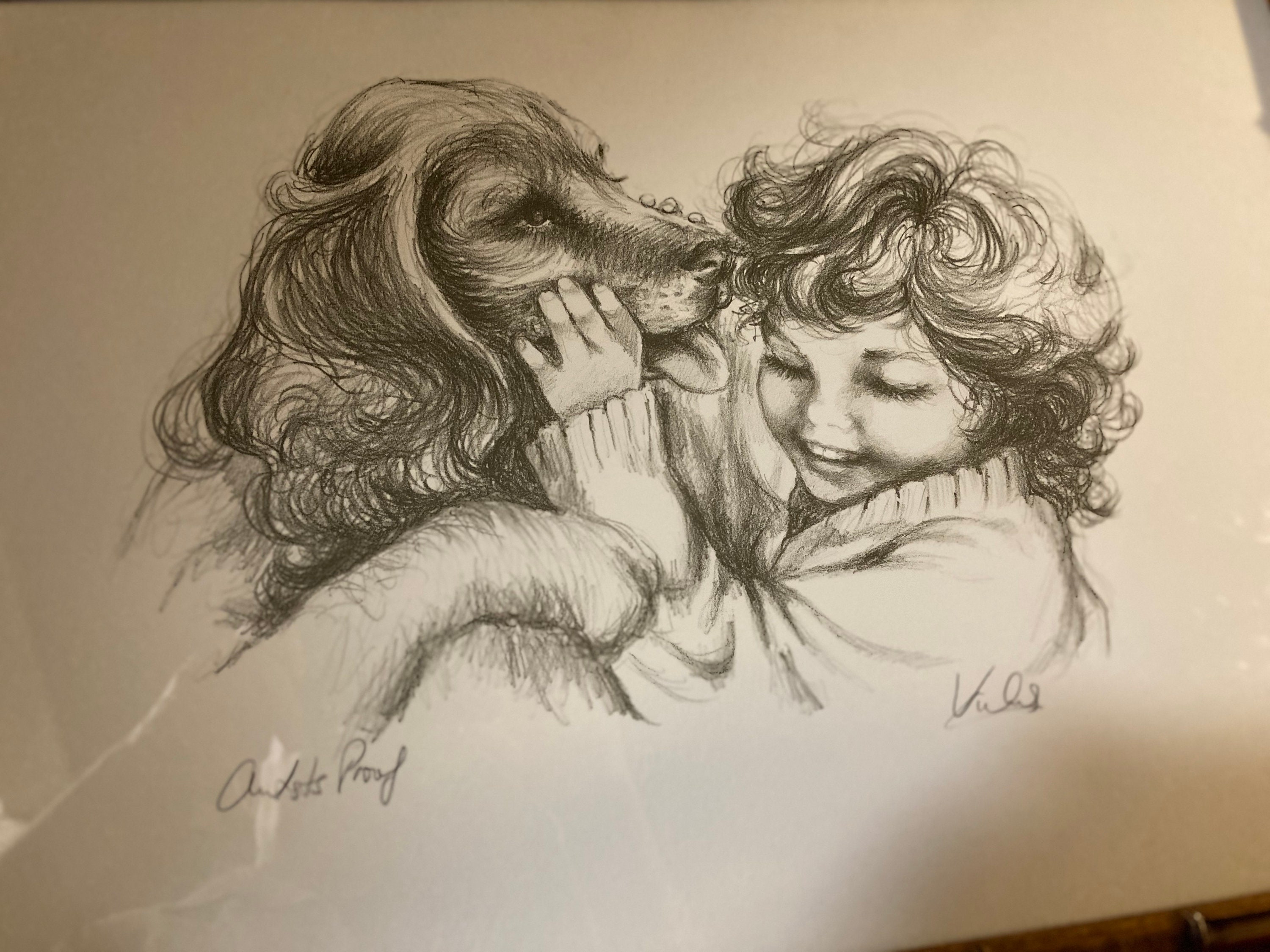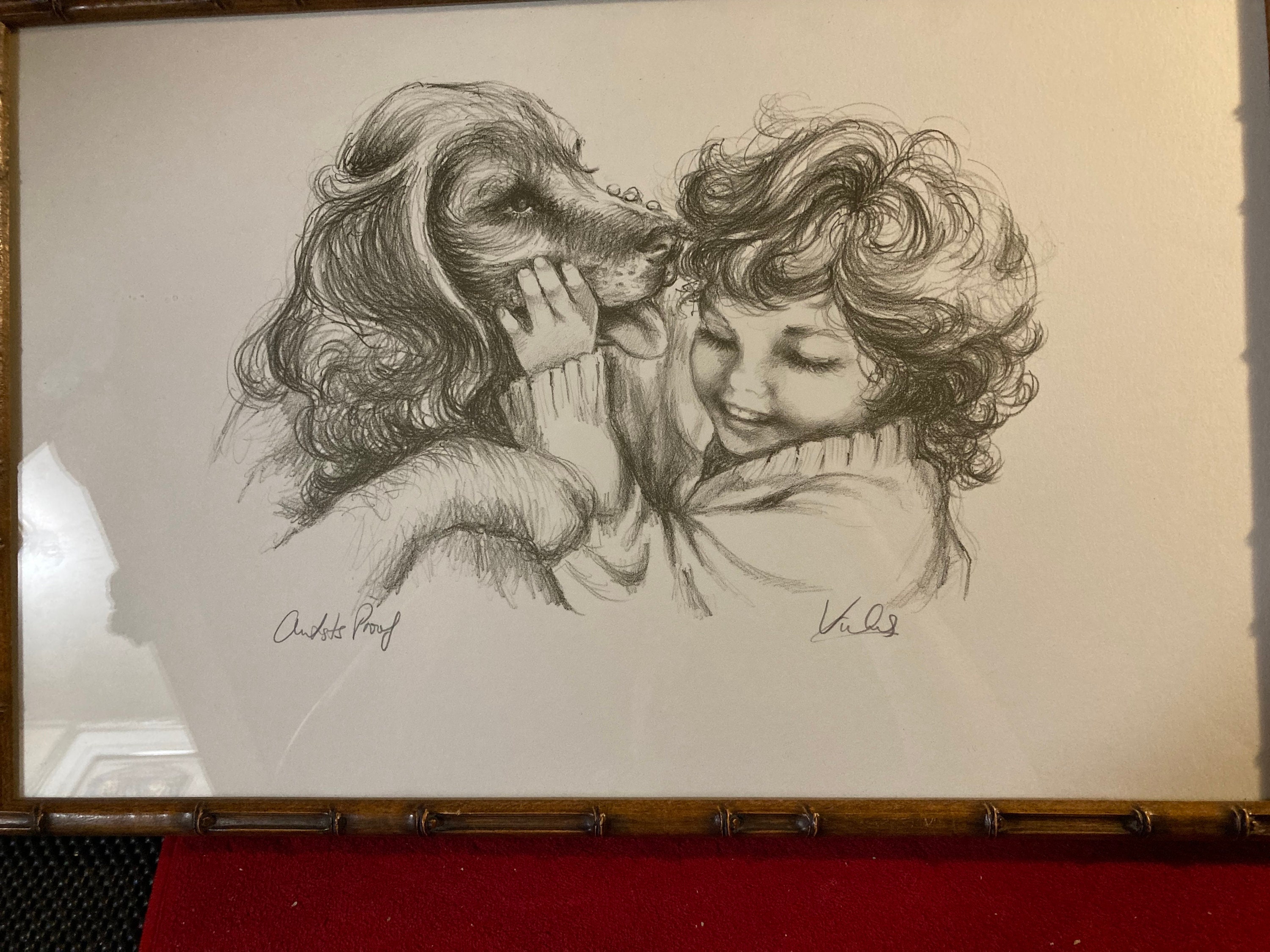 Artist's Proof Pencil Drawing Of A Girl & Her DogSigned by ArtistMarked Artist Proof23.75" x 14.75" x 1.00" Framed23" w x 14", Graphite SizeSigned by ArtistEstate Sale Find