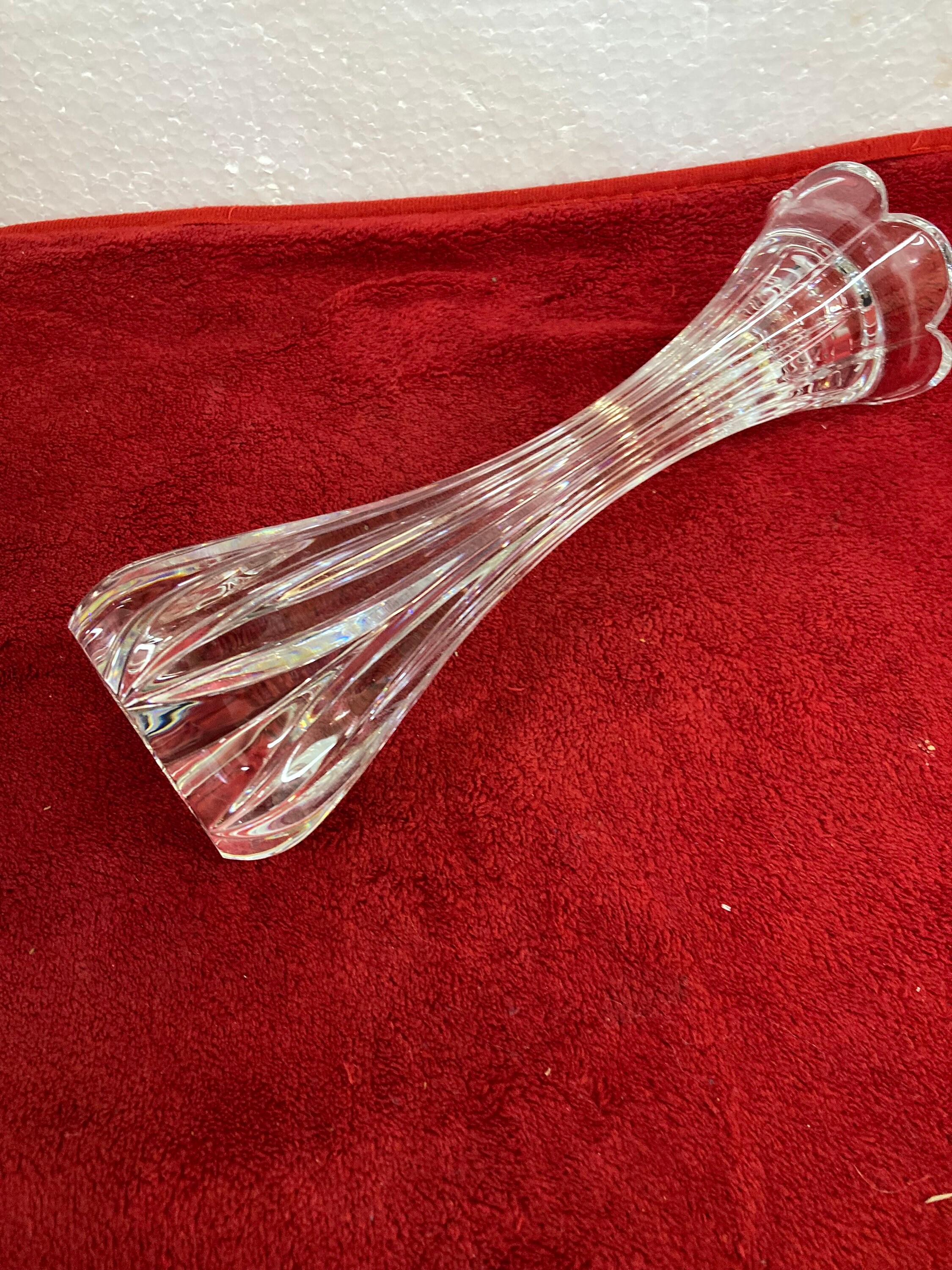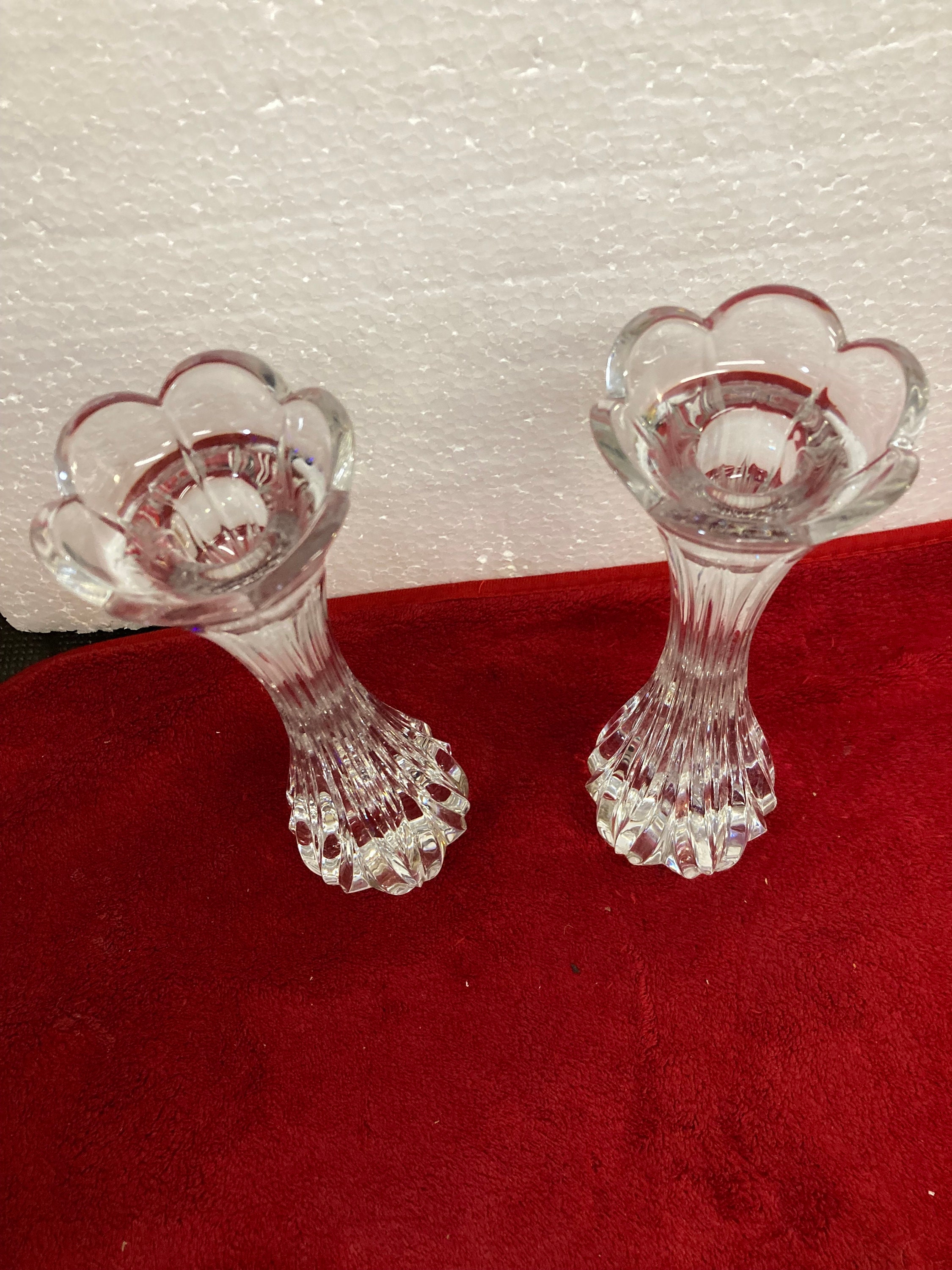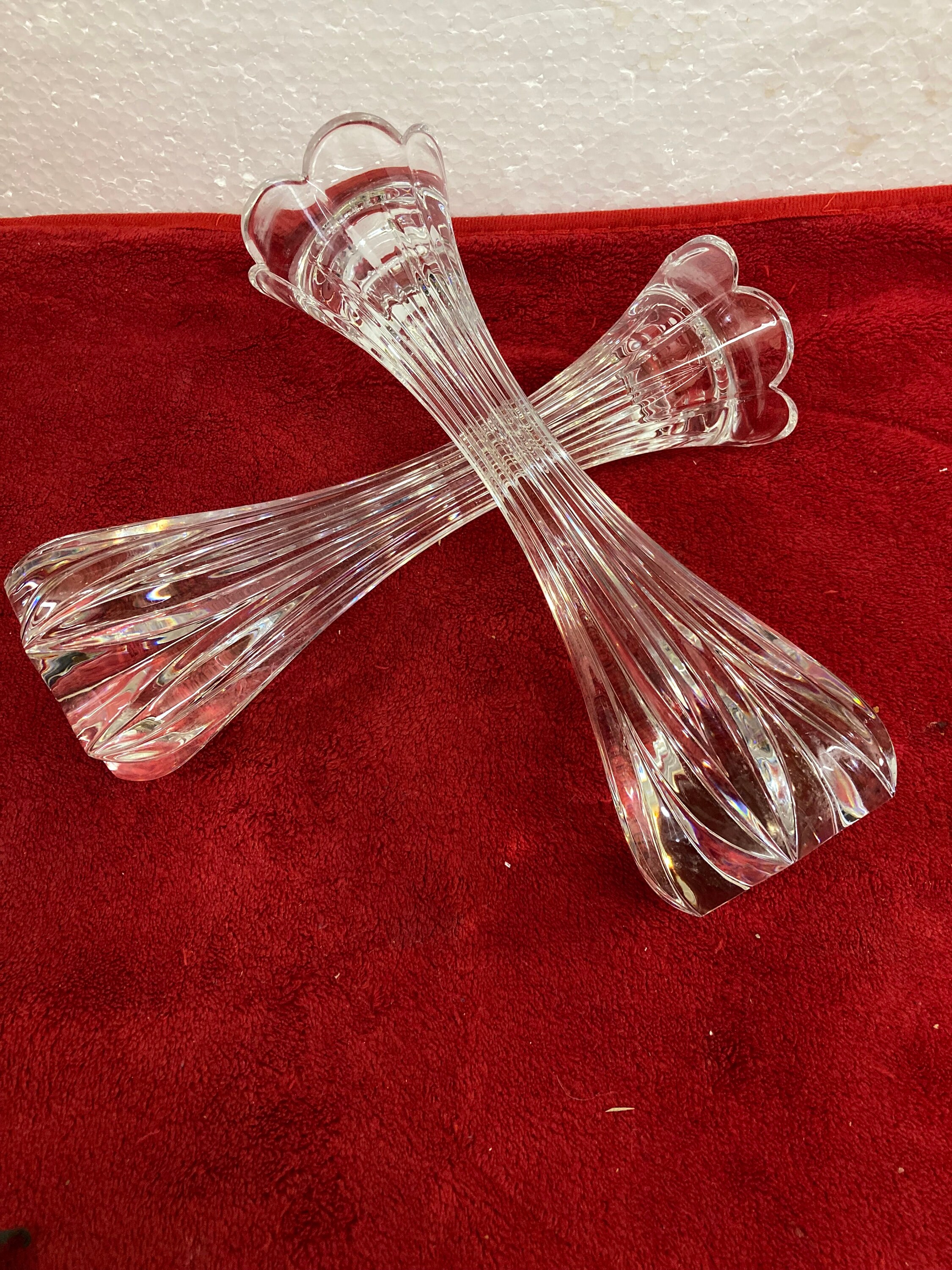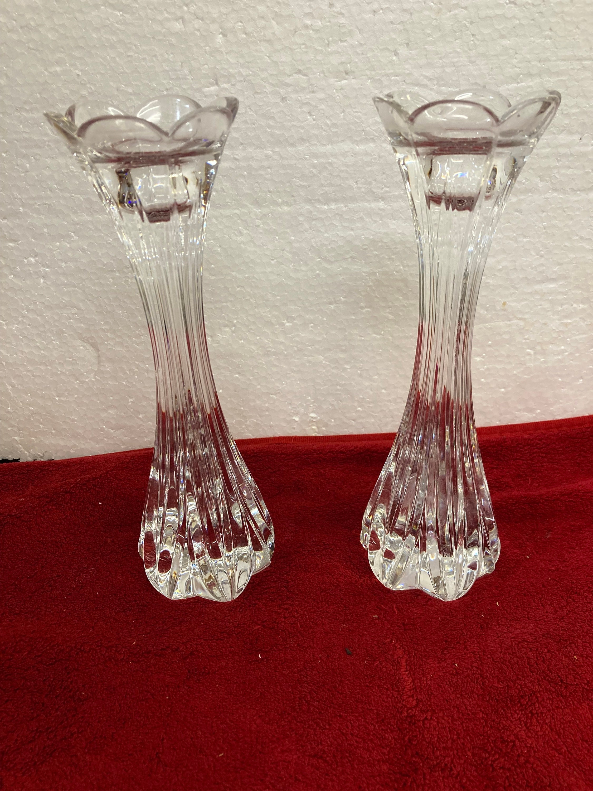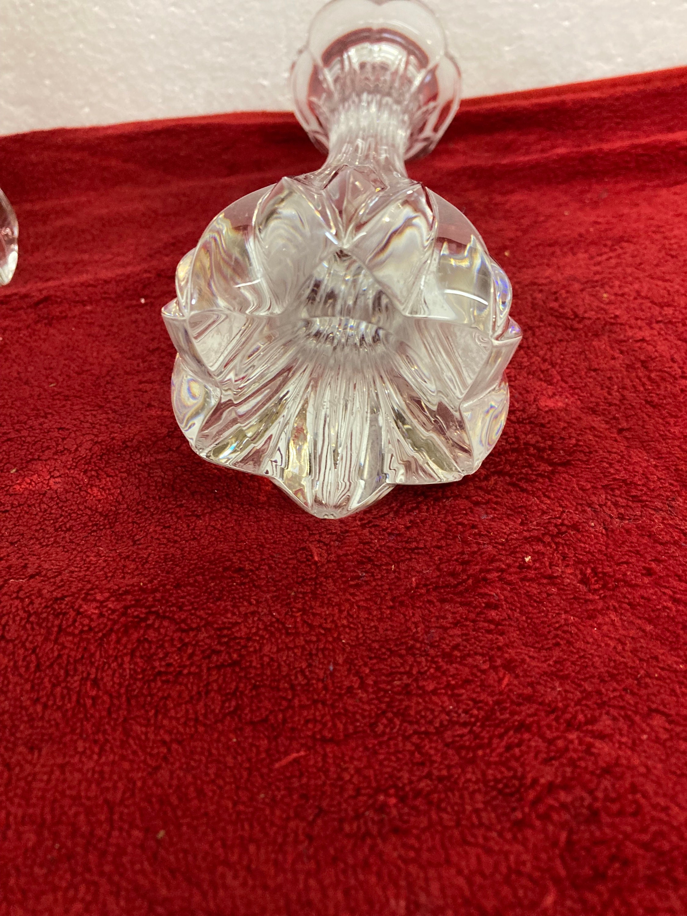 Mid- 21st Century Handmade Genuine Bohemian Lead Crystal Candlesticks From Czechoslovakia.