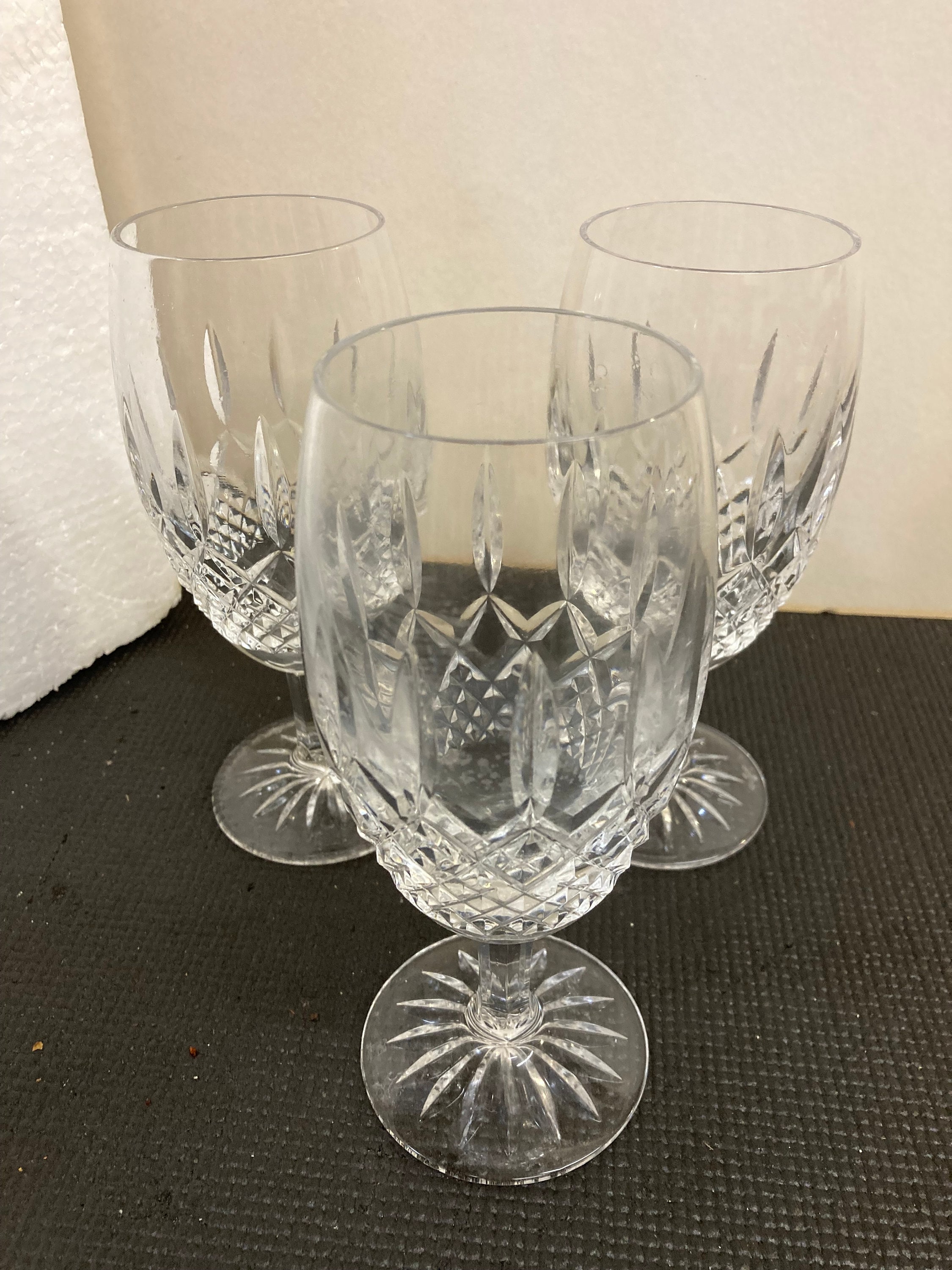 3 Waterford Cut Crystal Wine Glasses Waterford Crystal Short Stem Wine GlassesShort Stem Wine Glass 7" Tall x 2.5" in Diameter x 3" baseAll 3 pcs are in Great condition and have no Damages
