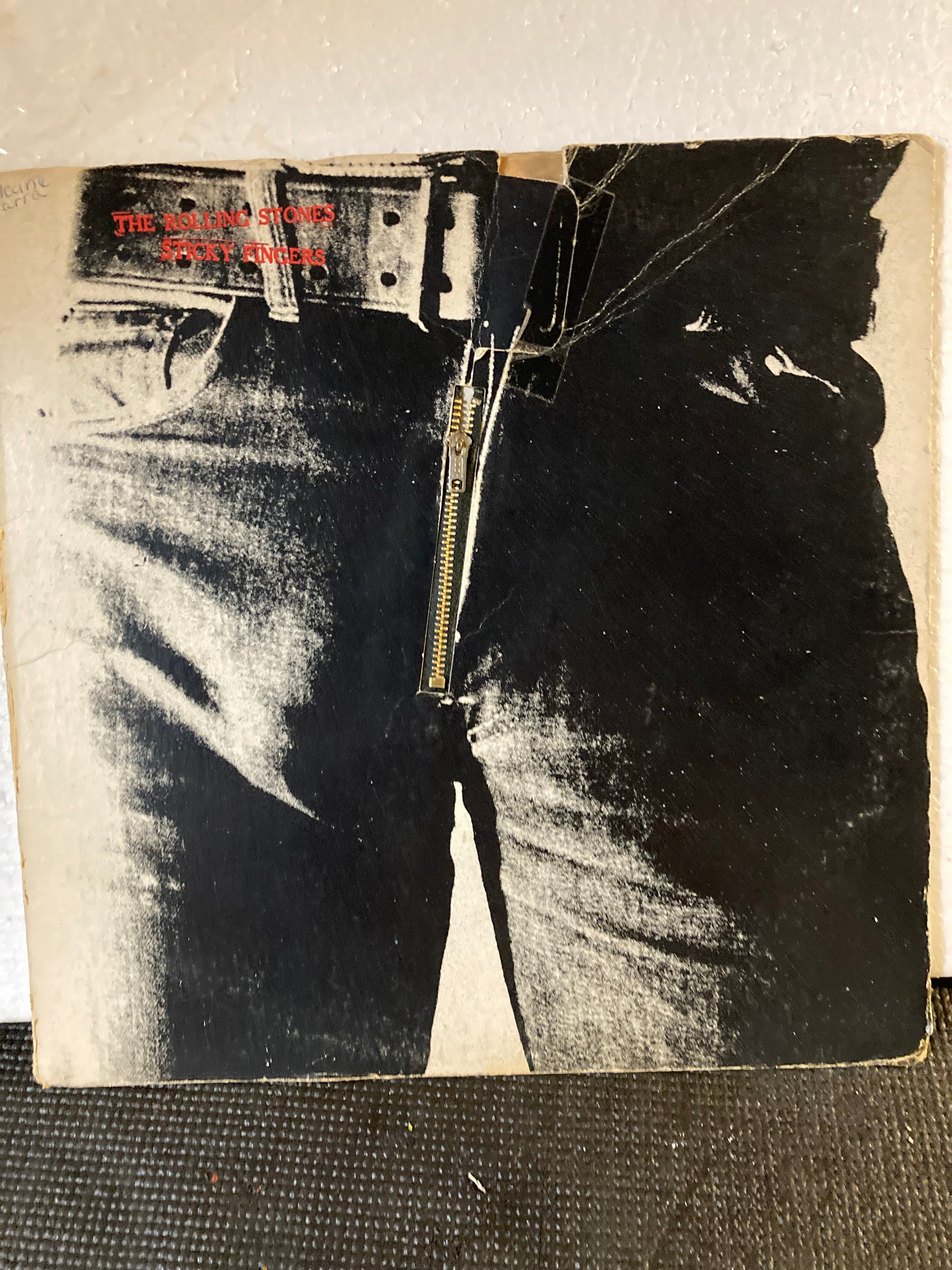 Sticky Fingers is the 9th British and 11th American studio album by the English rock band the Rolling Stones. The Stones released it on 23 April 1971 on their new, and own label Rolling Stones Records. They had been contracted by Decca Records and London Records in the UK and the US since 1963. On this album Mick Taylor made his second full-length appearance on a Rolling Stones album (after the live album Get Yer Ya-Ya's Out!). It was the first studio album without Brian Jones who died two years earlier. The original cover artwork, conceived by Andy Warhol and photographed and designed by members of his art collective, The Factory, showed a picture of a man in tight jeans, and had a working zip that opened to reveal underwear fabric. The cover was expensive to produce and damaged the vinyl record, so the size of the zipper adjustment was made by John Kosh at ABKCO records. Later re-issues featured just the outer photograph of the jeans.