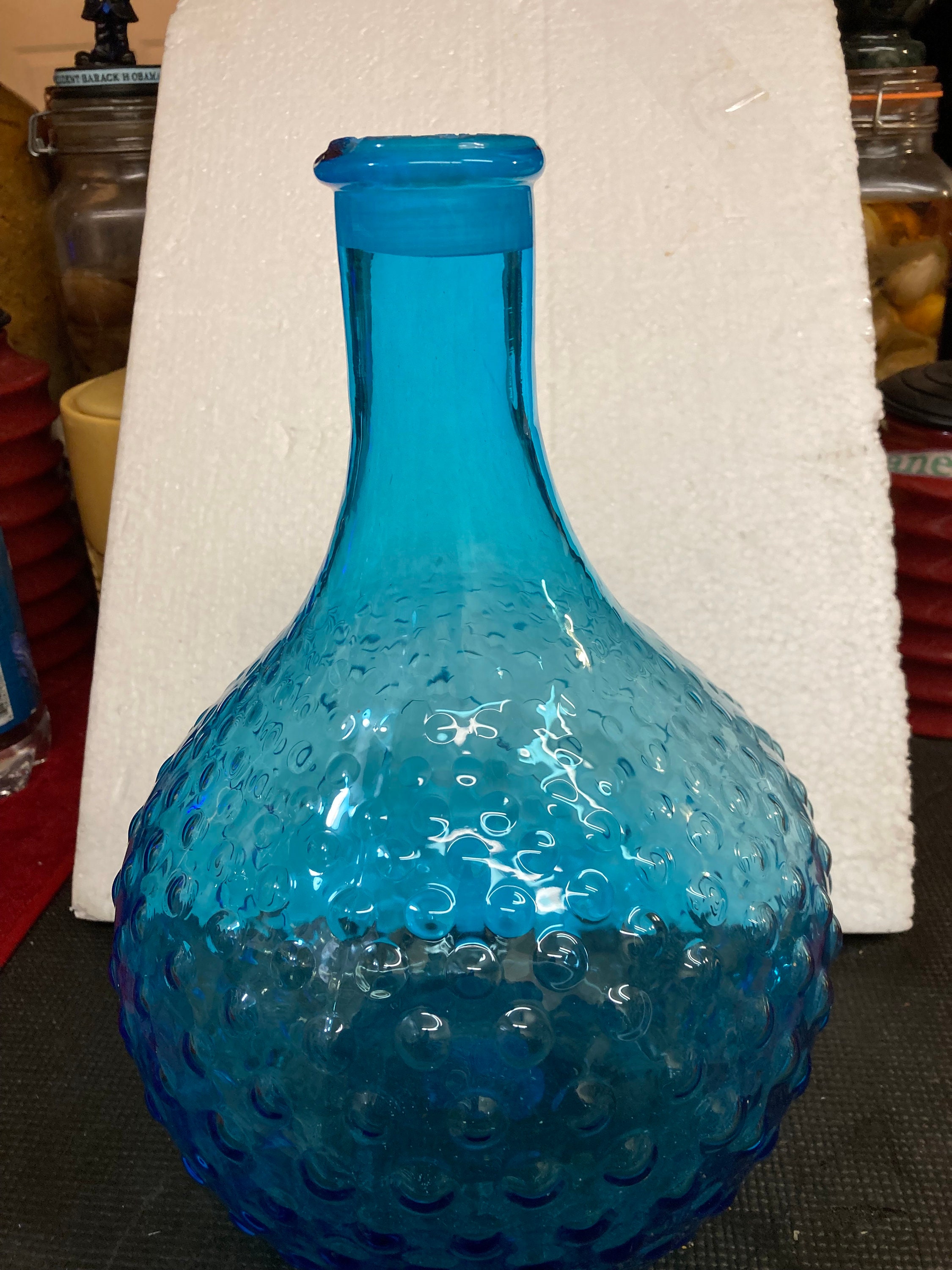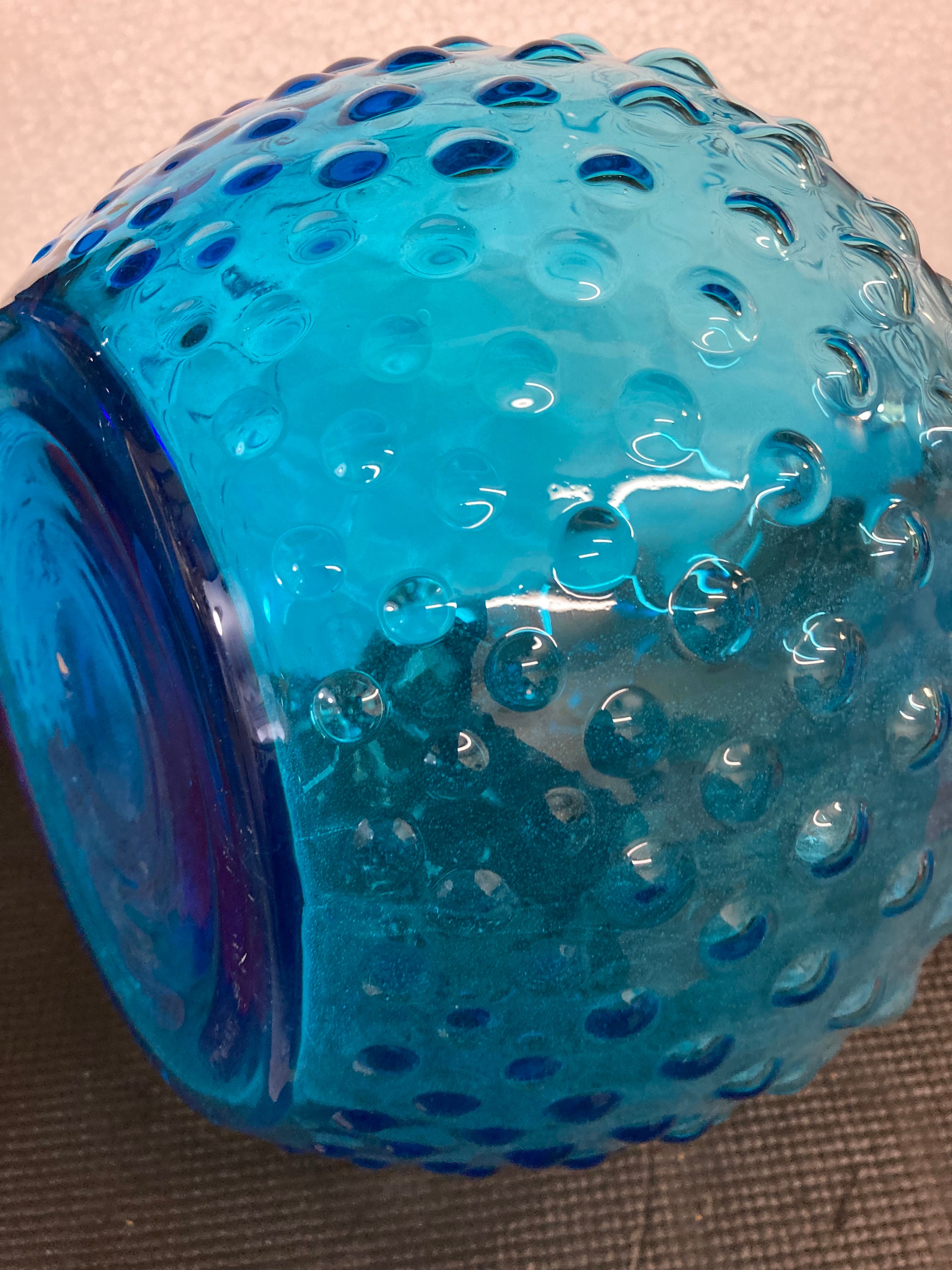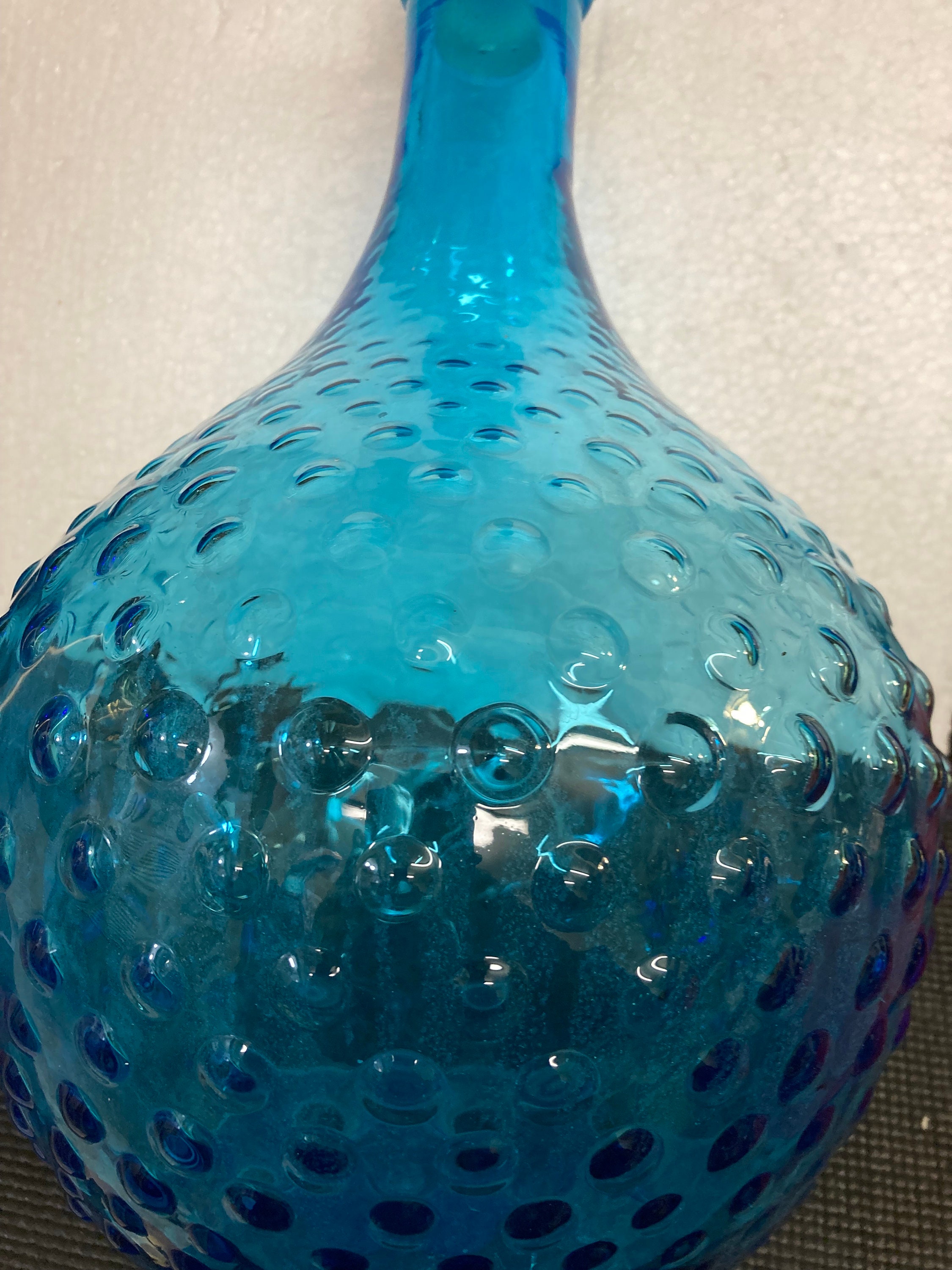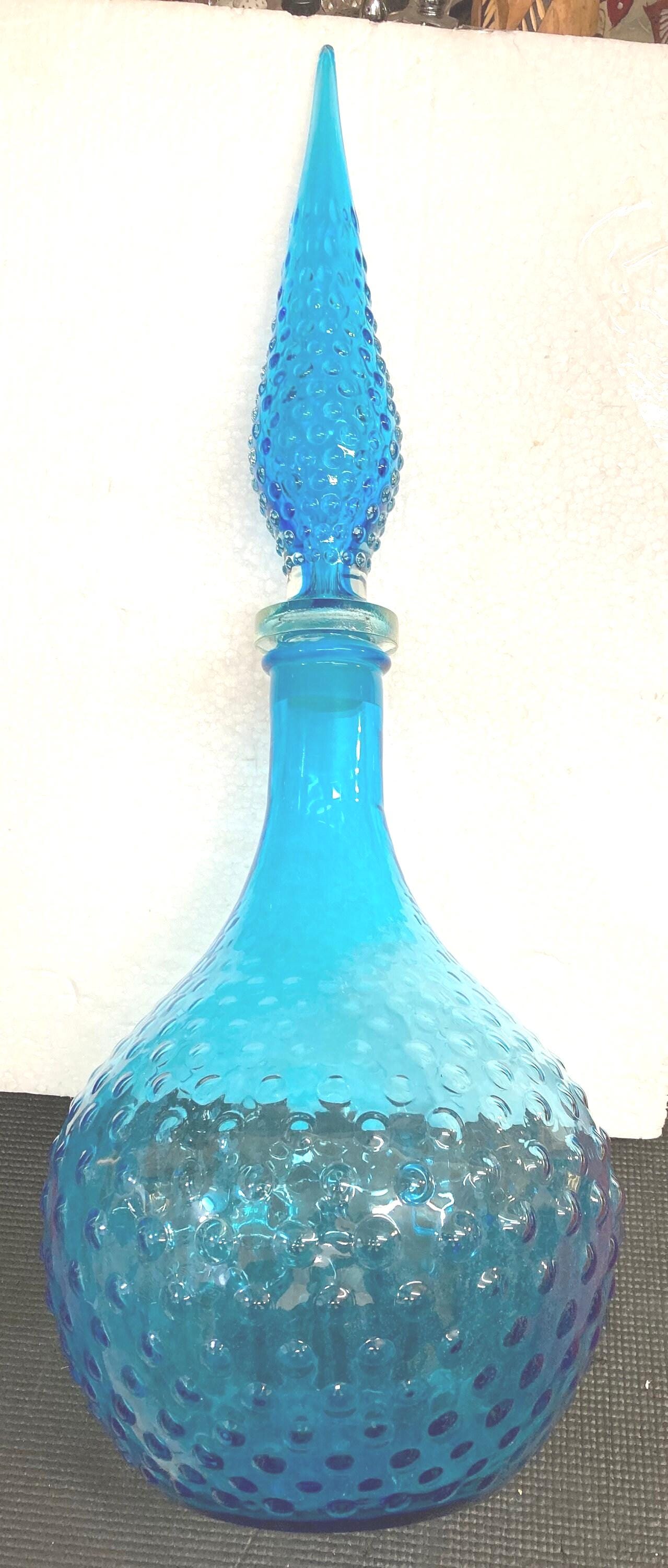 Glass Genie Bottle Teal Blue Bubble Hobnail With Stopper.