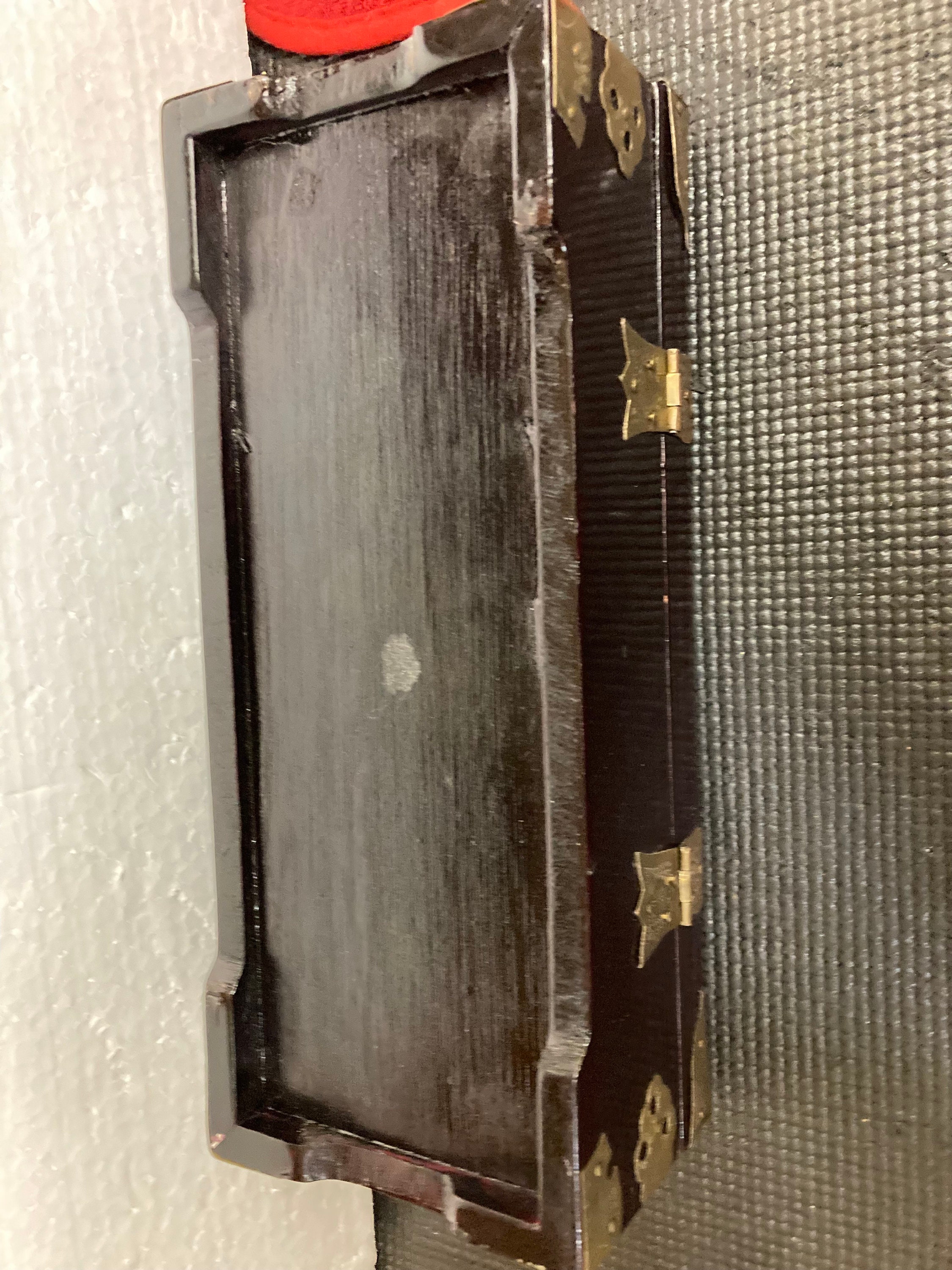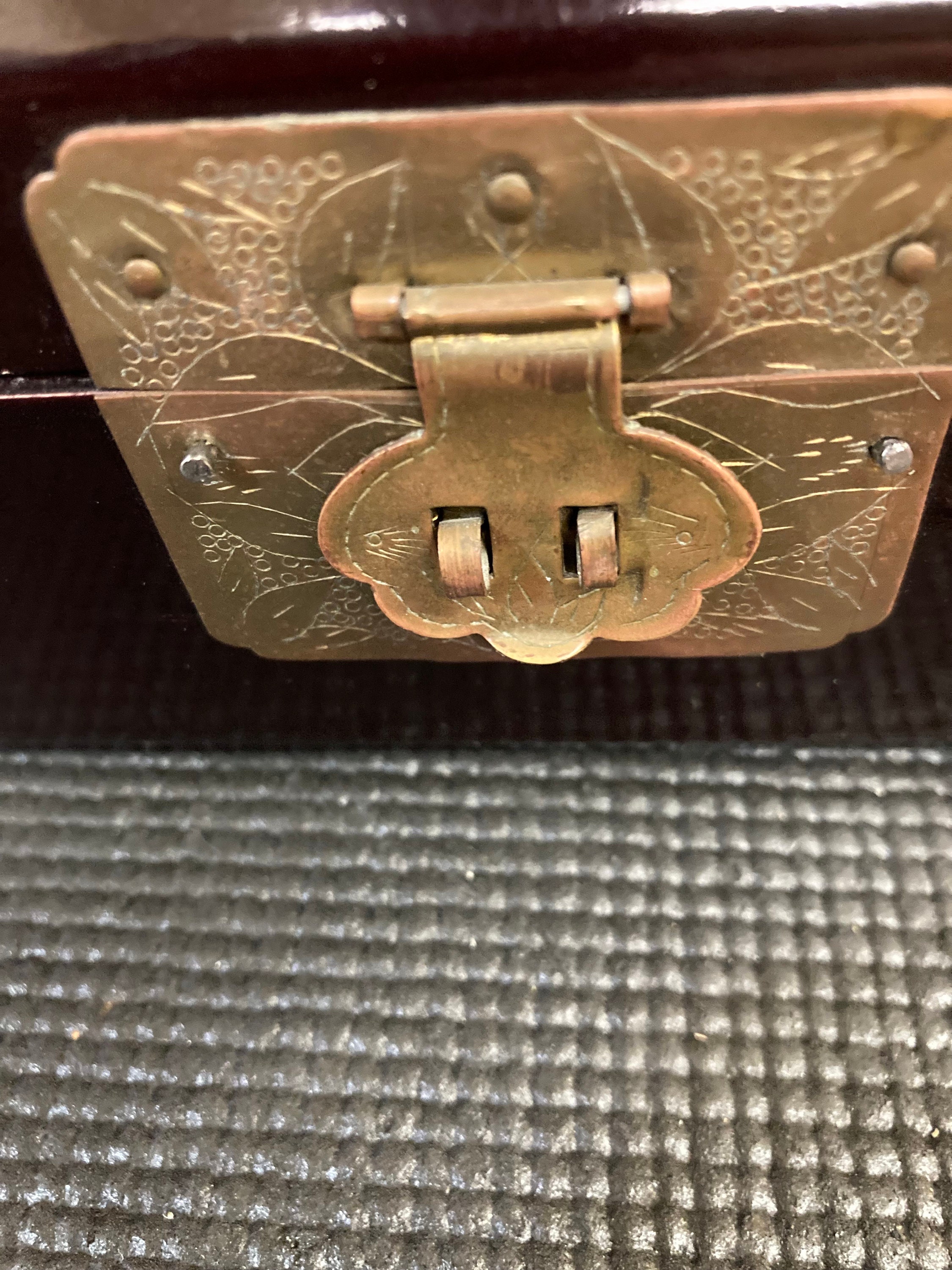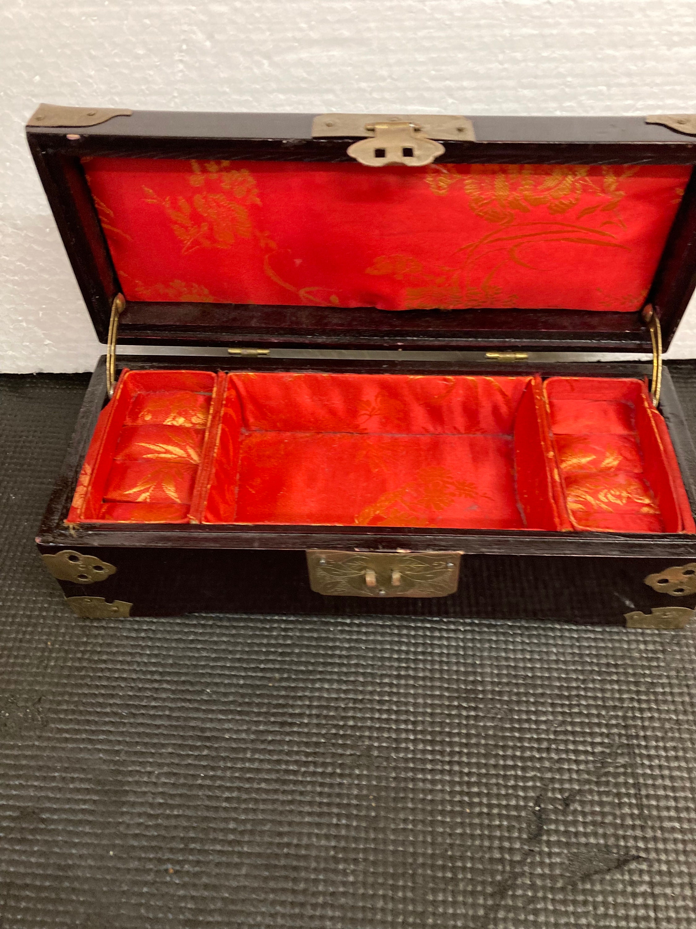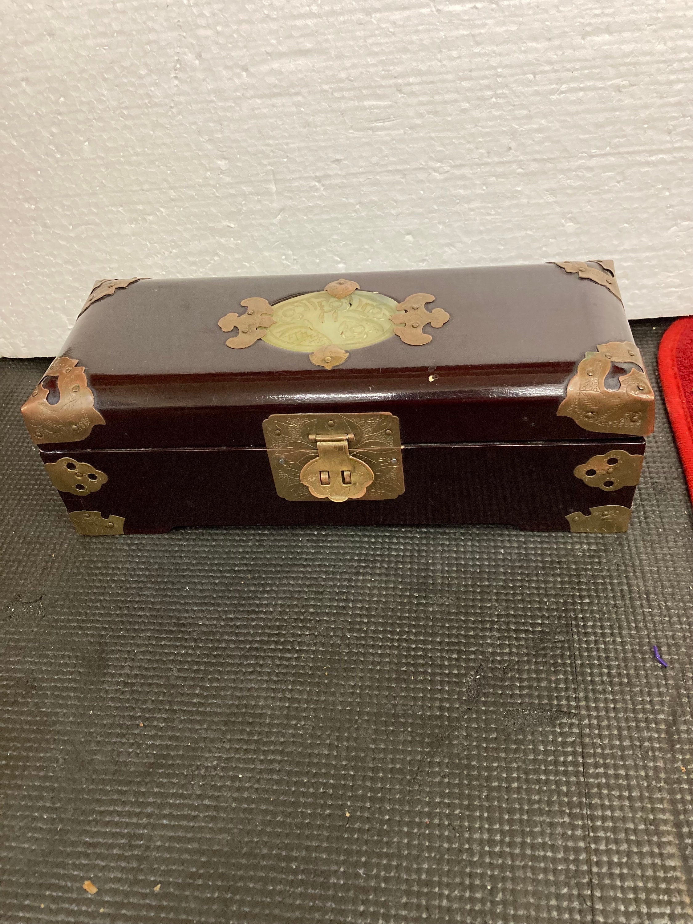 Vintage Jade Wood & Etched Brass Treasure Trinket Box 10 " W x 4" D x 3-1/4" T