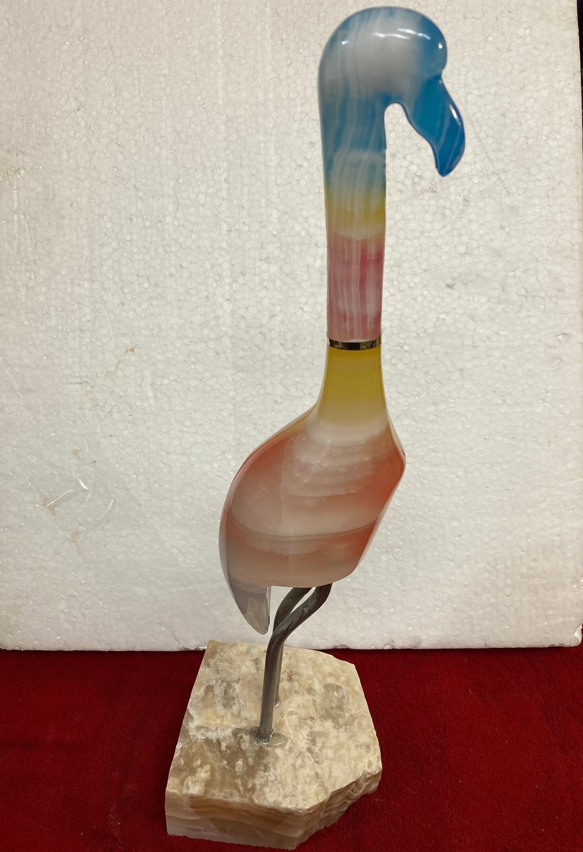 Colorful Handmade Flamingo Sculpture, Marble Base14.25" tall x 3.5" wide x 4" deepWeight: 3.75 lbs