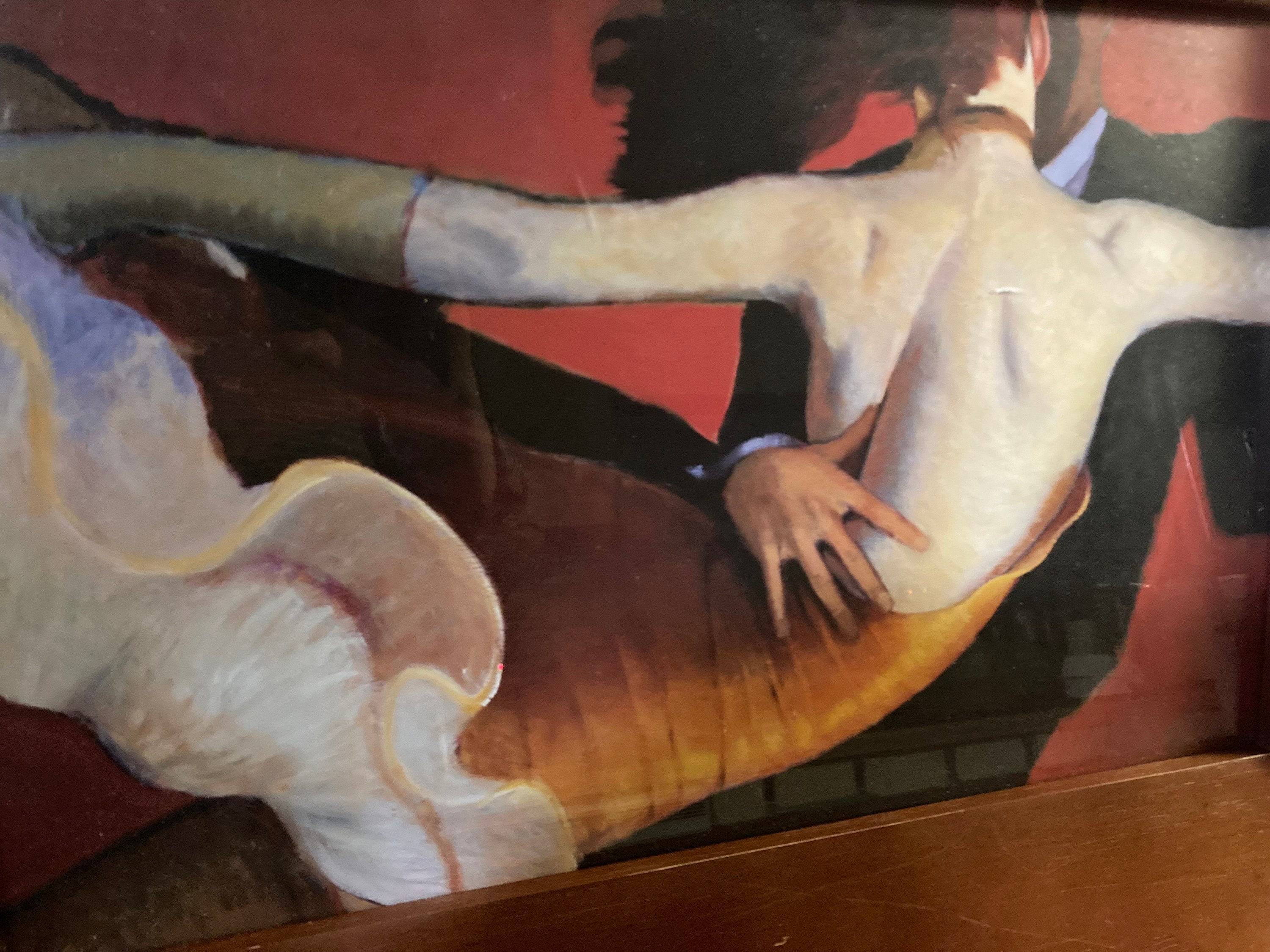 Brauer’s suggestive, moody works use a single light source to illuminate intense colors and poses emphasizing the female form.