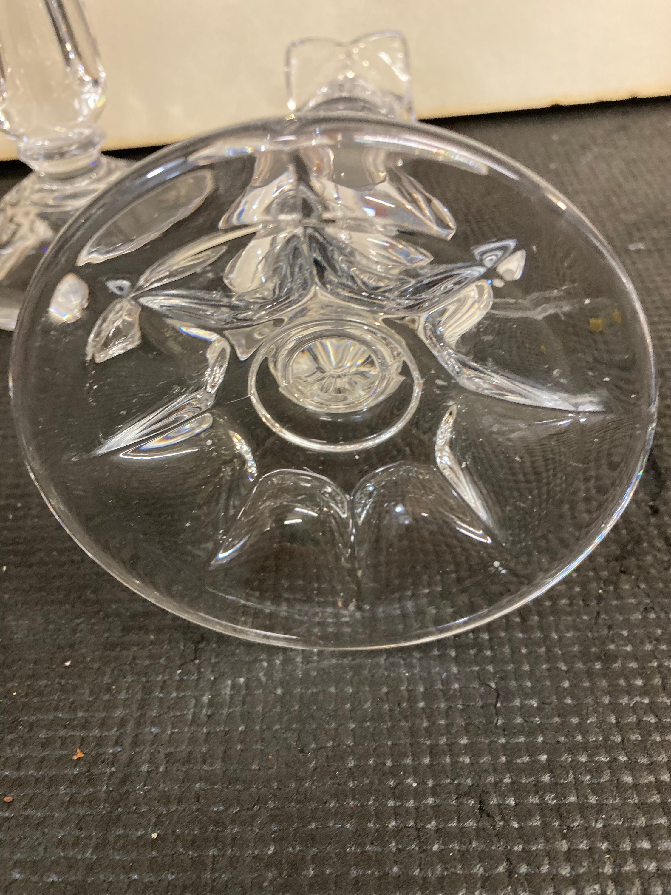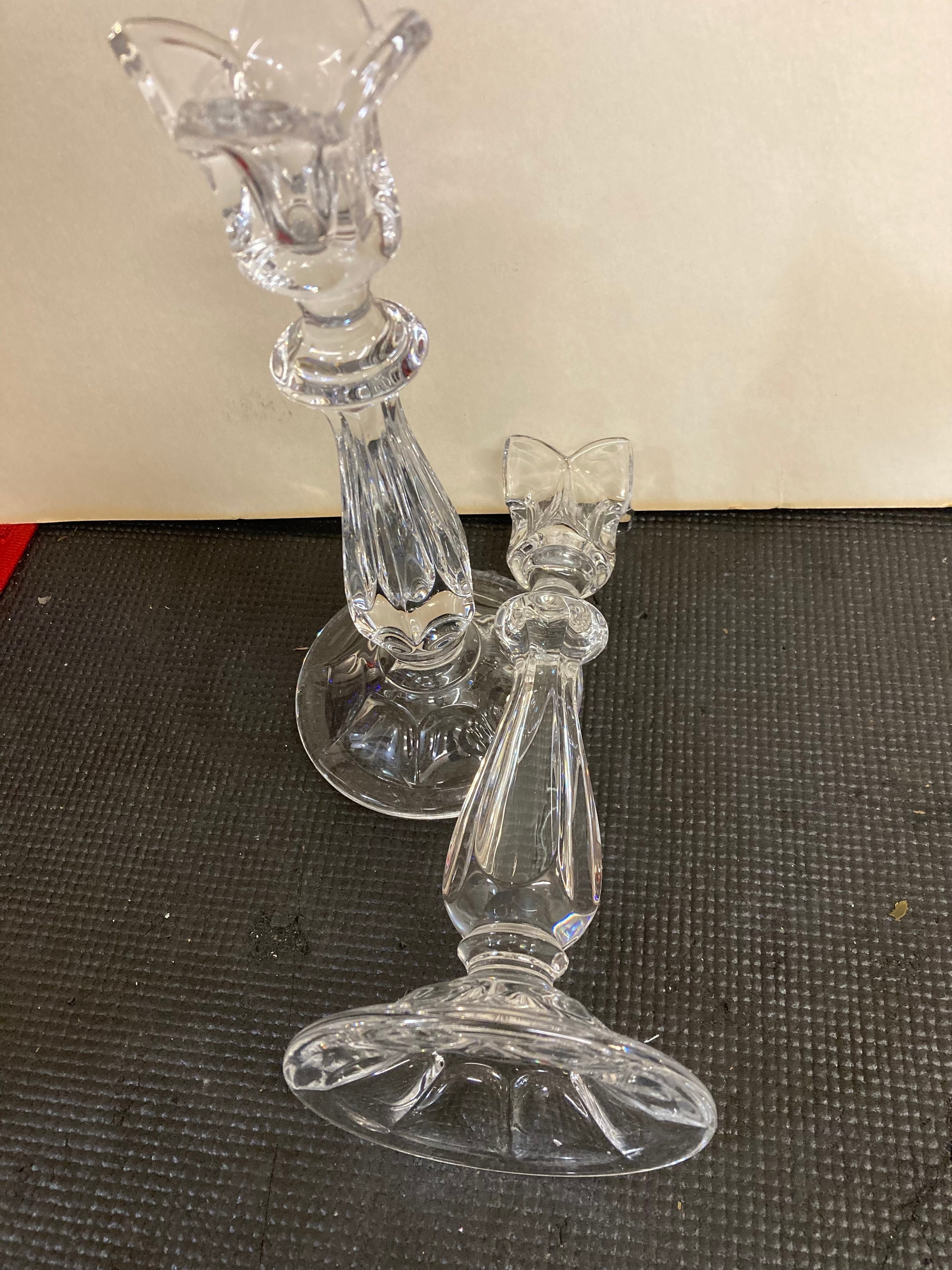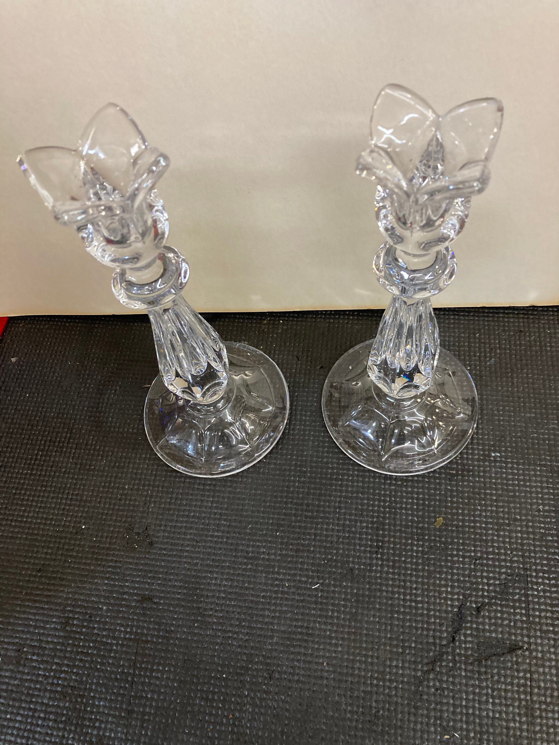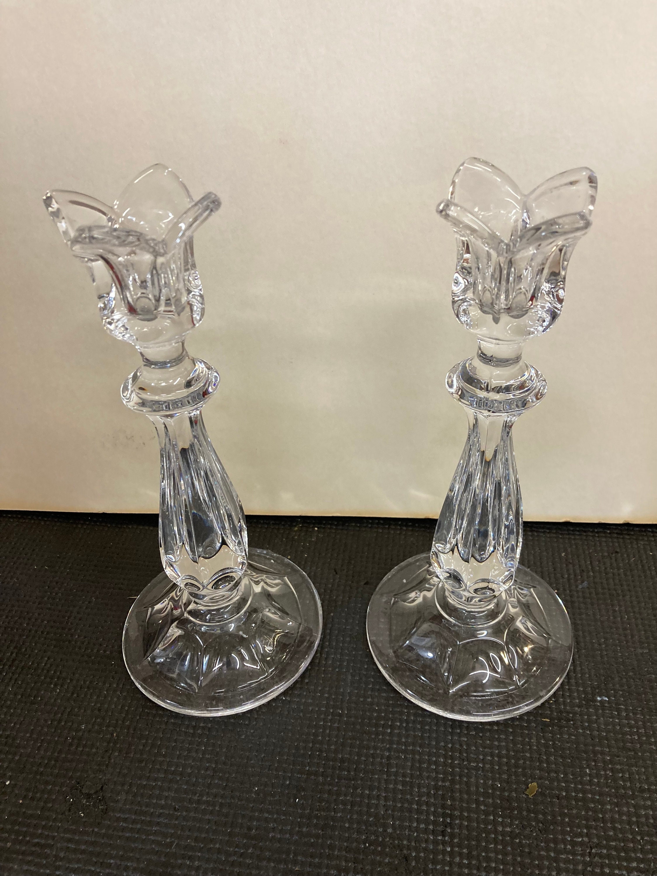 Set of Vintage Gorham Viscount Crystal Candleholders Tulip Pattern - West Germany8.75" tall x 3.75" wide x 3.75" deepGreat condition; no chips or cracks