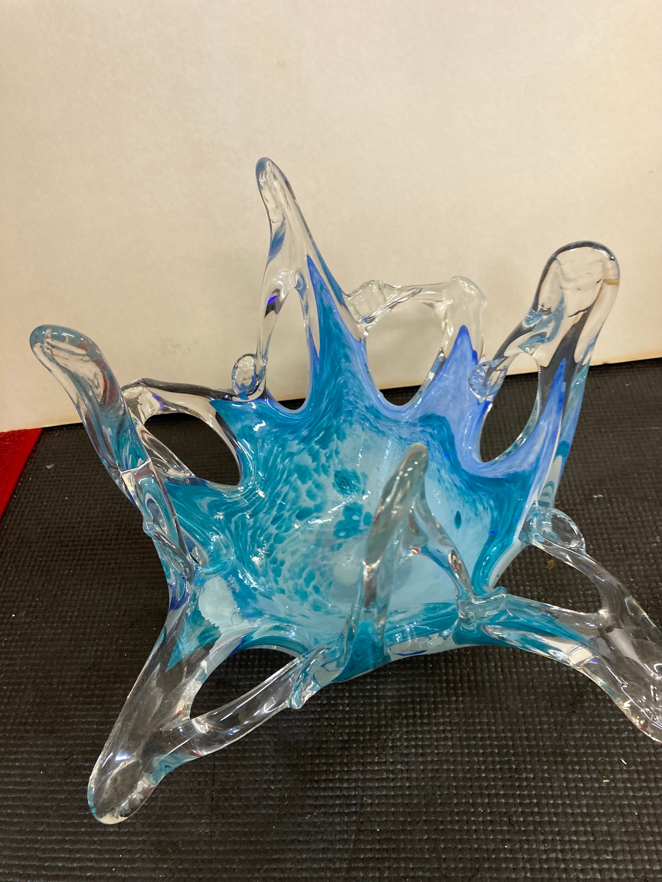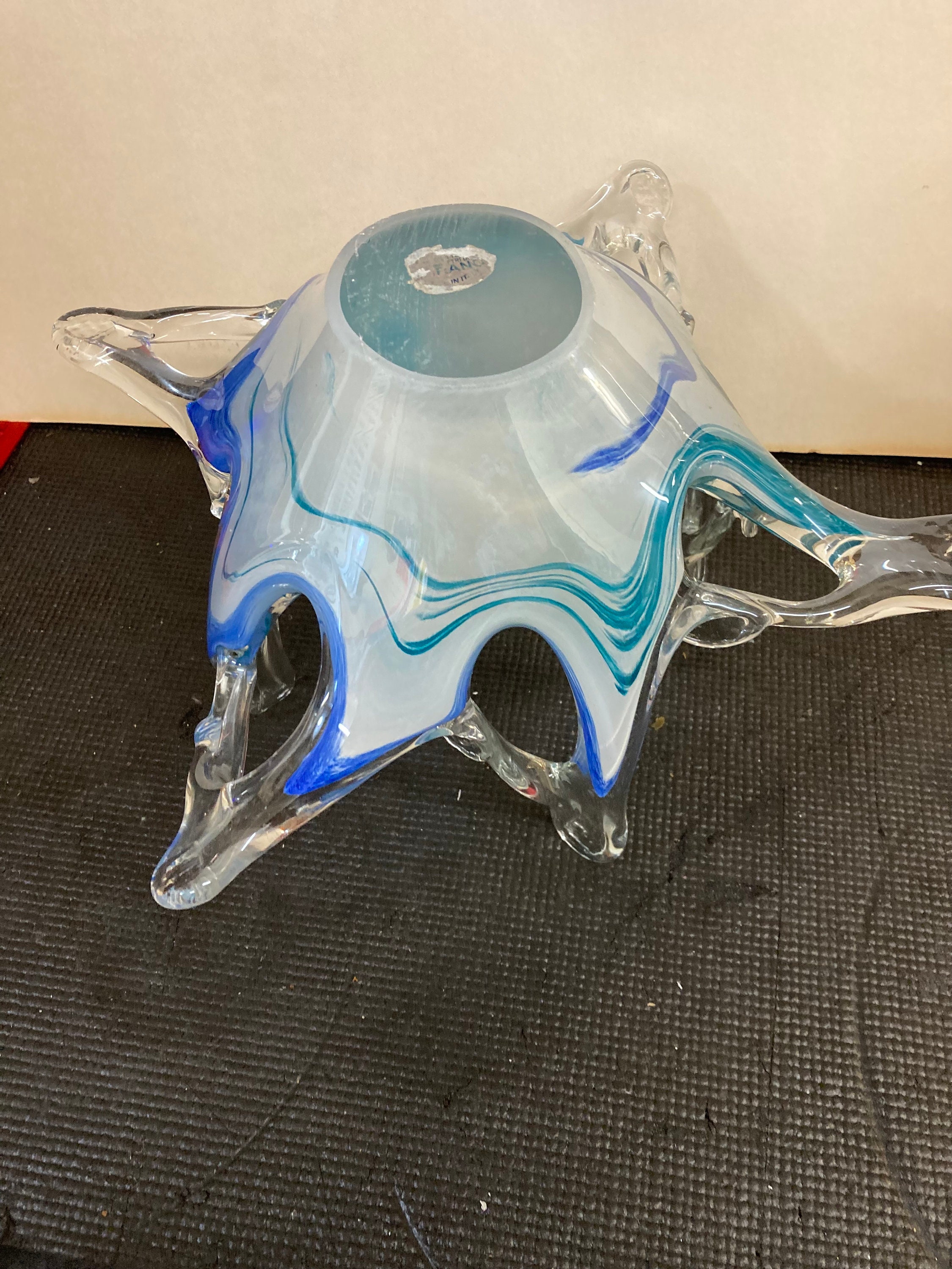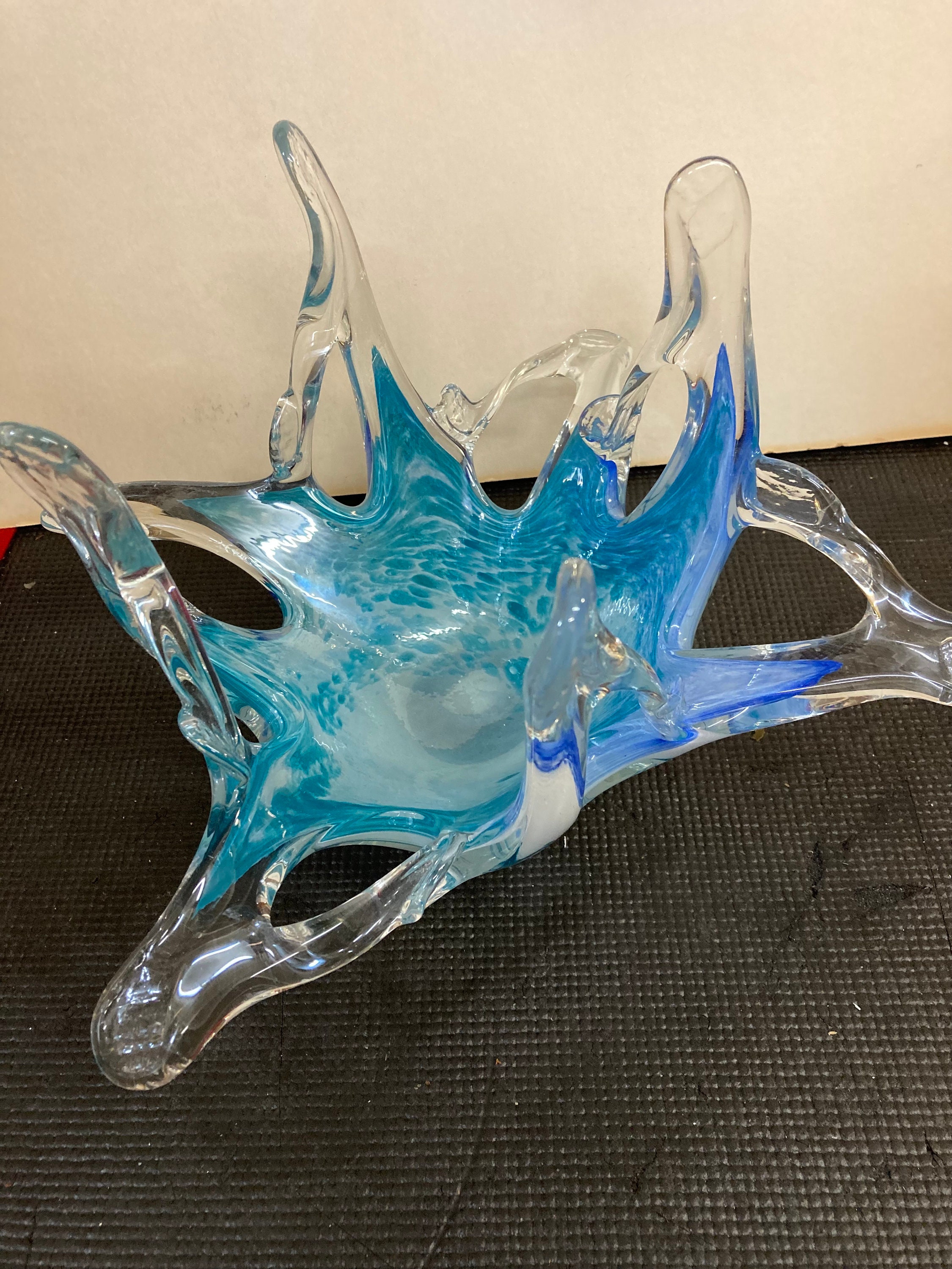 Murano Venetian Italian Sky Blue/ White/ Clear Art Glass Sculpture Bowl or Centerpiece