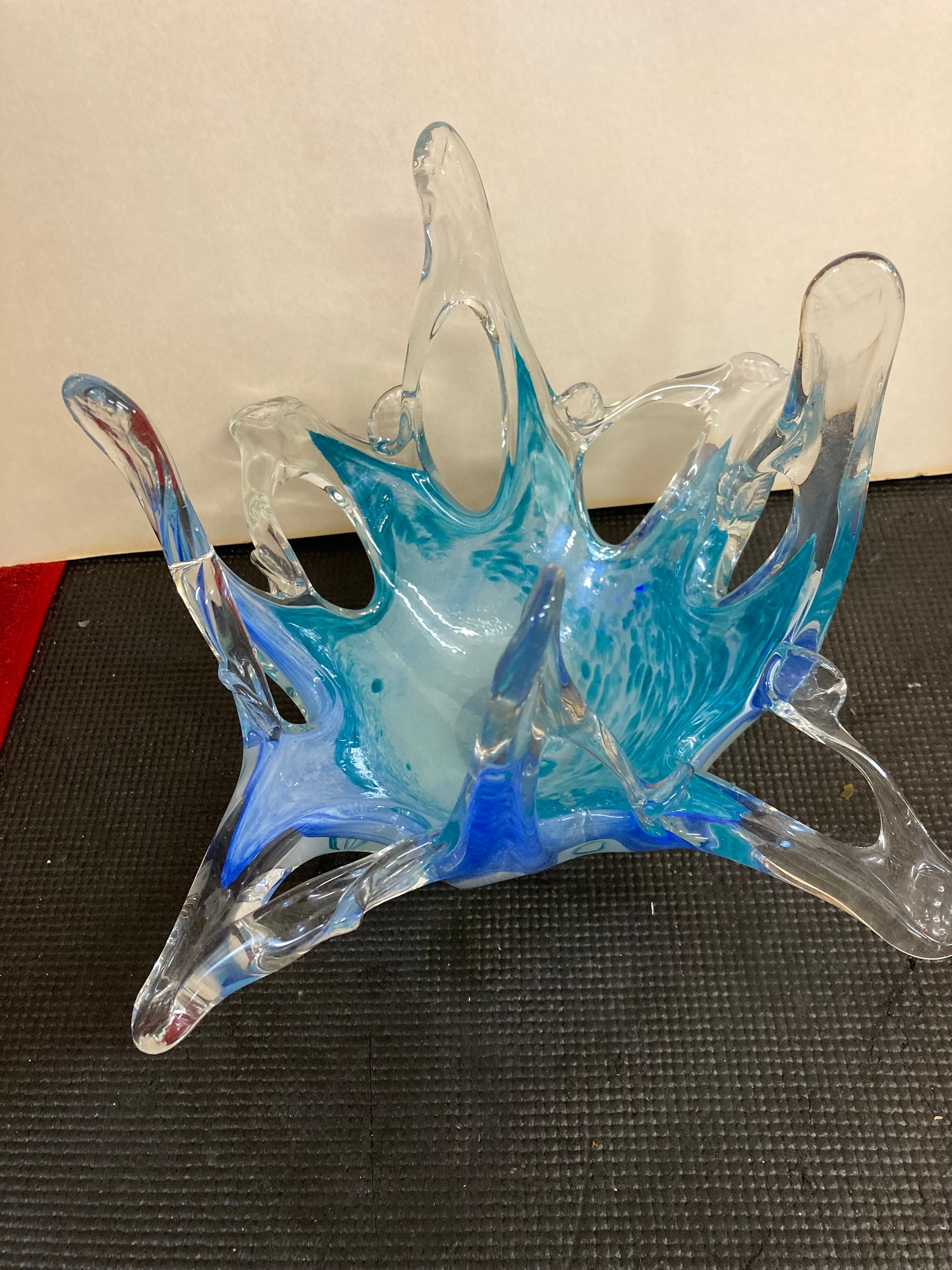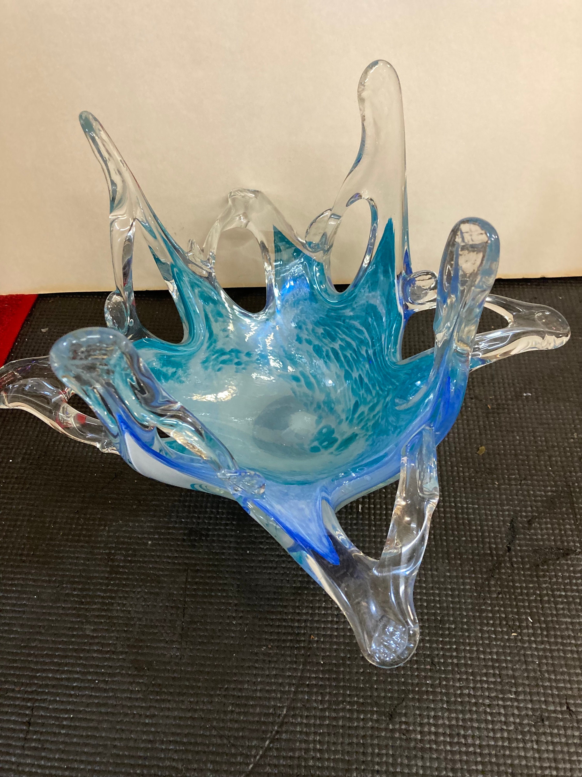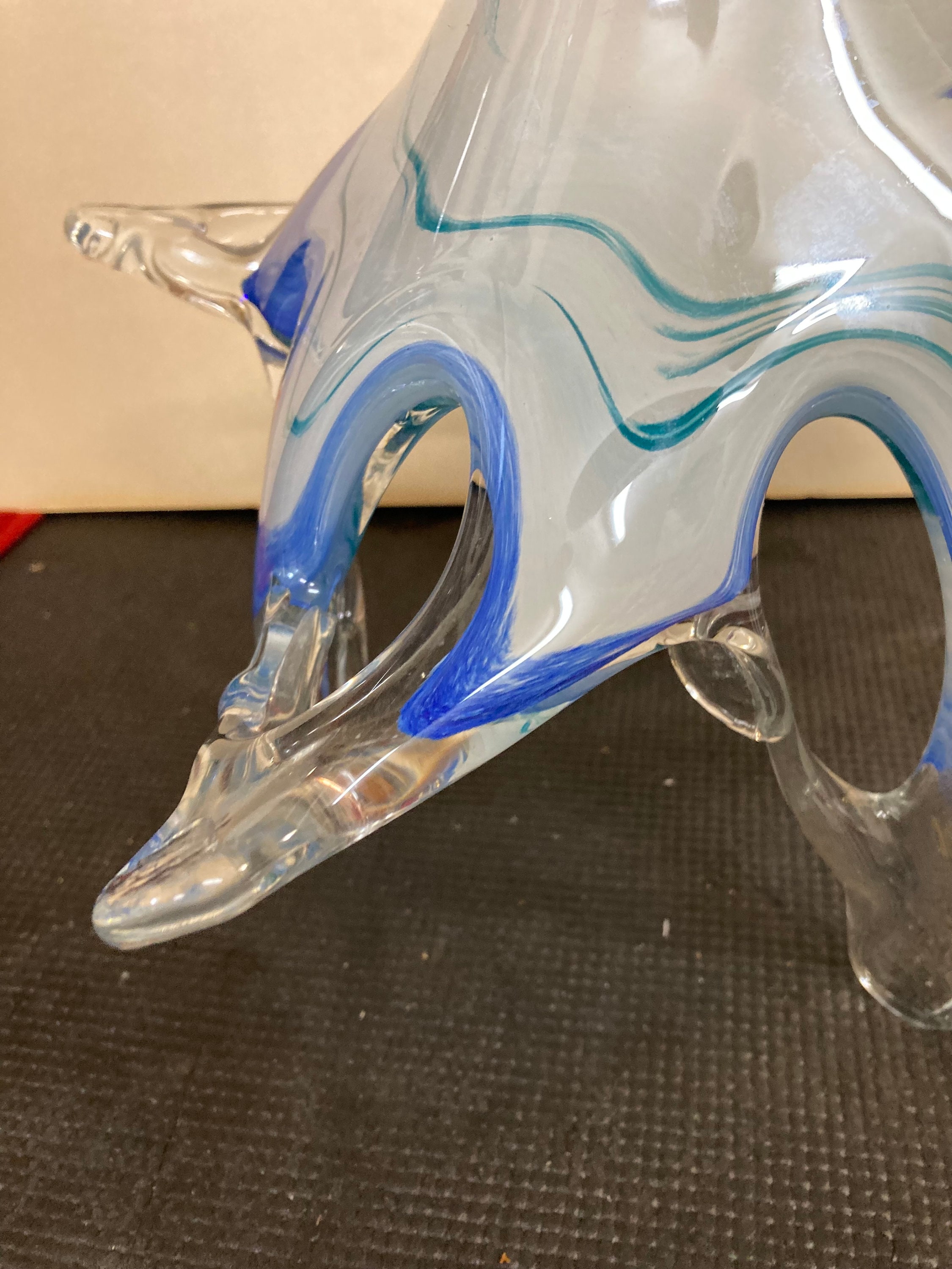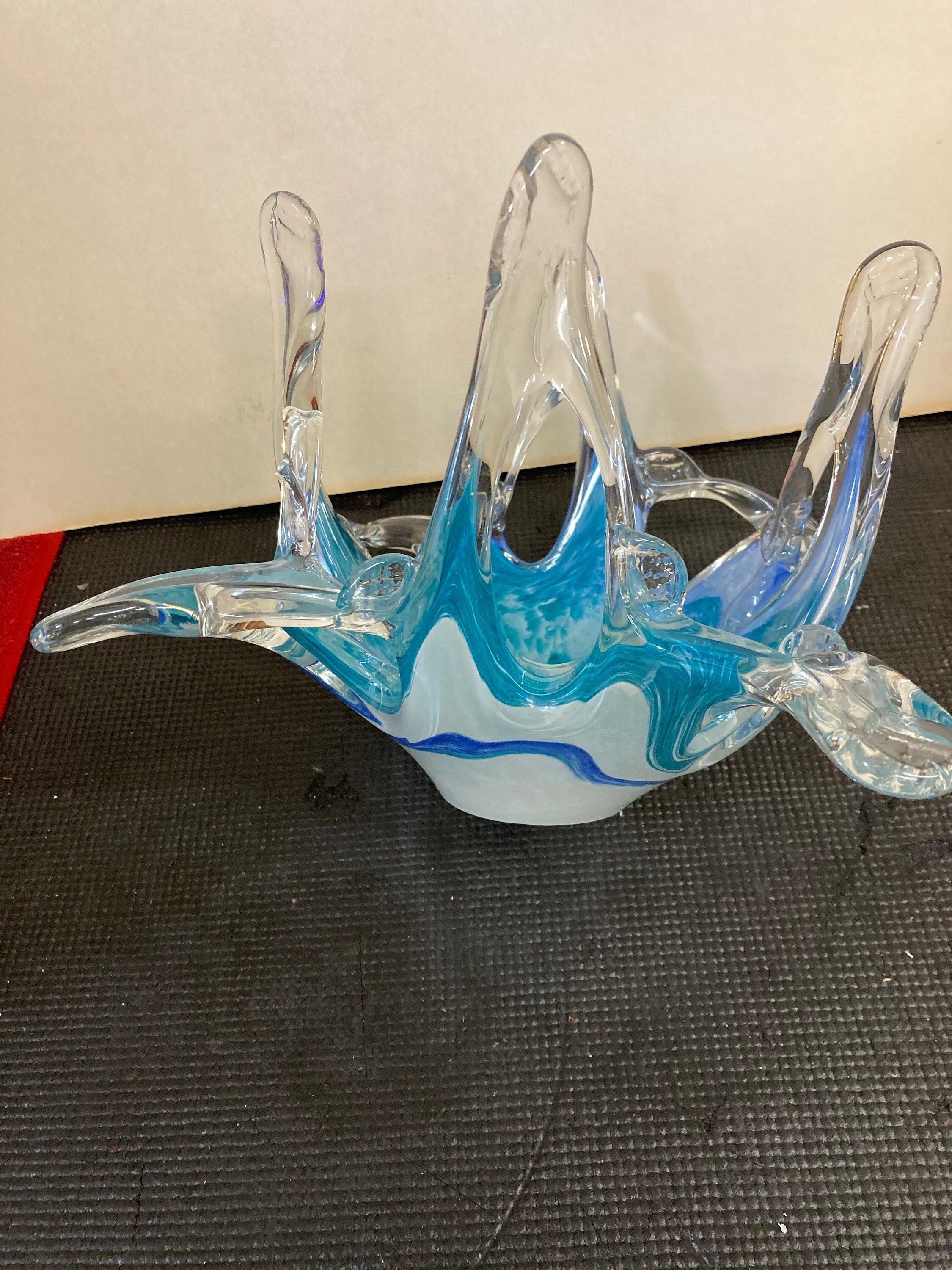 Murano Venetian Italian Sky Blue/ White/ Clear Art Glass Sculpture Bowl or Centerpiece