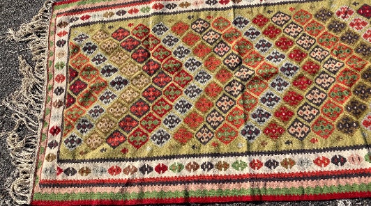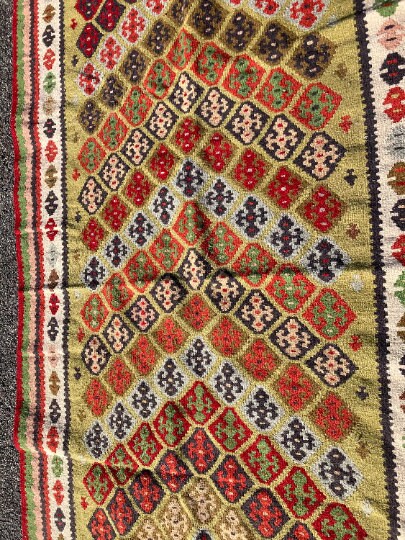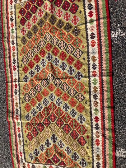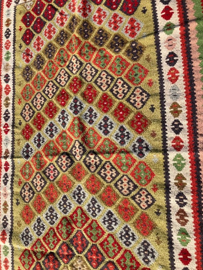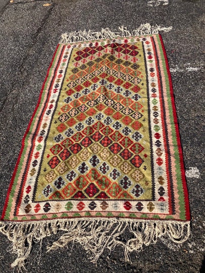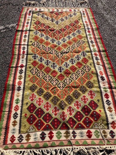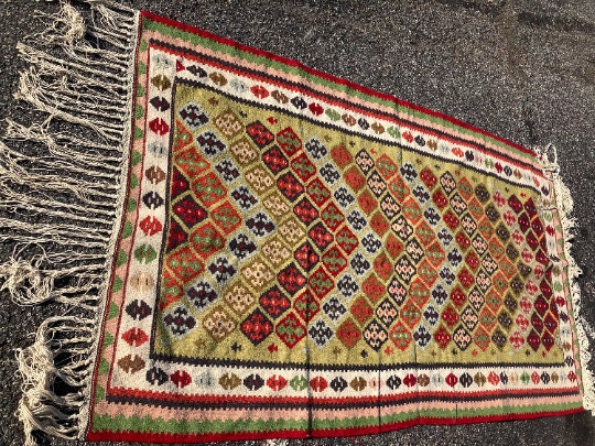 Hand Knotted Kilim from Middle East.Measures 3.60 feet wide x 6.75 feet long x 1/2" thickWeight: 7.60lbsHand madeExcellent Condition Never Used