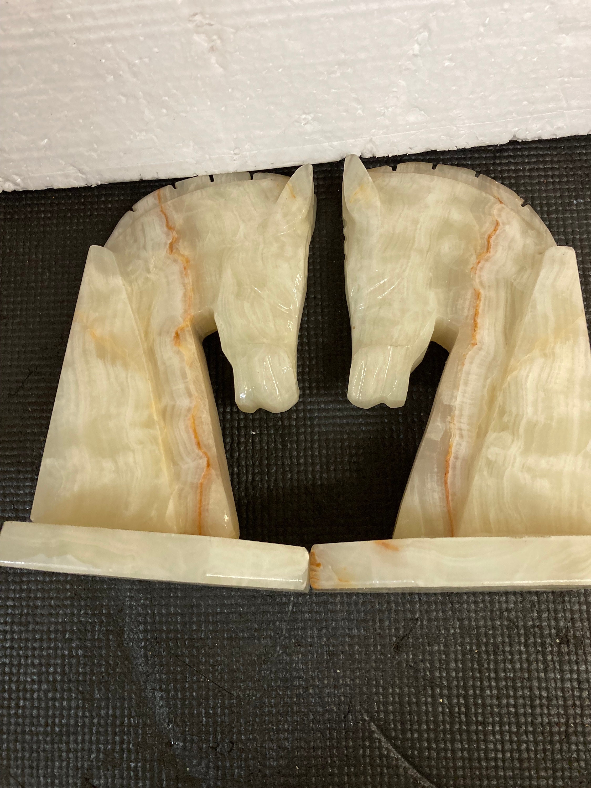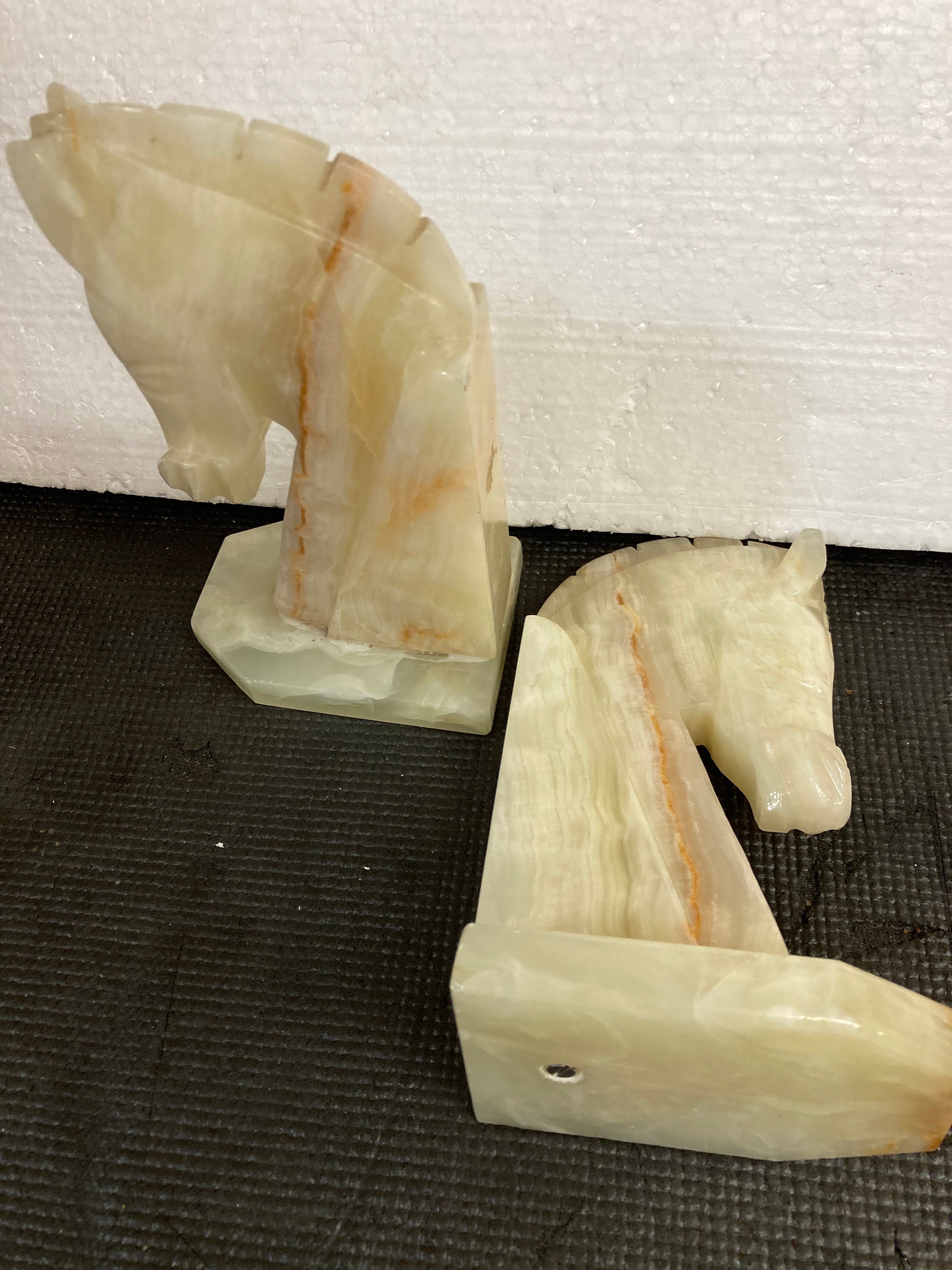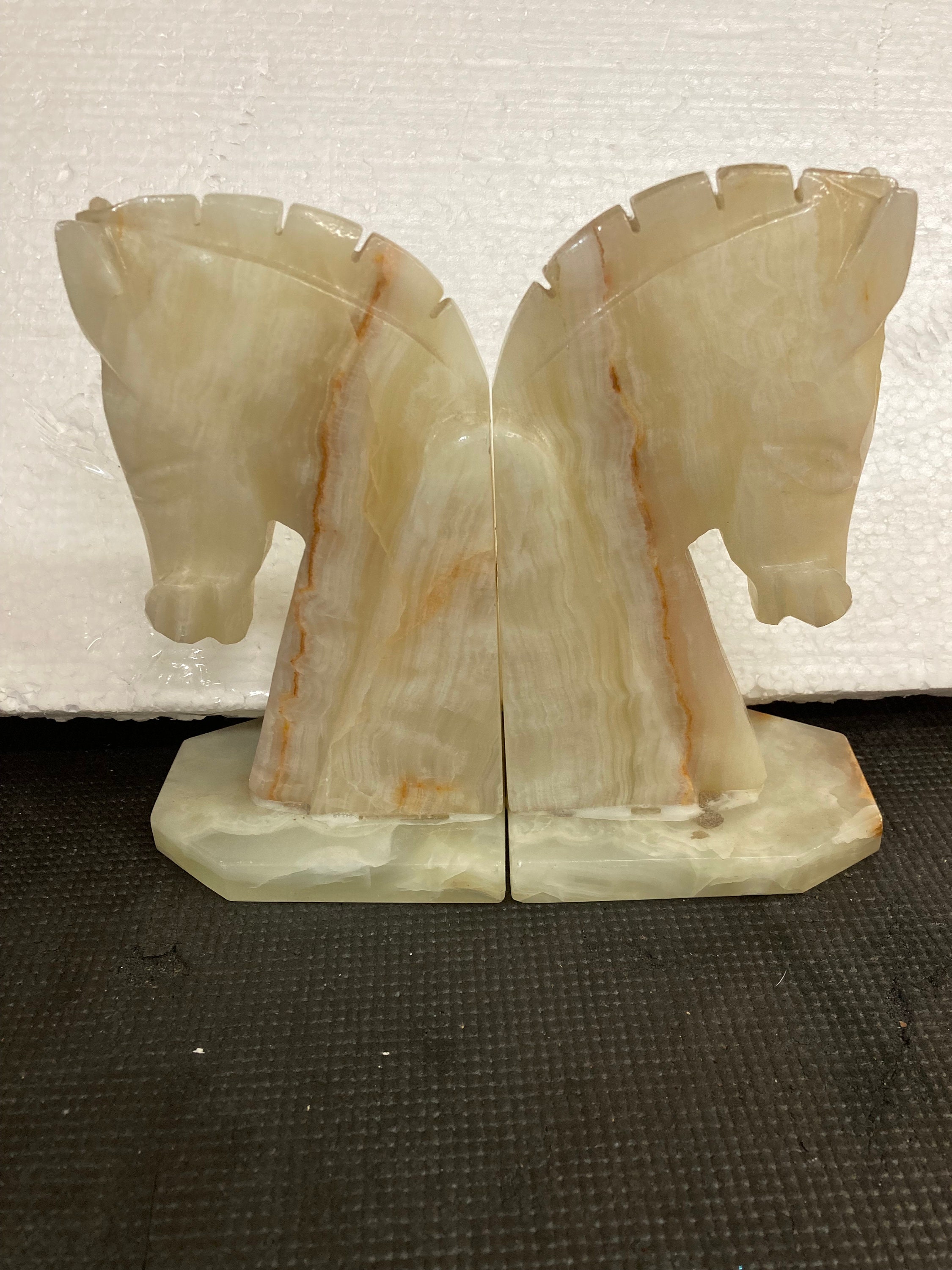 Mid 20th Century Carved Onyx Stone Horse Head Bookends - a Pair