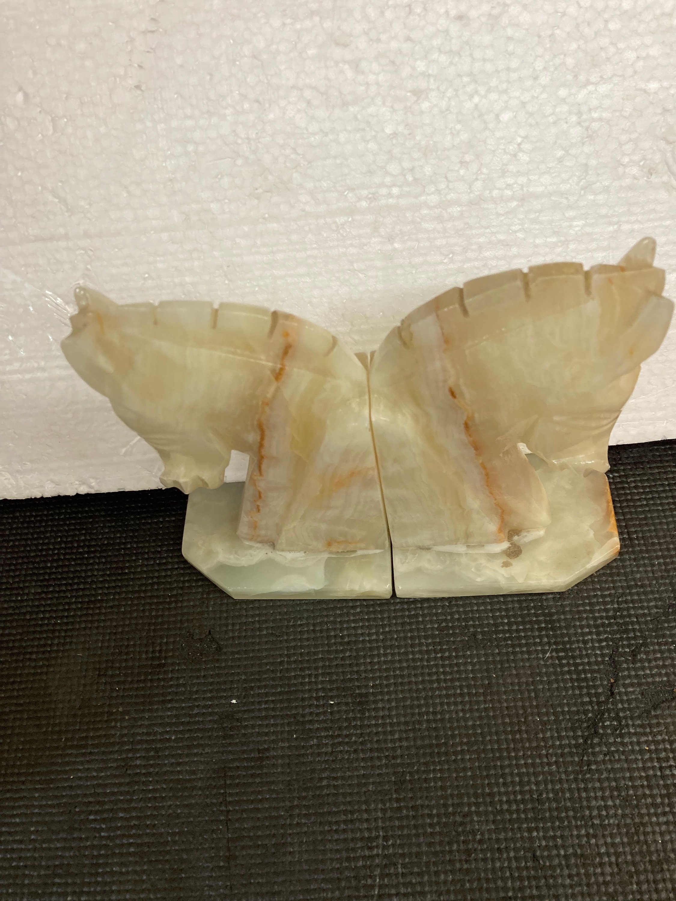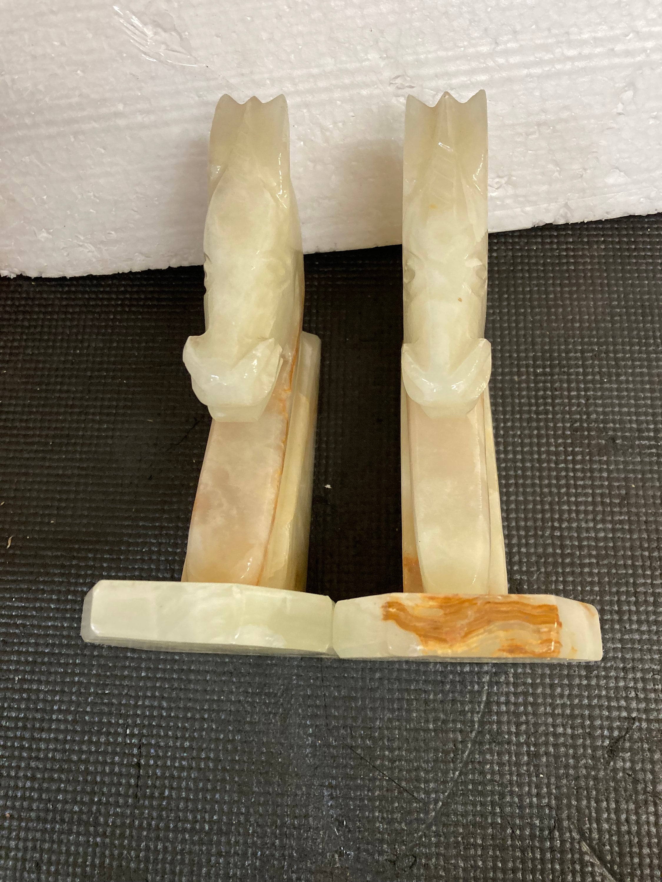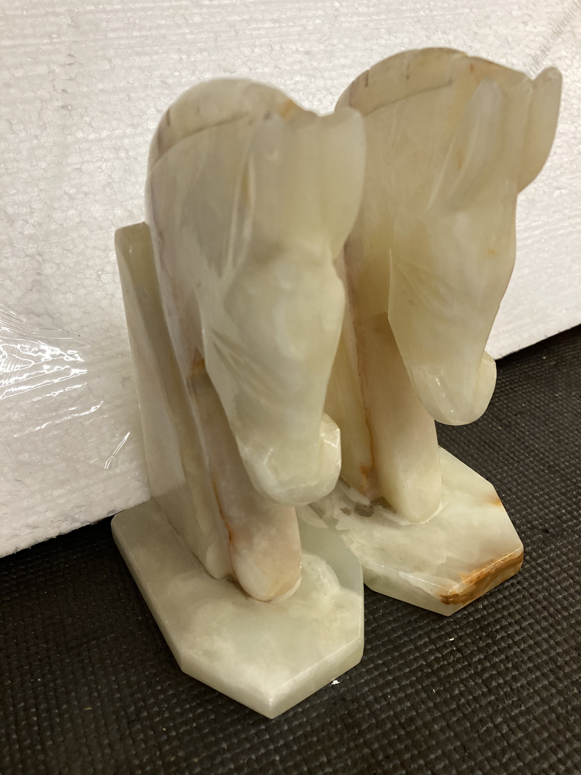 Mid 20th Century Carved Onyx Stone Horse Head Bookends - a Pair