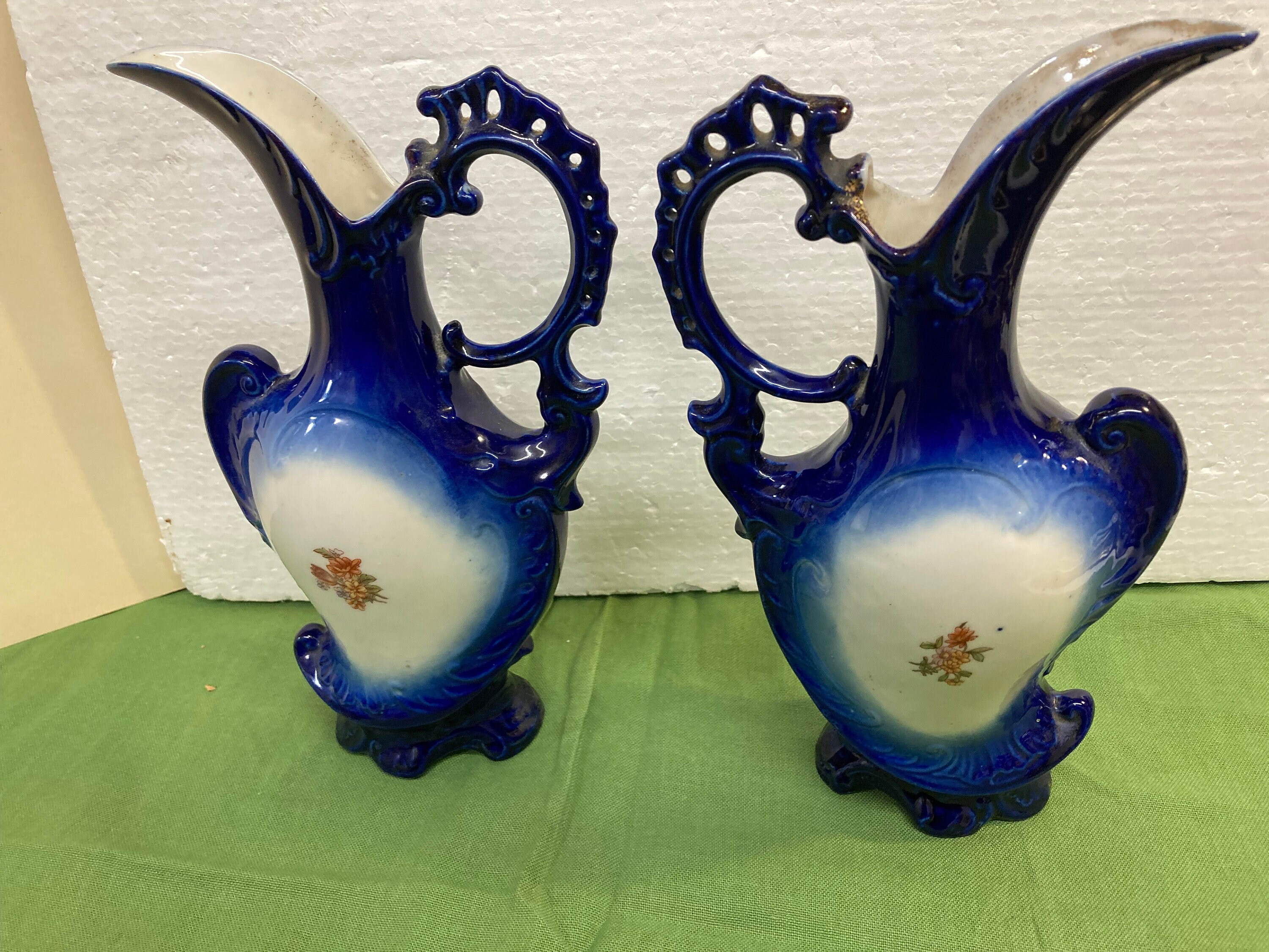 Vintage Victoria Carlsbad Austria White Teal Gold Ornate Vase Pitchers,