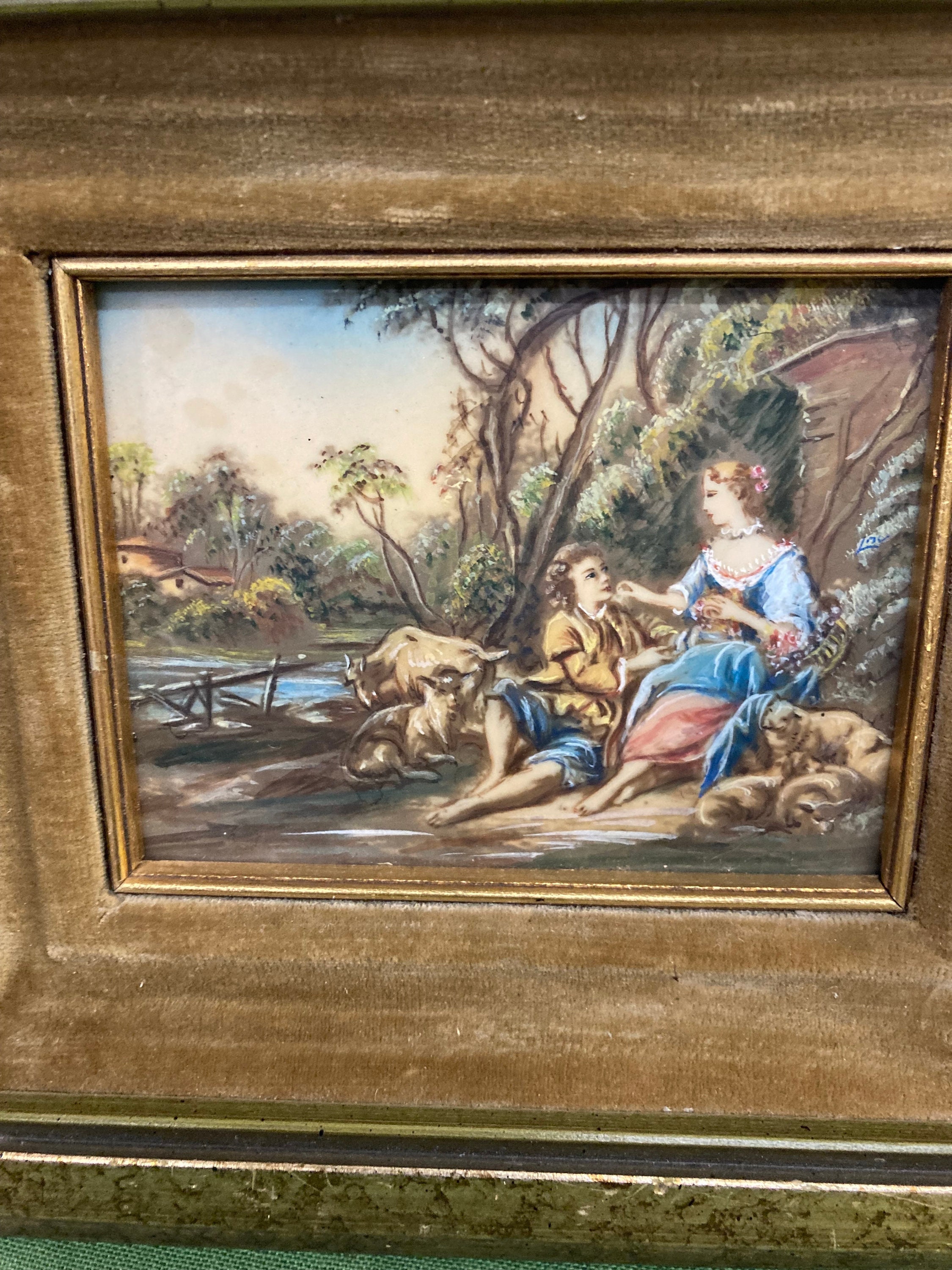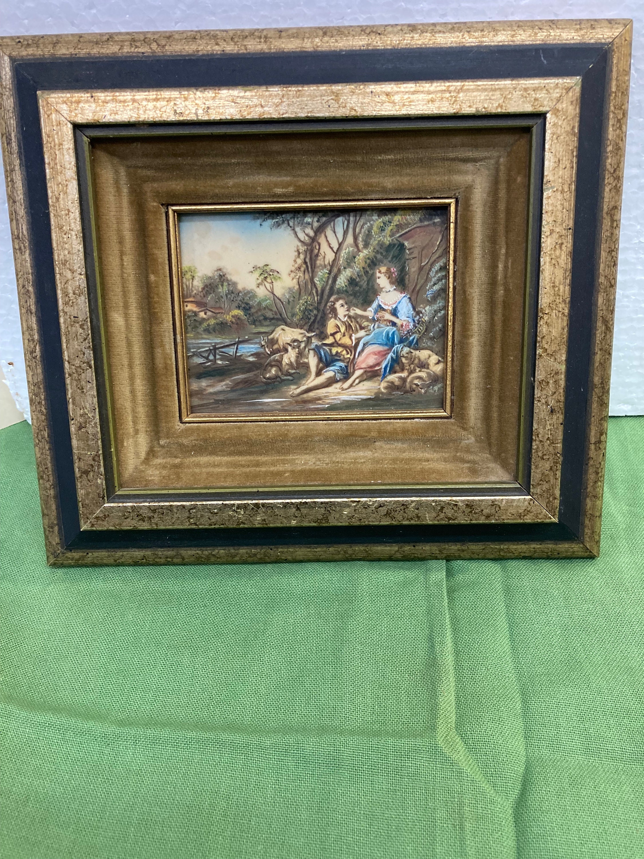 Vintage Sungott Art Studio New York , Mid Century Modern Framed Wall Hanging, Framed Measurements:9 " w x 8 " t x 1.5" dpainting Approx,4.5" x 3.5"