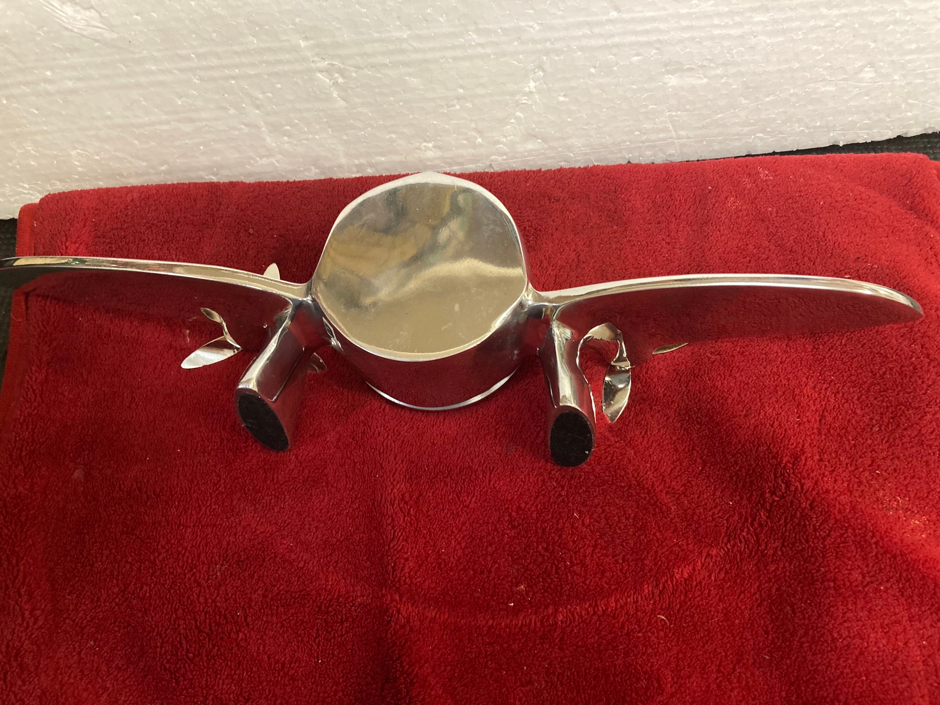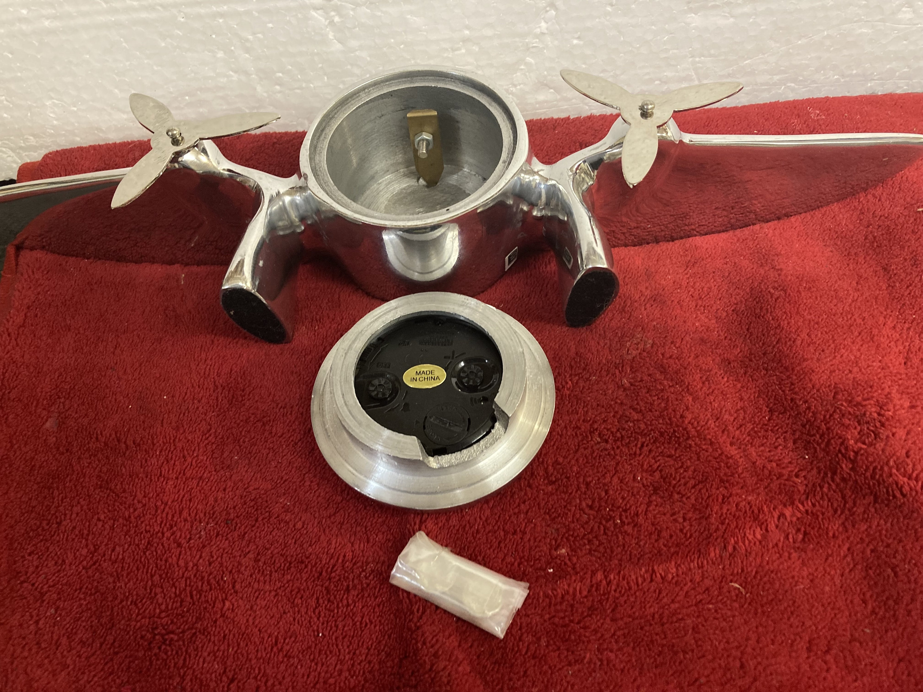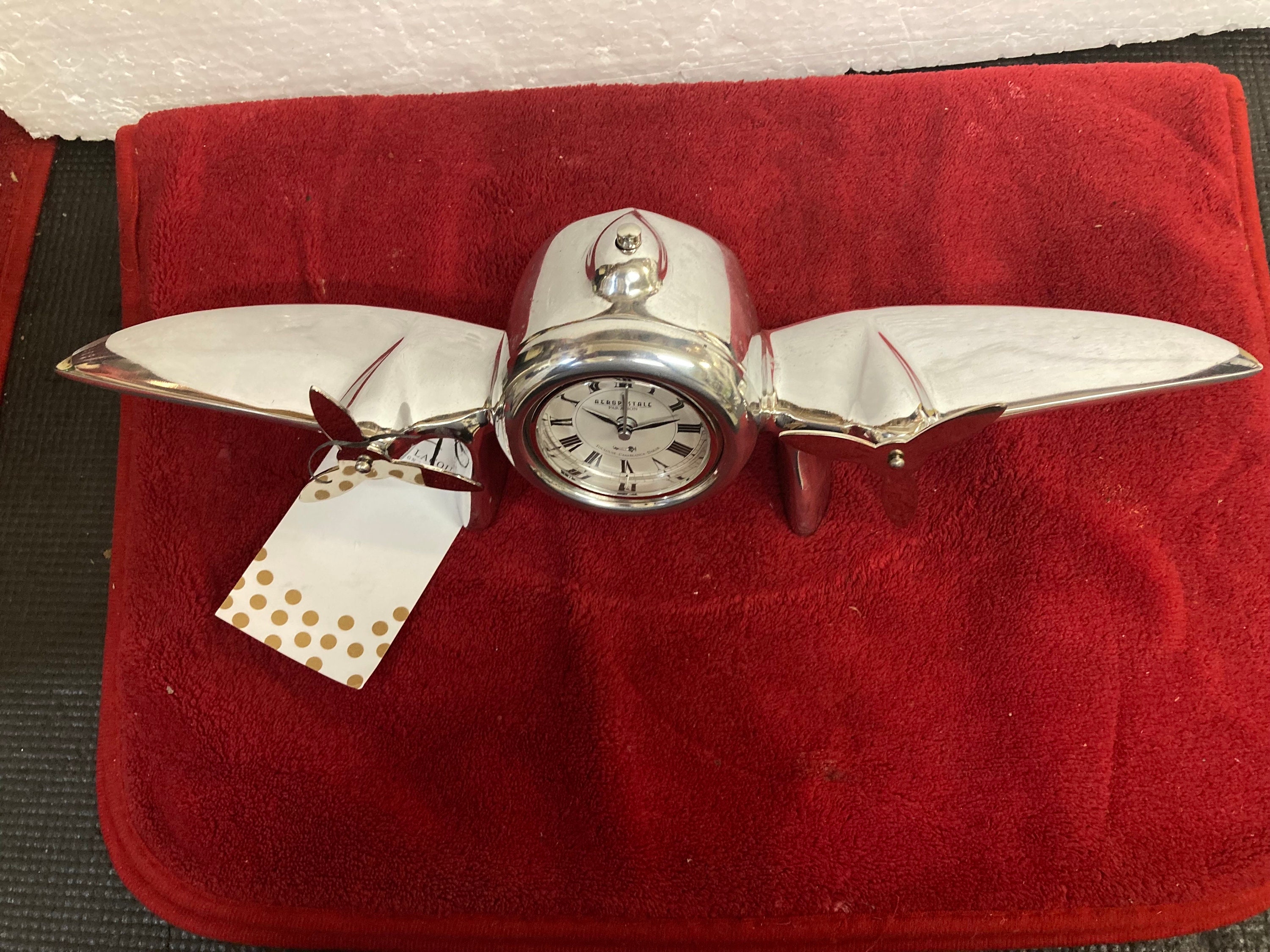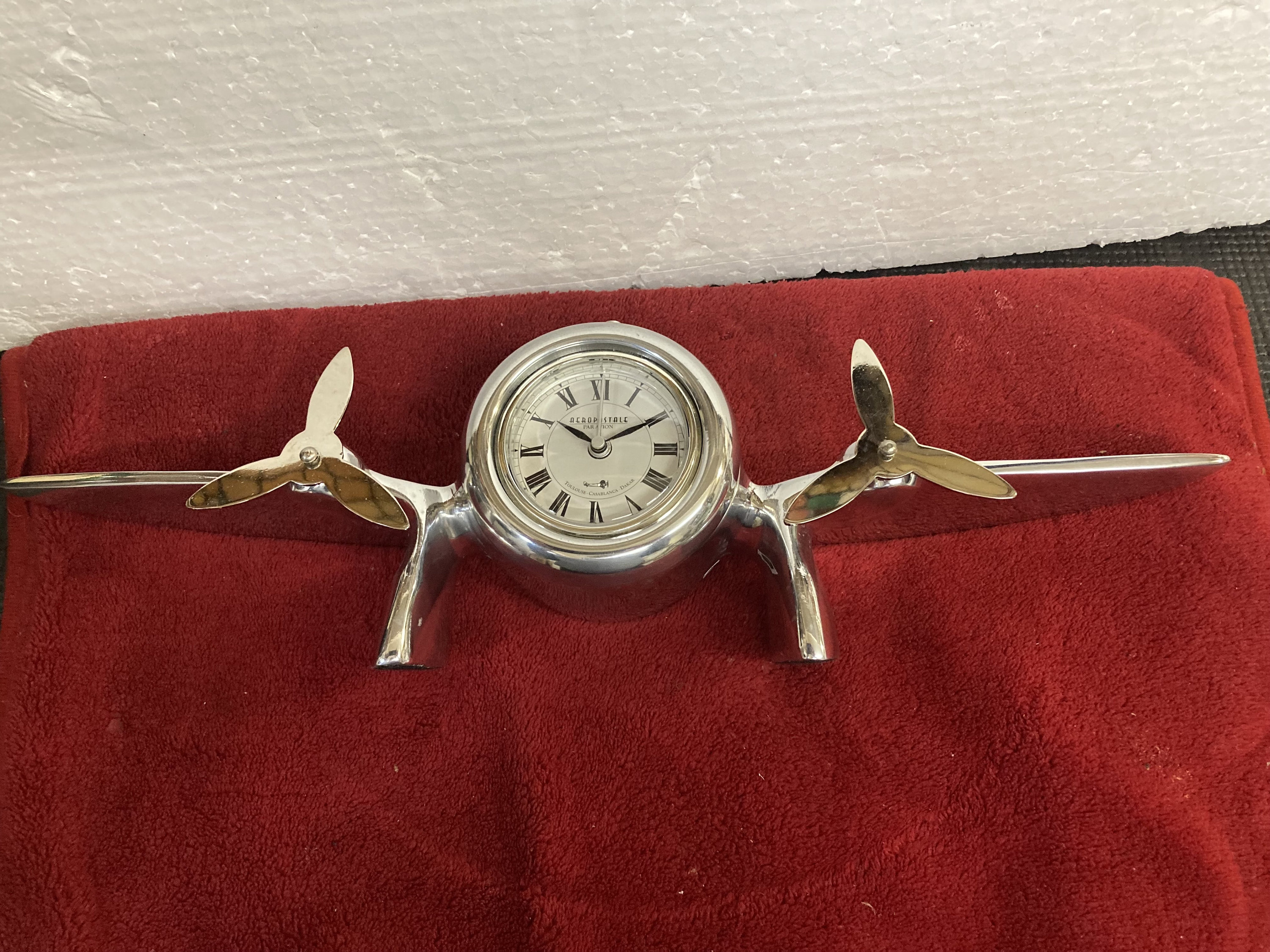 Table Clock Mantel Alarm Metal Silver with Engraving Aeroplane Decor Propeller