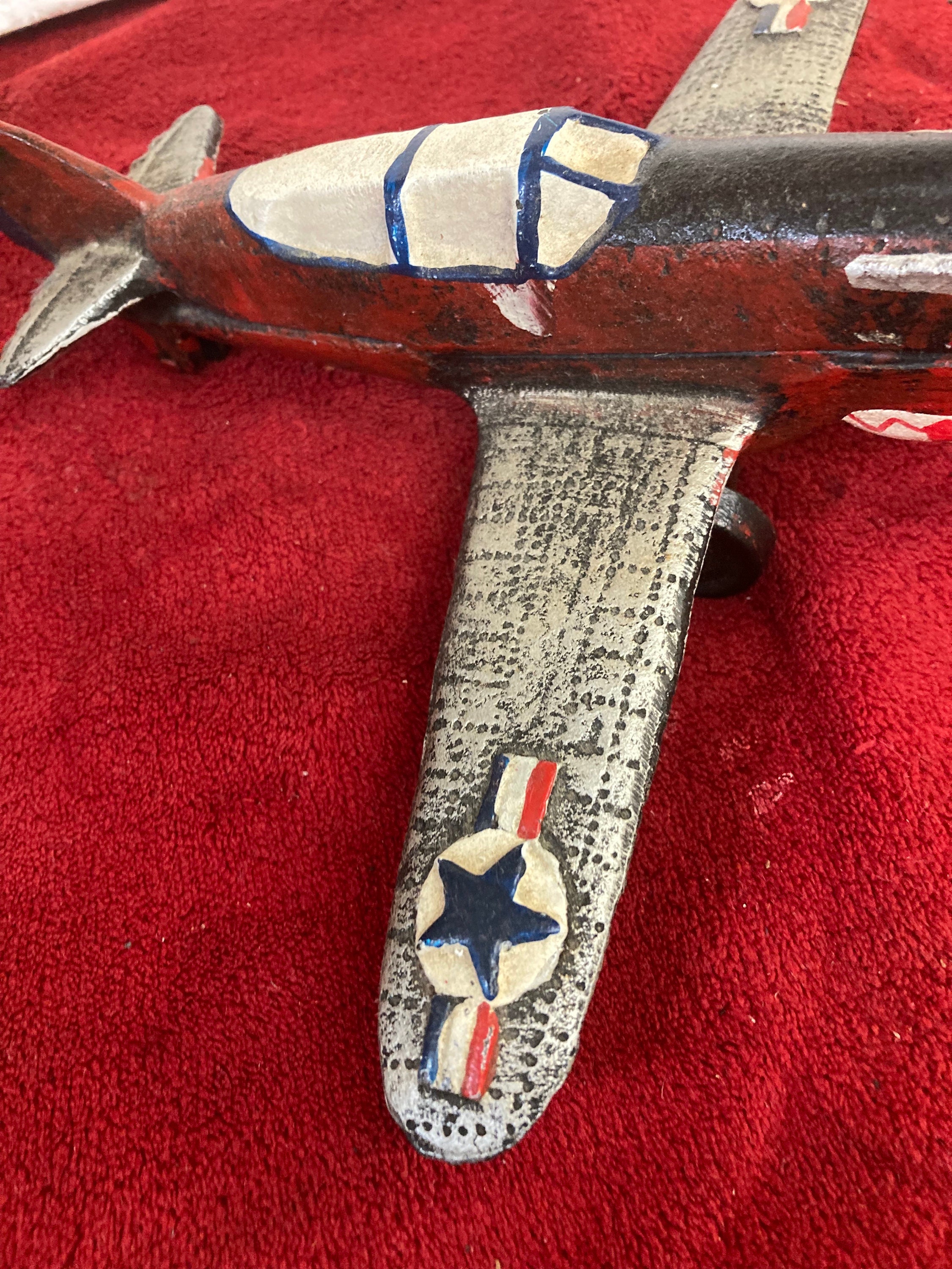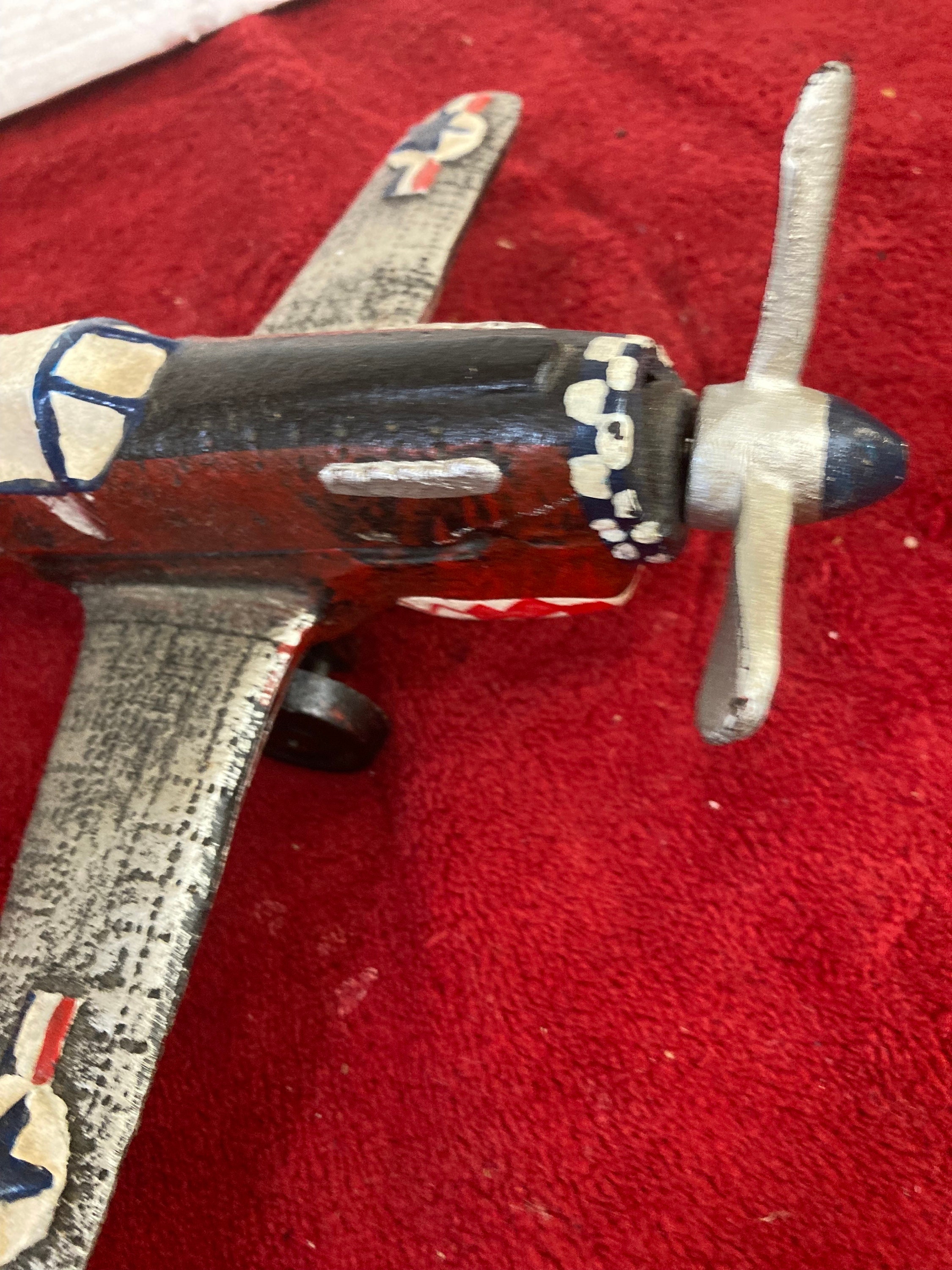 The plane looks like a P-40. See photos. Cool piece. More crude weathered type.