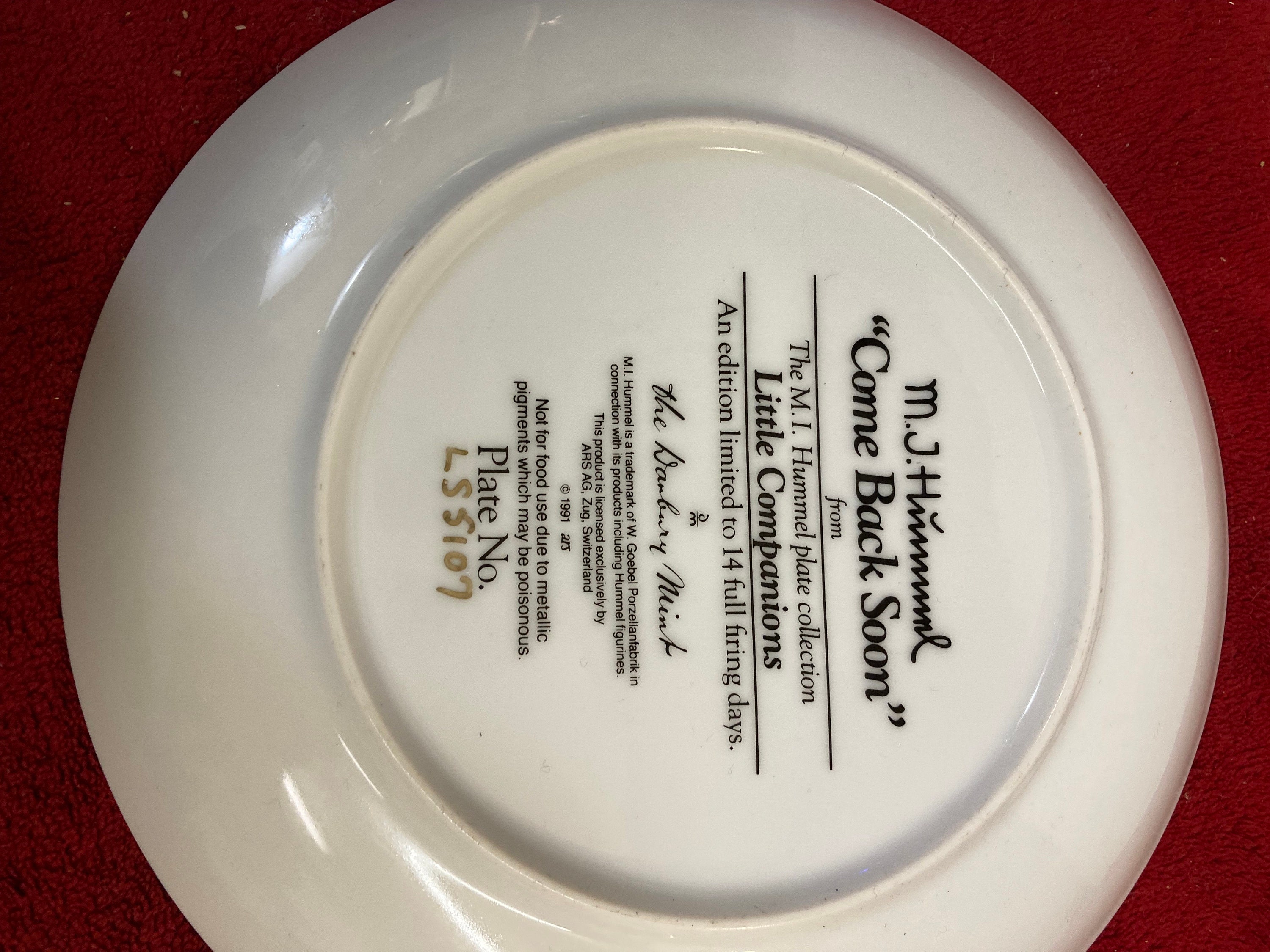 The Danbury Mint M I Hummel Little Companions Series is a discontinued pattern of plates that were made between 1989 and 1990.