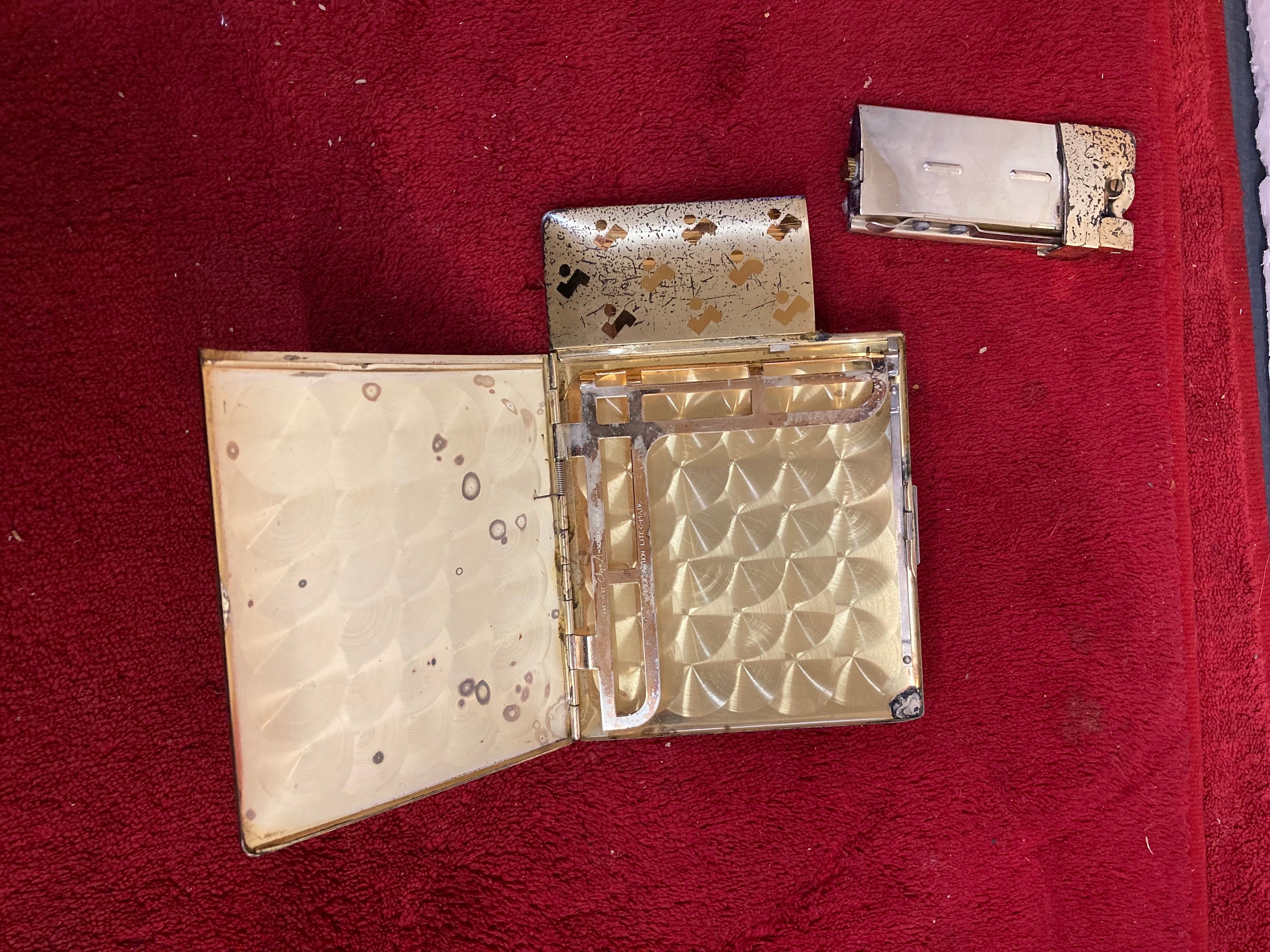 This vintage Elgin American Magic Action Lite-O-Matic brass cigarette case and lighter is a rare find for any collector of tobacciana.