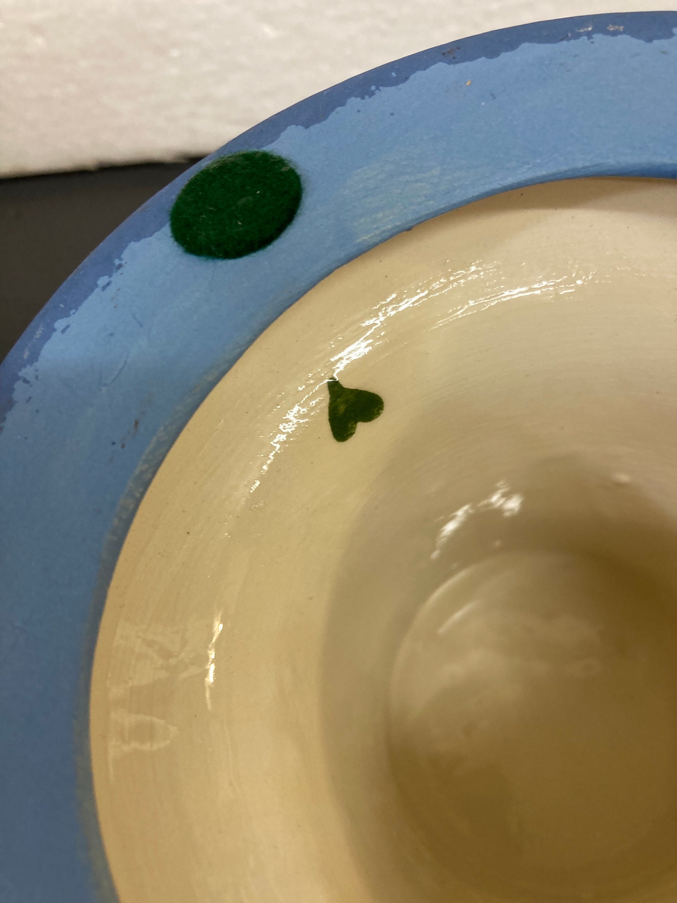 Other designs show influences of her years in France and Italy; studying painting in Provence, working with textiles at the Paris American Academy, and exploring the use of textures combined with paint in Florence. Her talent has led to the creation of an enchanting collection of bowls, platters, vases, serving dishes, pots and planters in a variety of shapes and sizes.
