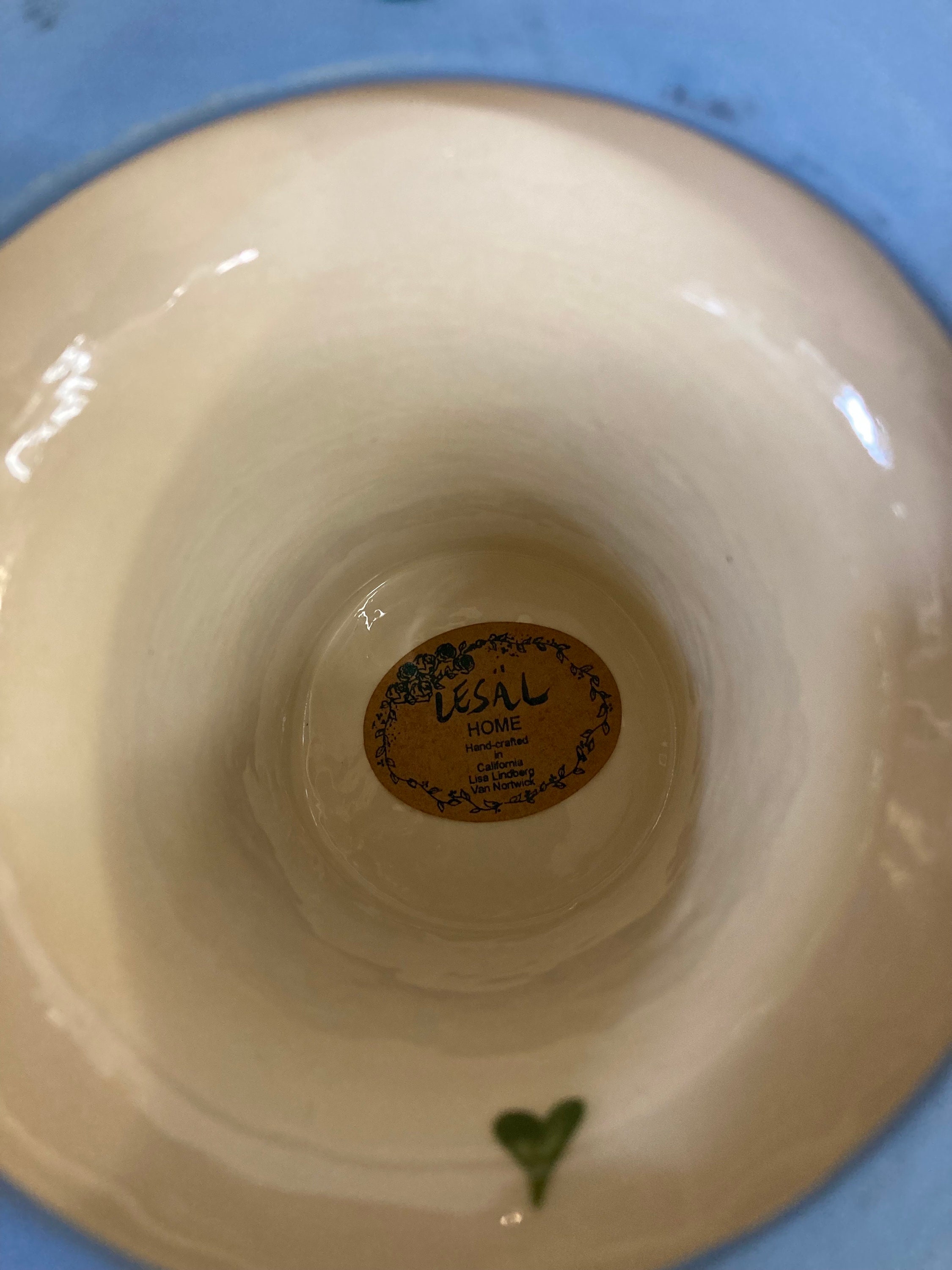Fashioned from the highest quality of white or terra cotta earthenware, each exquisite hand-painted item is either hand-cast using many original forms or hand-thrown on a potter's wheel. Hand-sculpted flowers or fruit are sometimes added, resulting in a truly unique three-dimensional work of art. And every piece is signed with the identifying "Lesal" name, assuring it is one-of-a-kind.