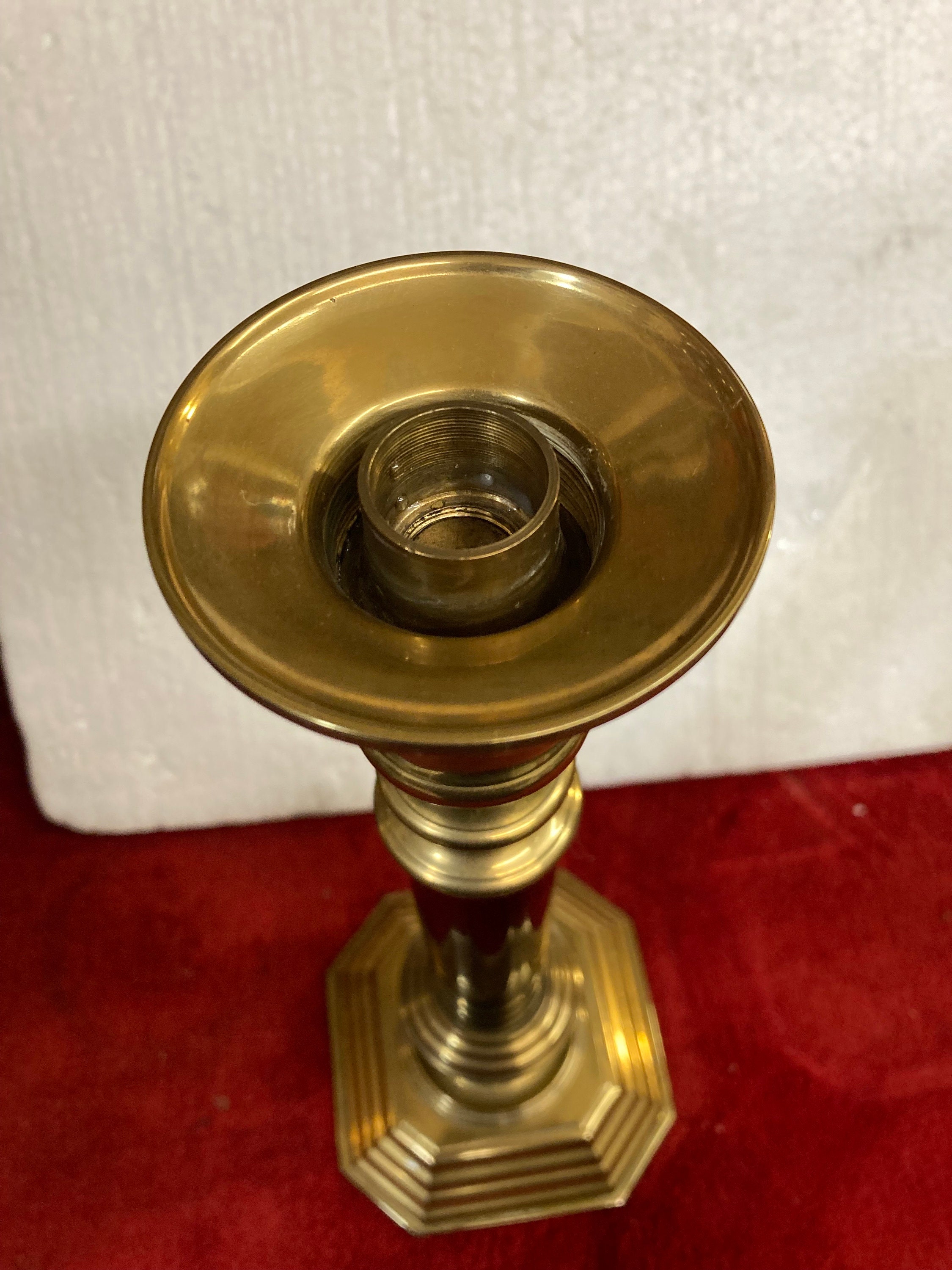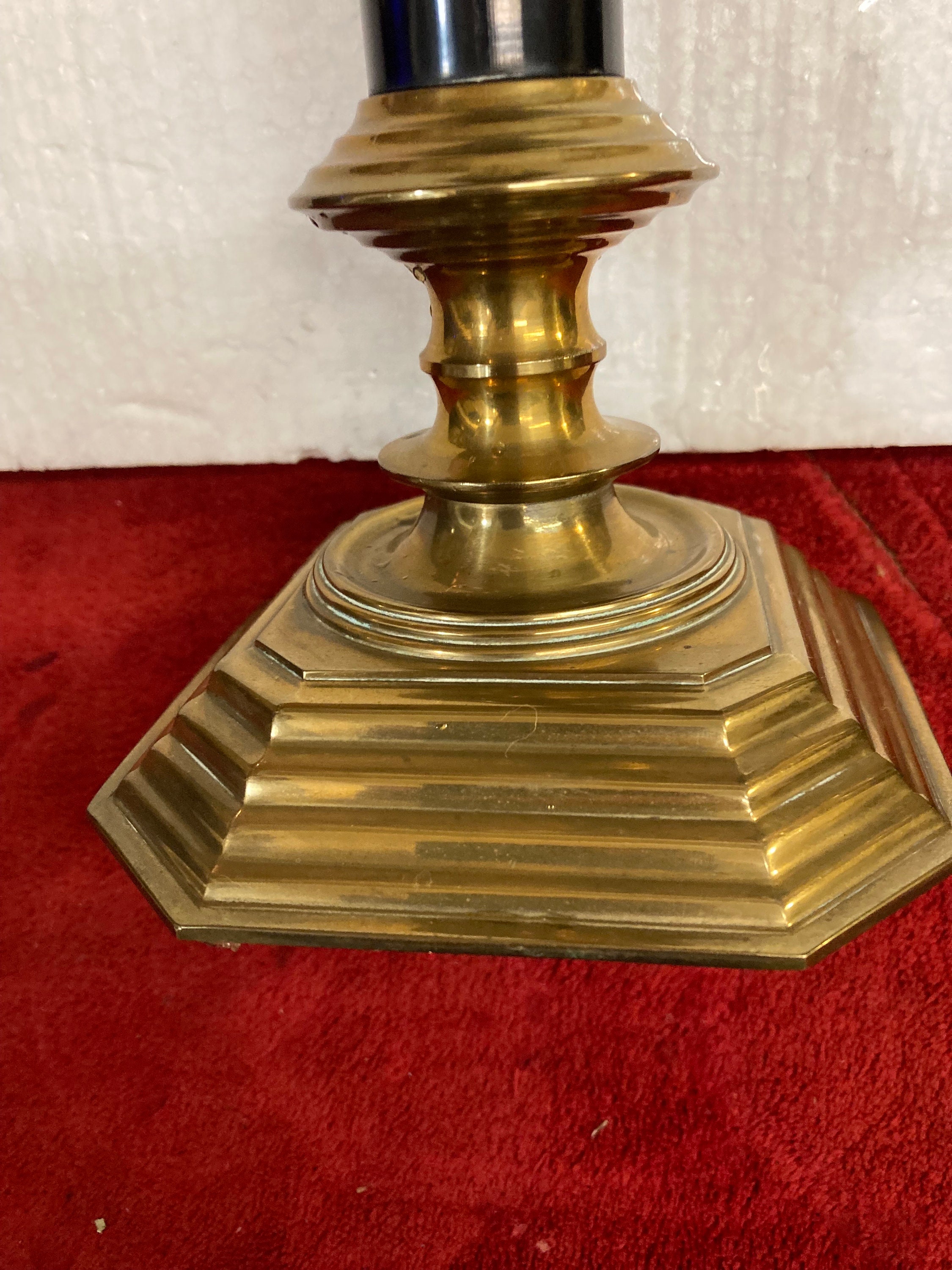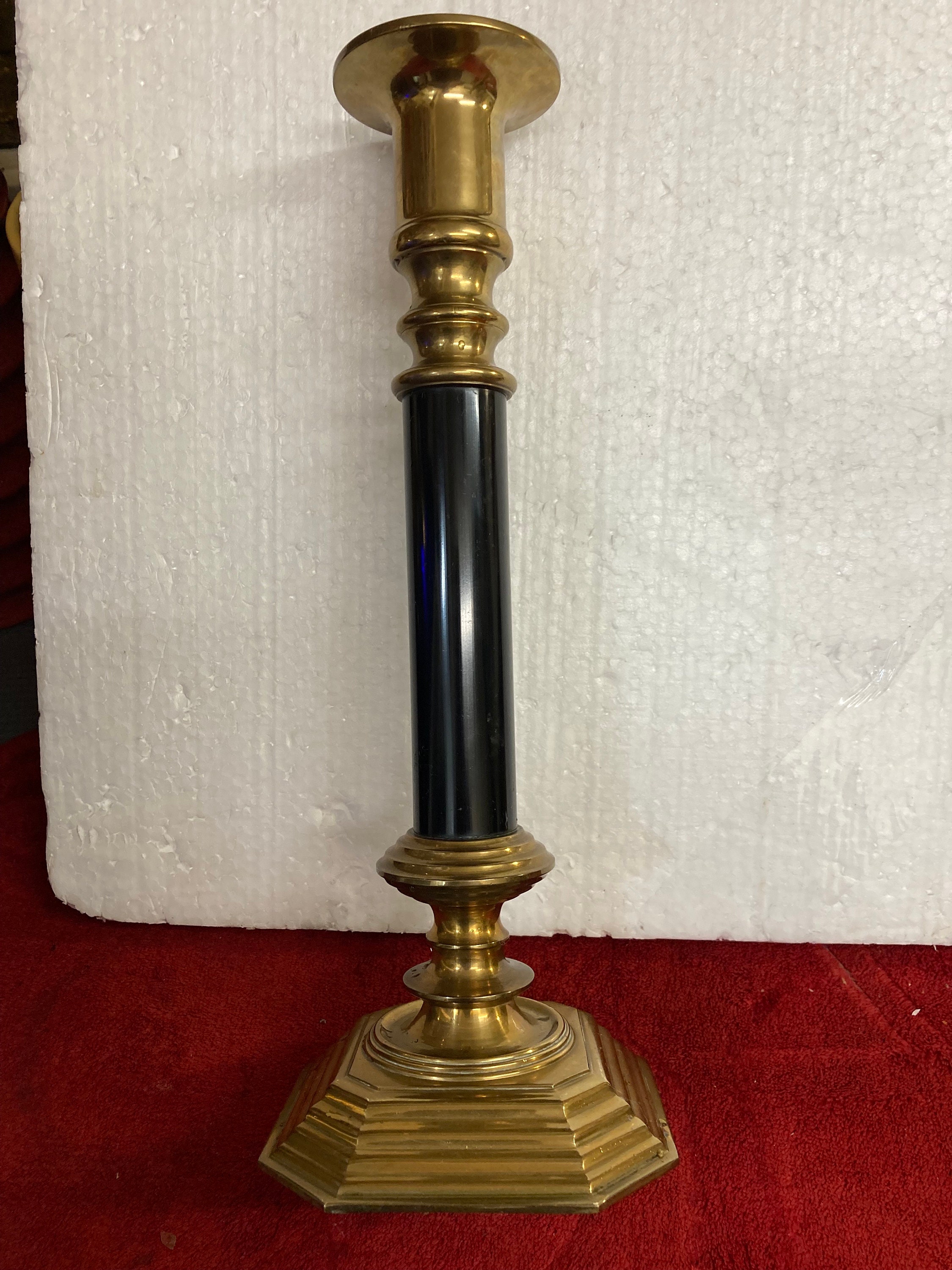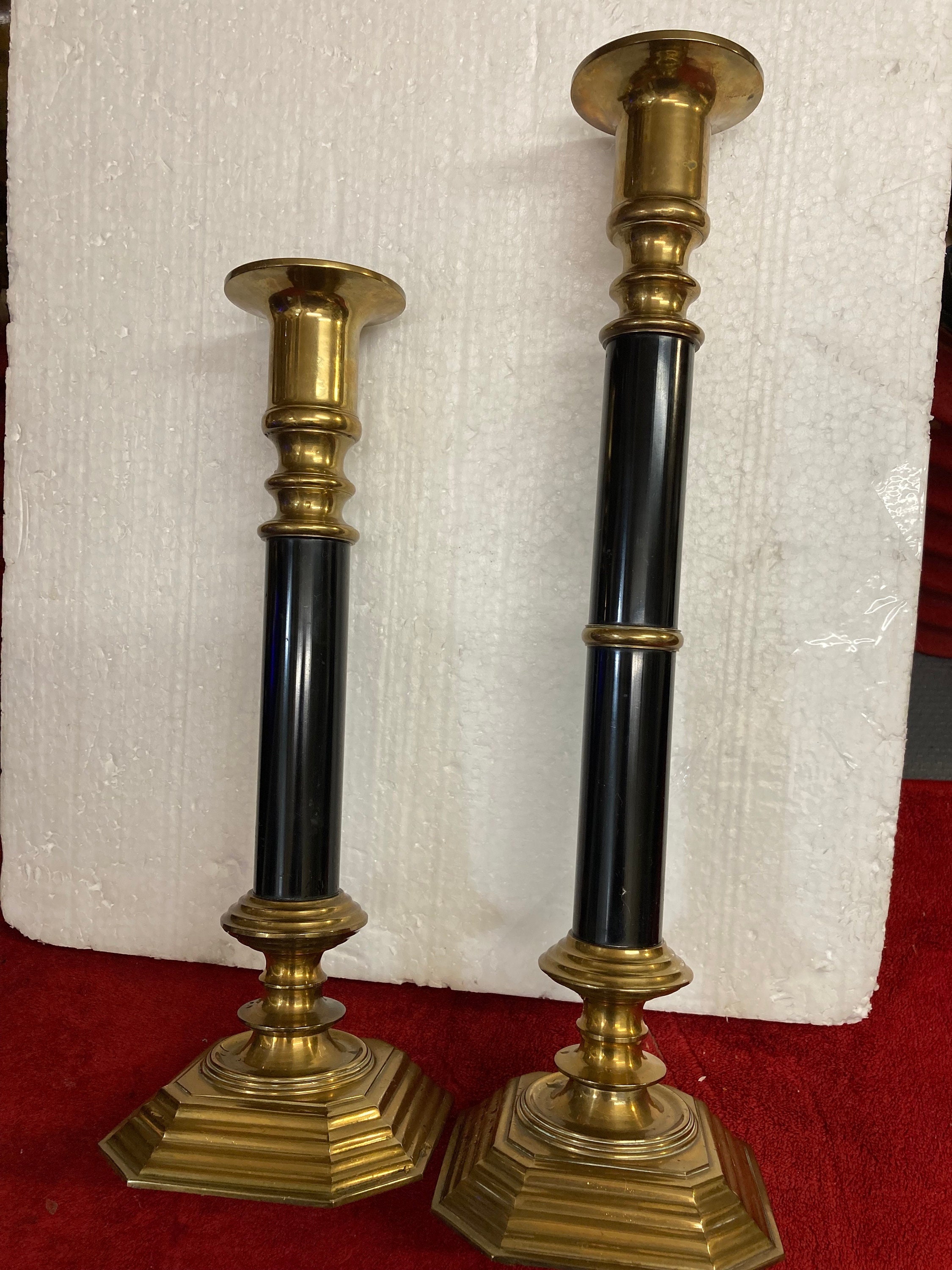 Set of 2 Brass and Black Vintage Column Candlesticks