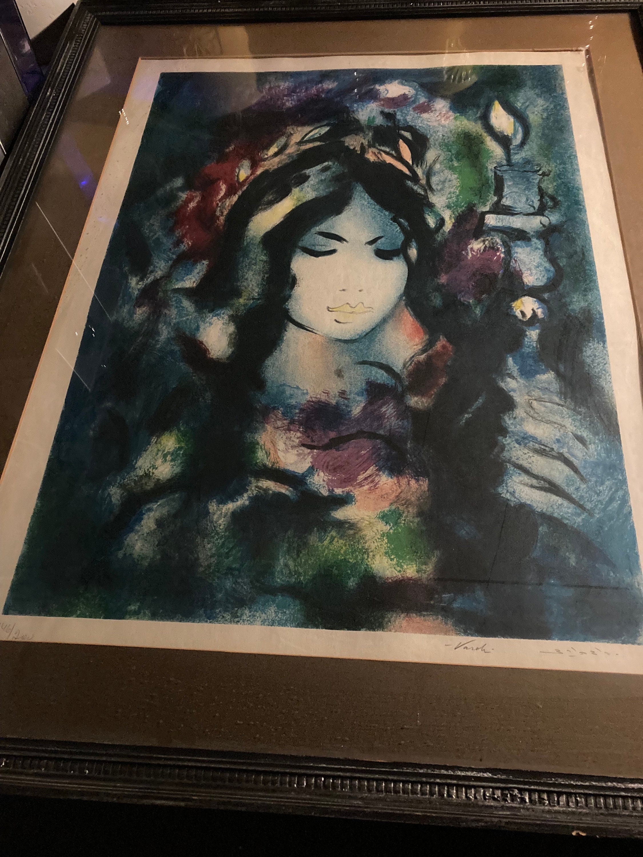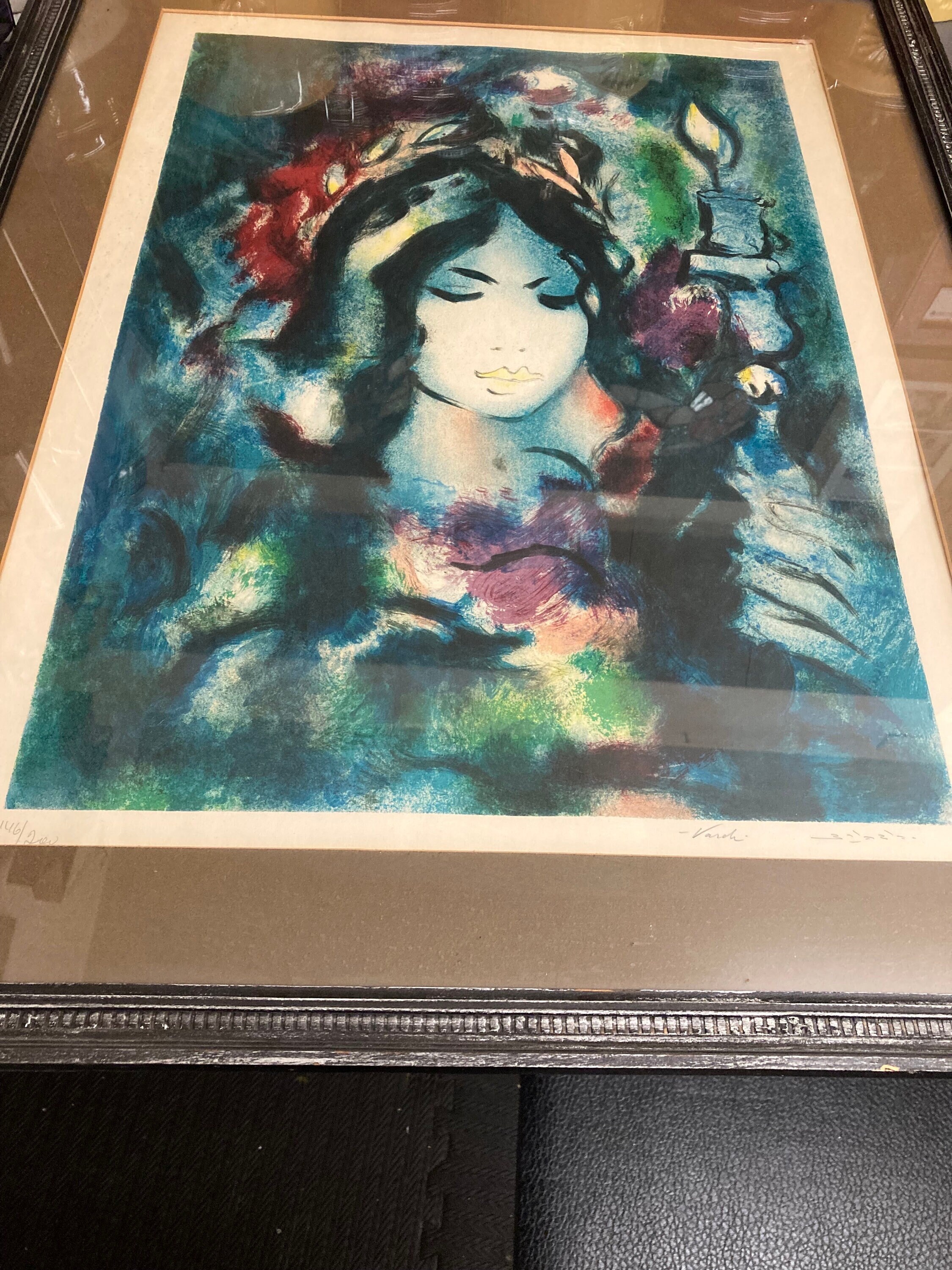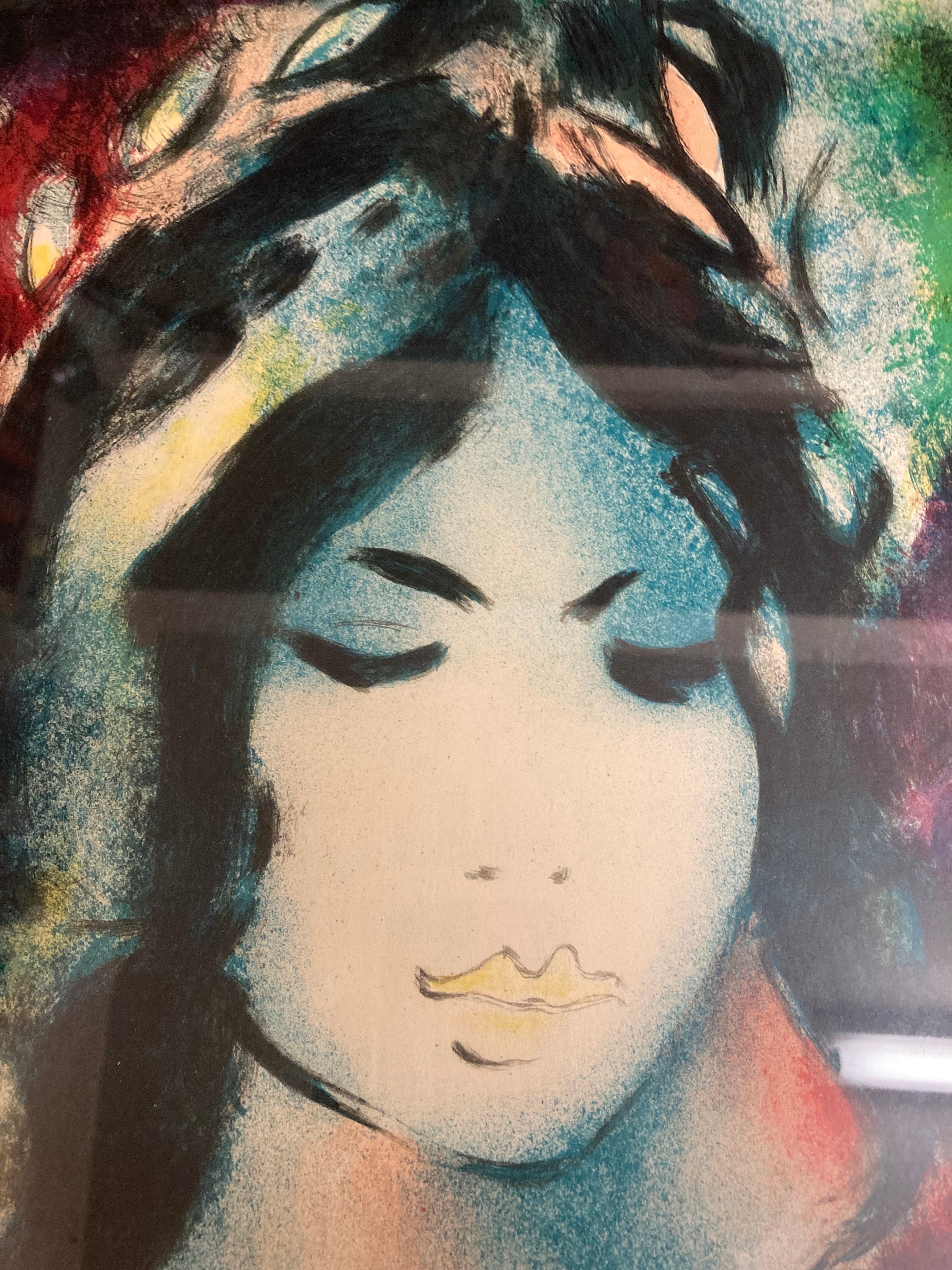 Yehuda Vardi Lithograph Original Expressionist Portrait of a Girl holding Shabbat Candle( Rare)