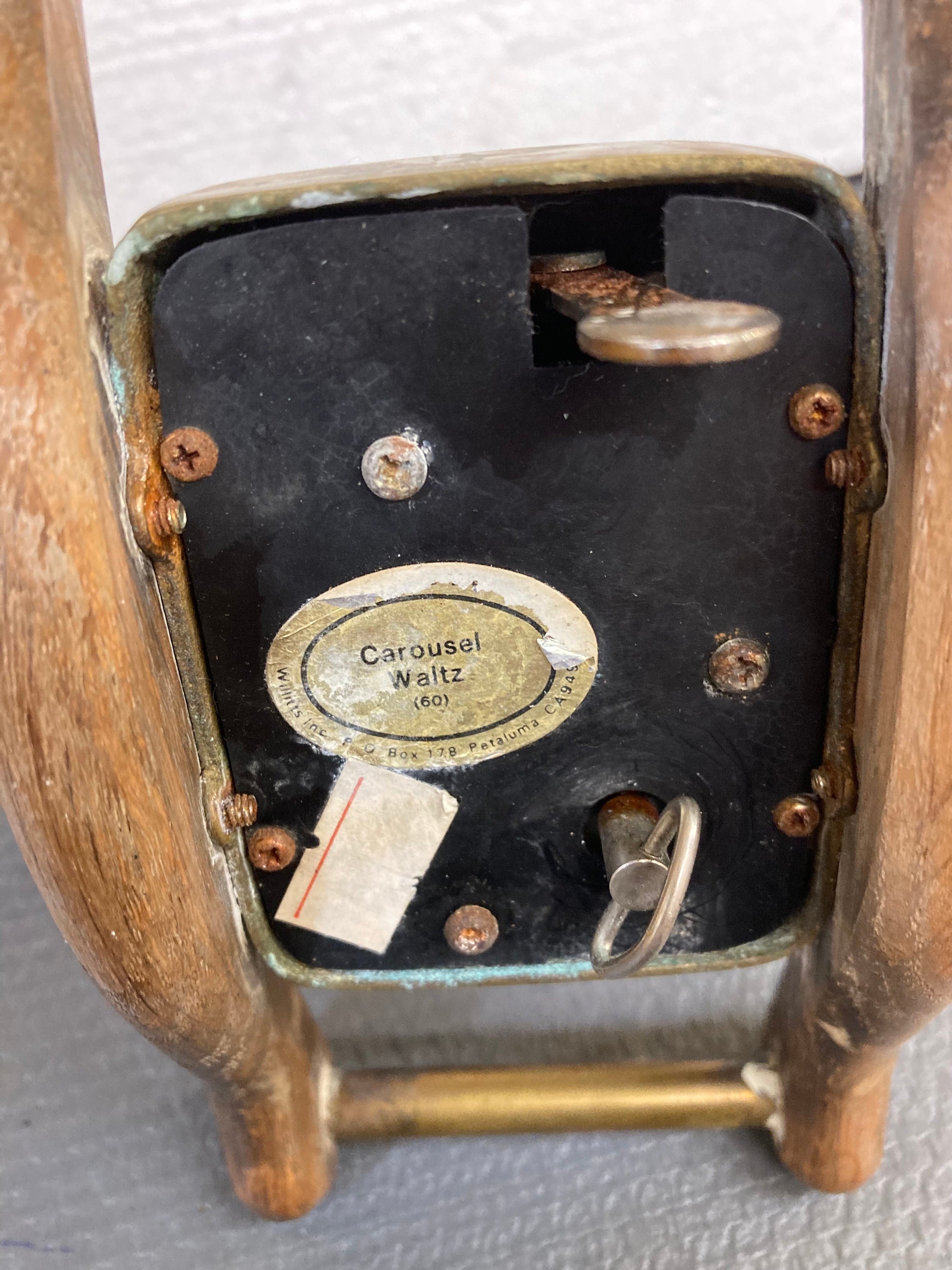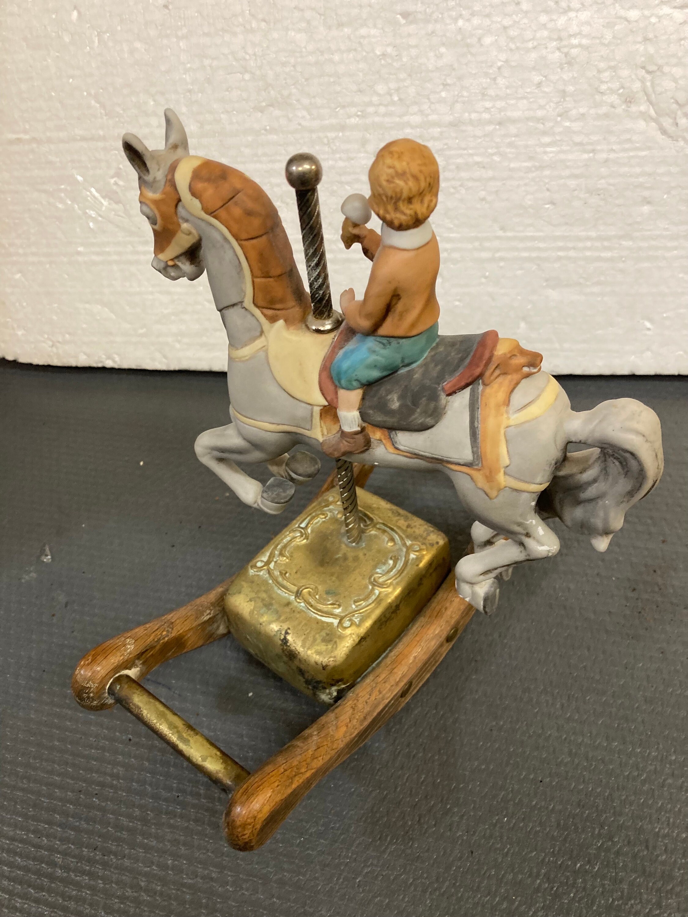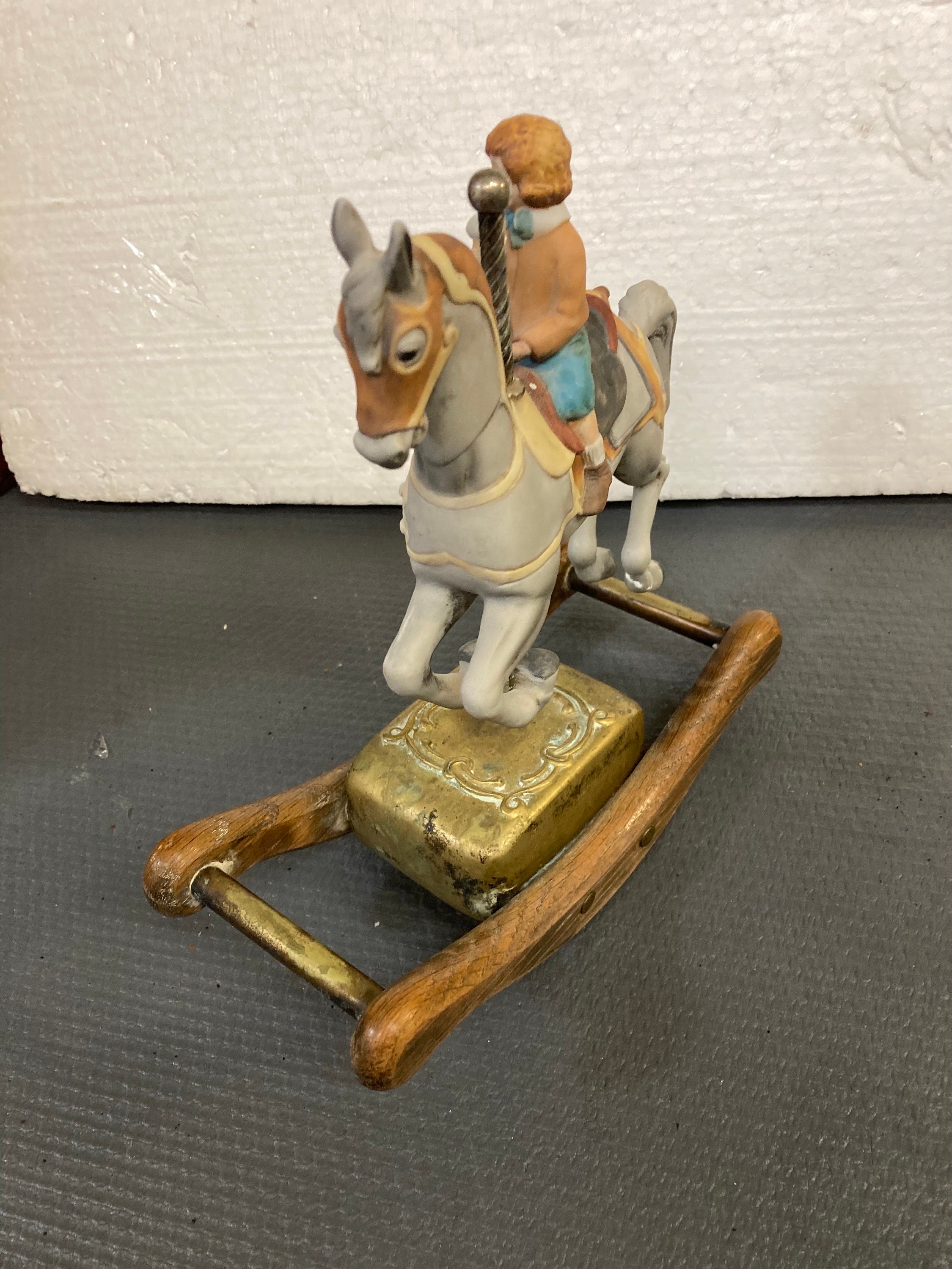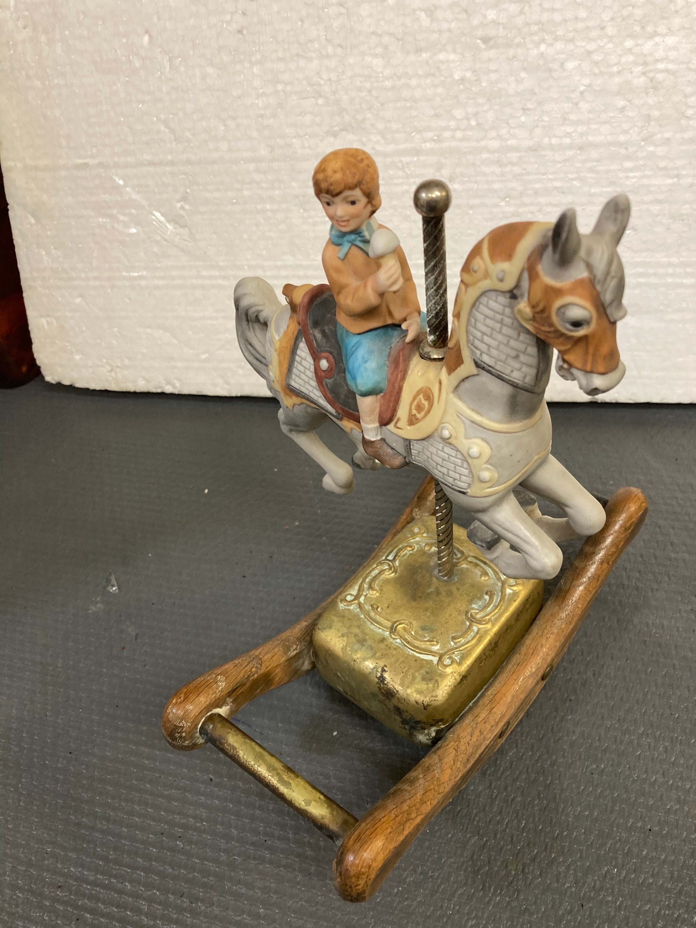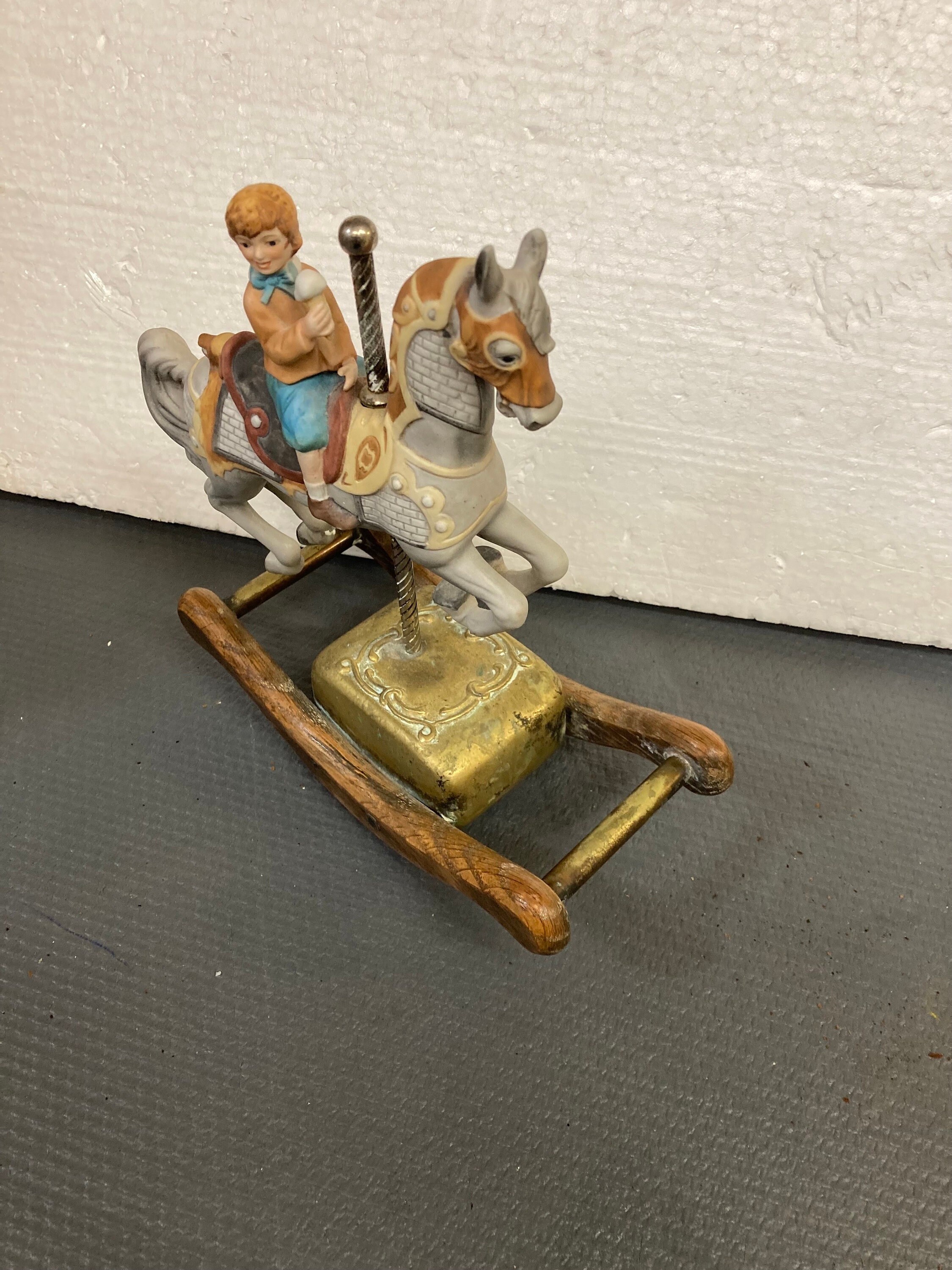 Vintage Willitts Melodies Rocking Ceramic Boy on Horse Music Box / Carousel Waltz8 " tall x 7 3/4" wide x 3 1/2" deepGood Vintage conditionWorks and Plays Well