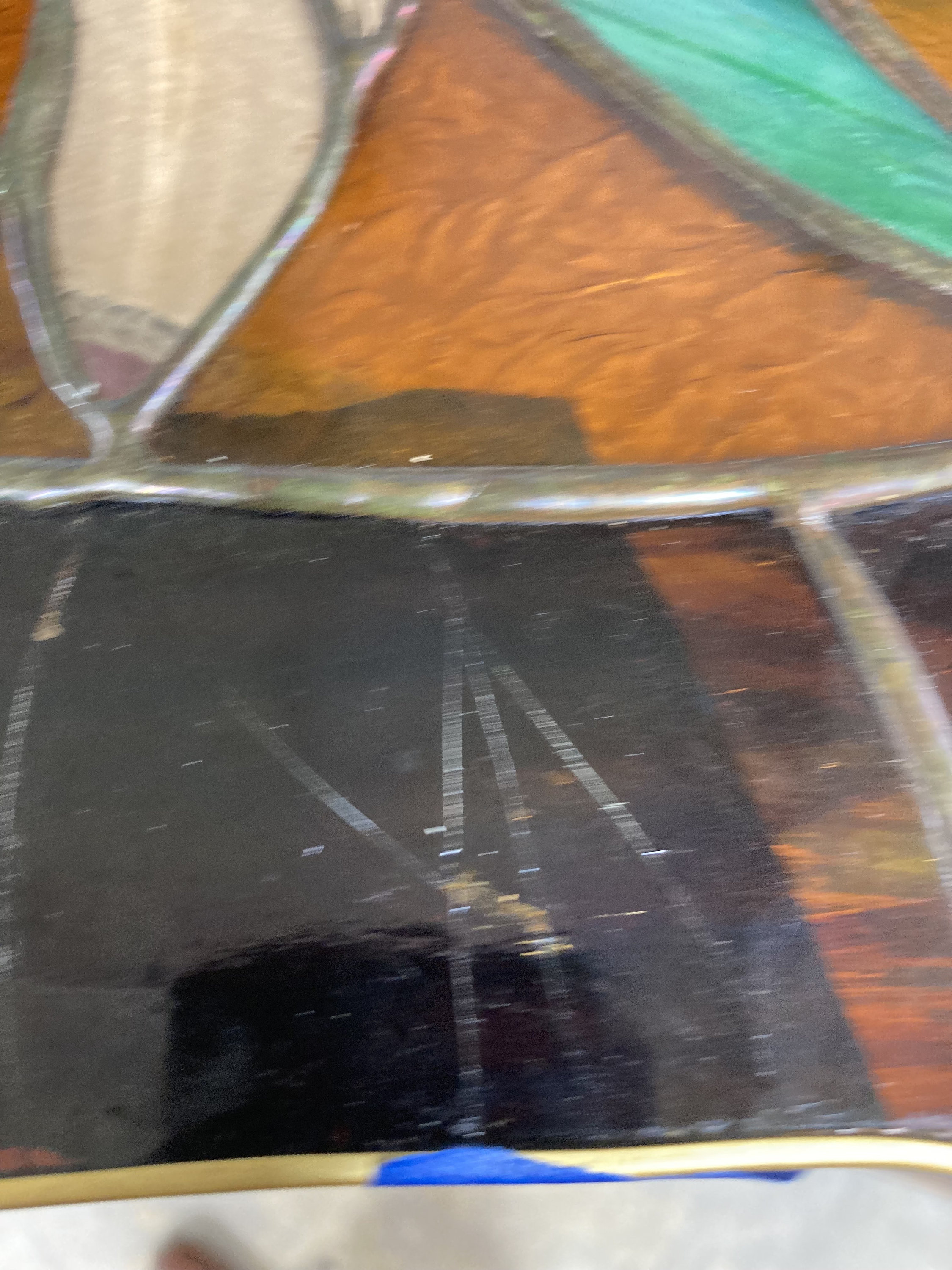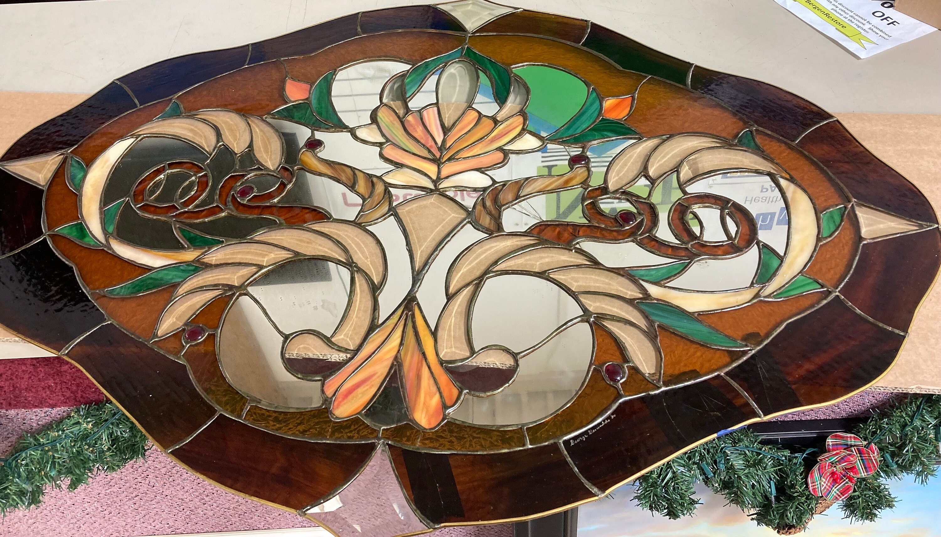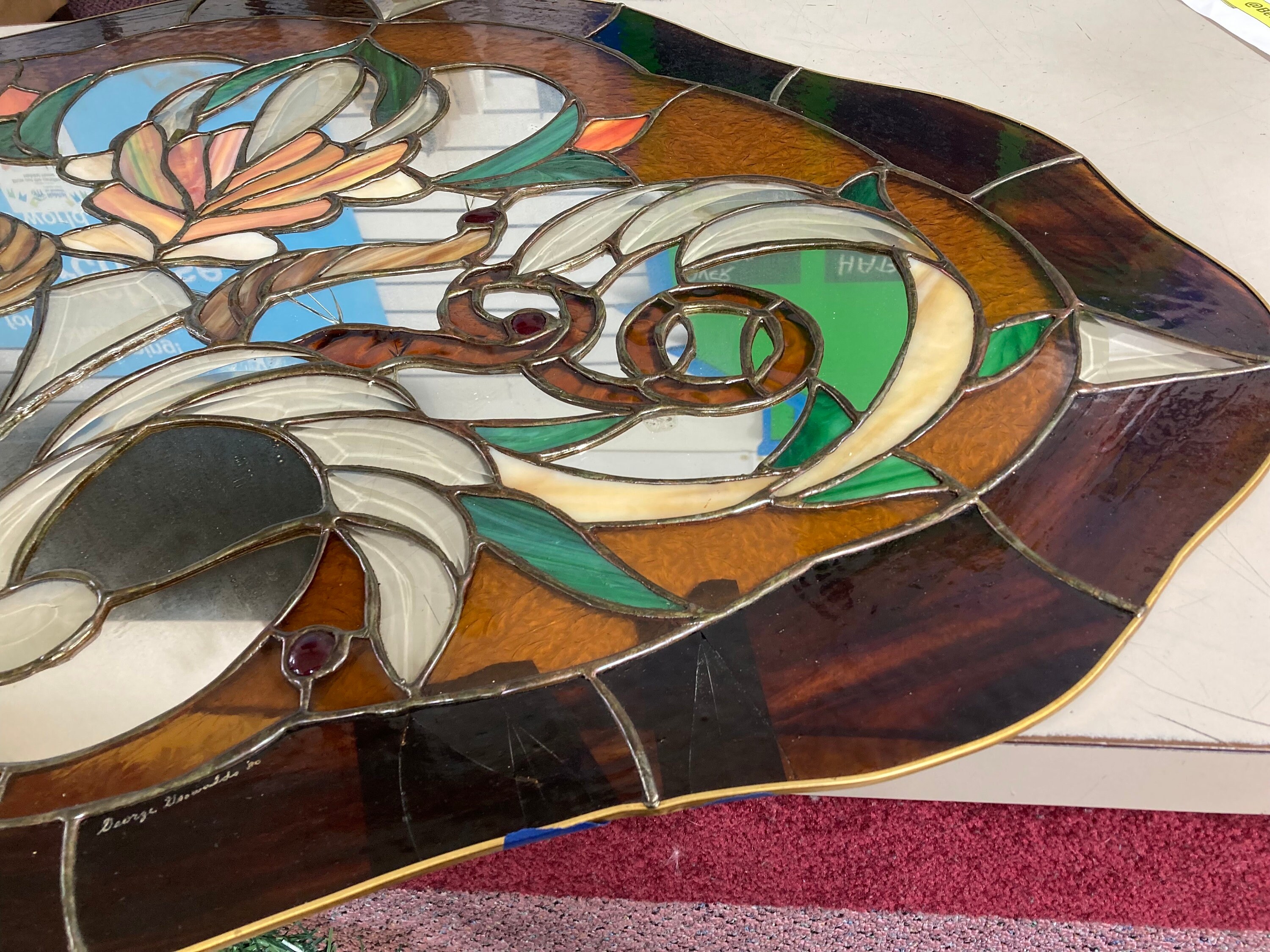 Large Antique Handmade Floral Design Oval Shape Stained Glass