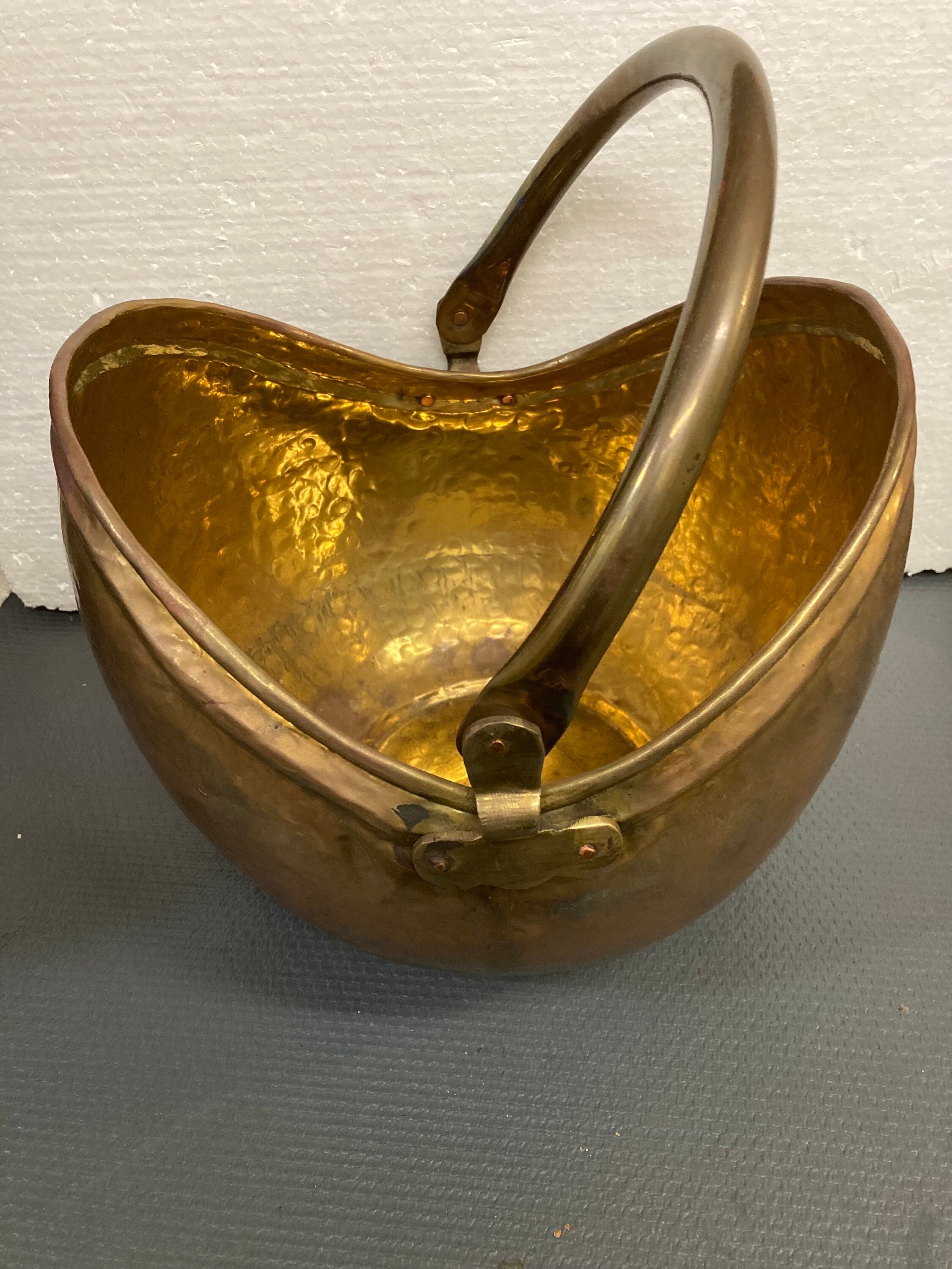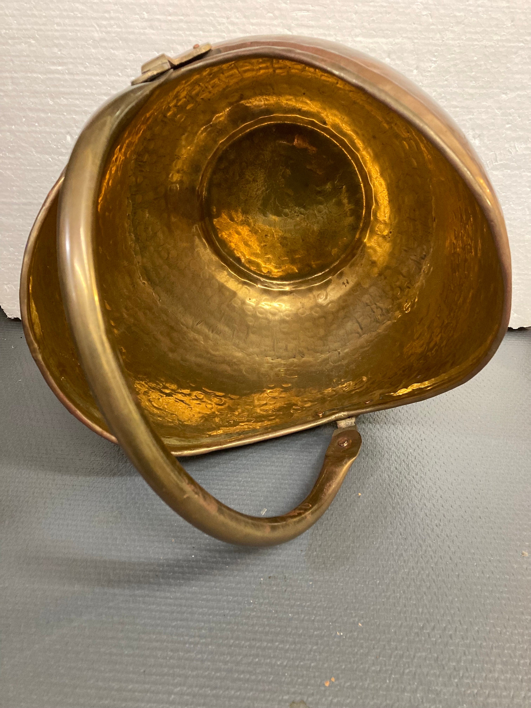 Vintage Rare Copper Brass Coal Scuttle Bucket, 12.5" Tall including Handle, 11" Widest (Including Handle),10 1/2" Deep, Weight is about 3 Lbs.