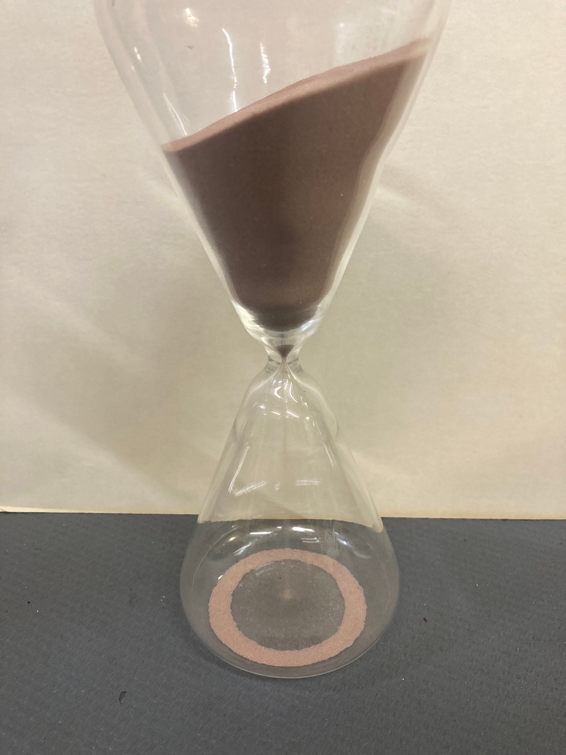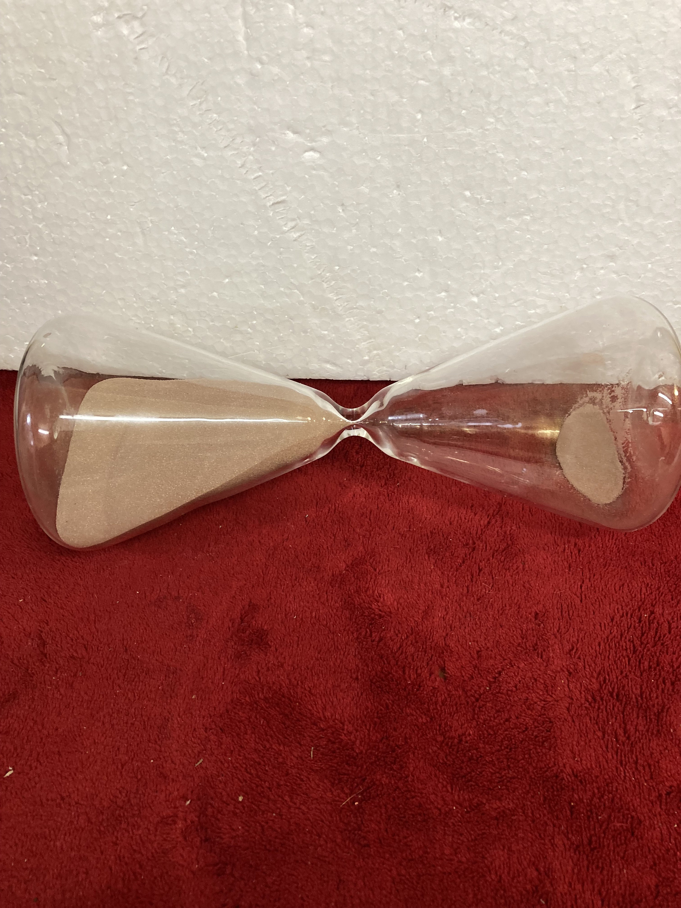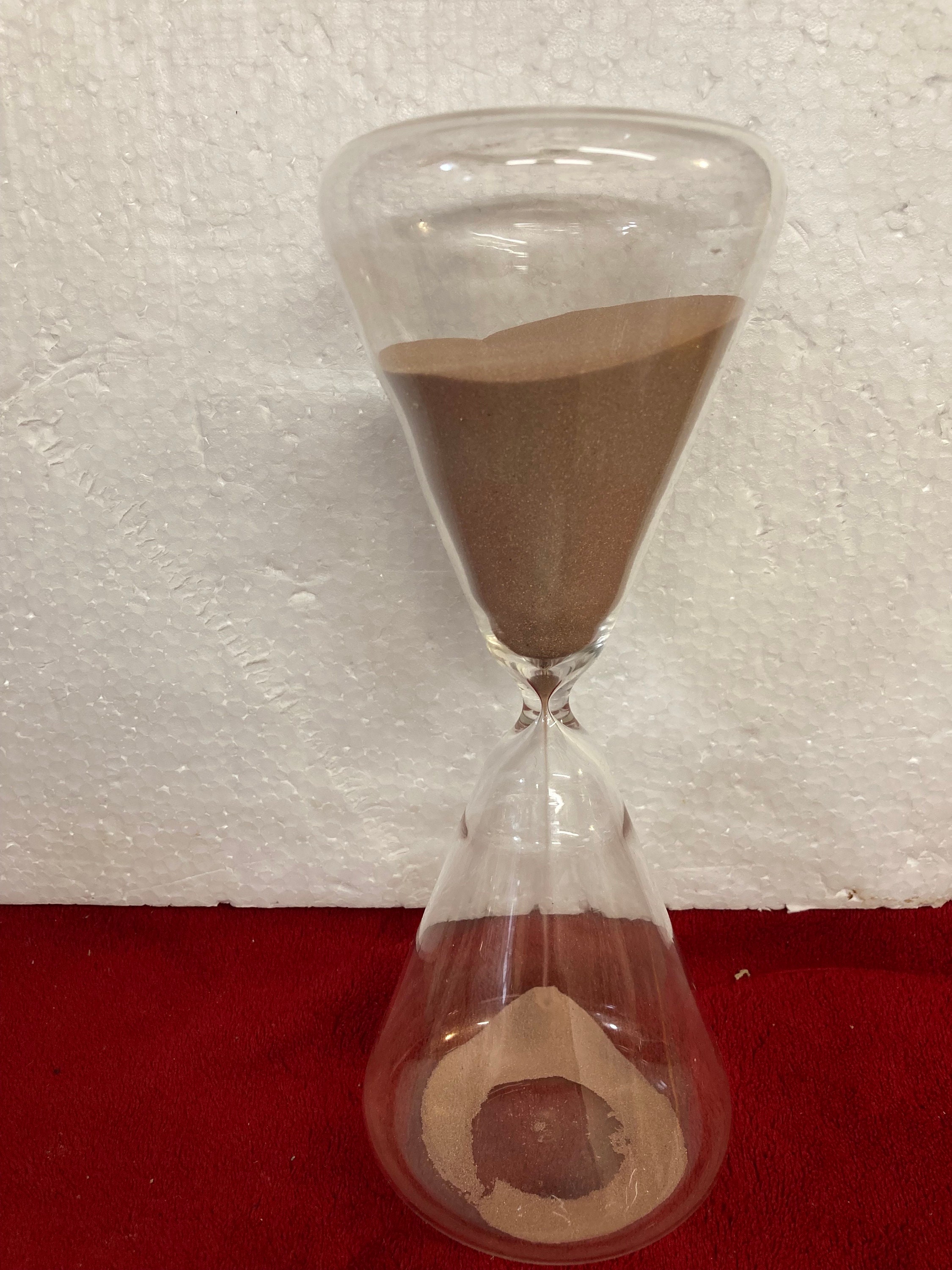 60 Minute Glass Timer with Cocoa Sand Rich, cocoa color of the sand in this one. This one is a stunner!60 minute timer9 1/4" tall x 3 1/2" wide / basePerfect like New Condition