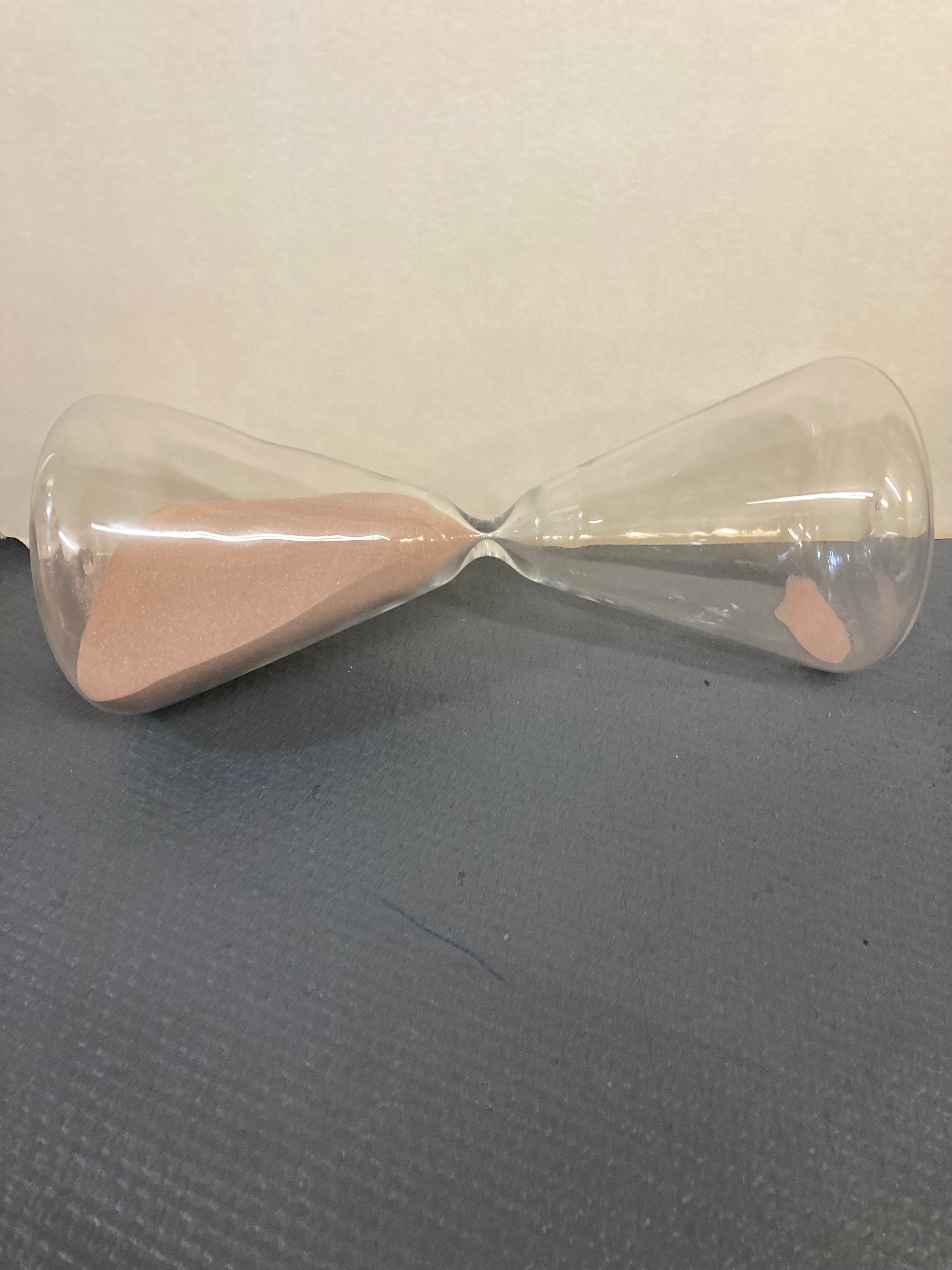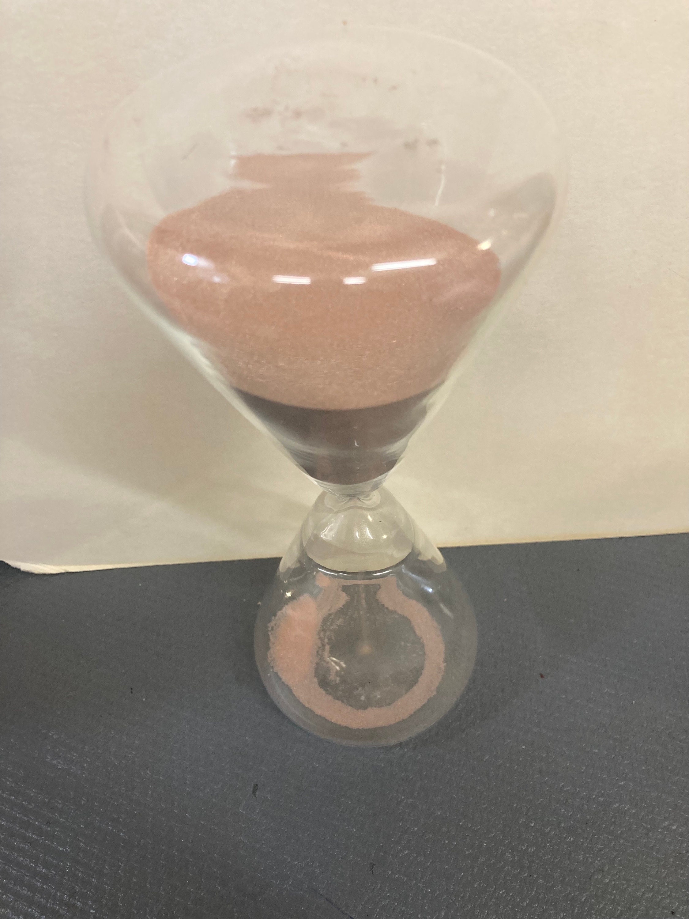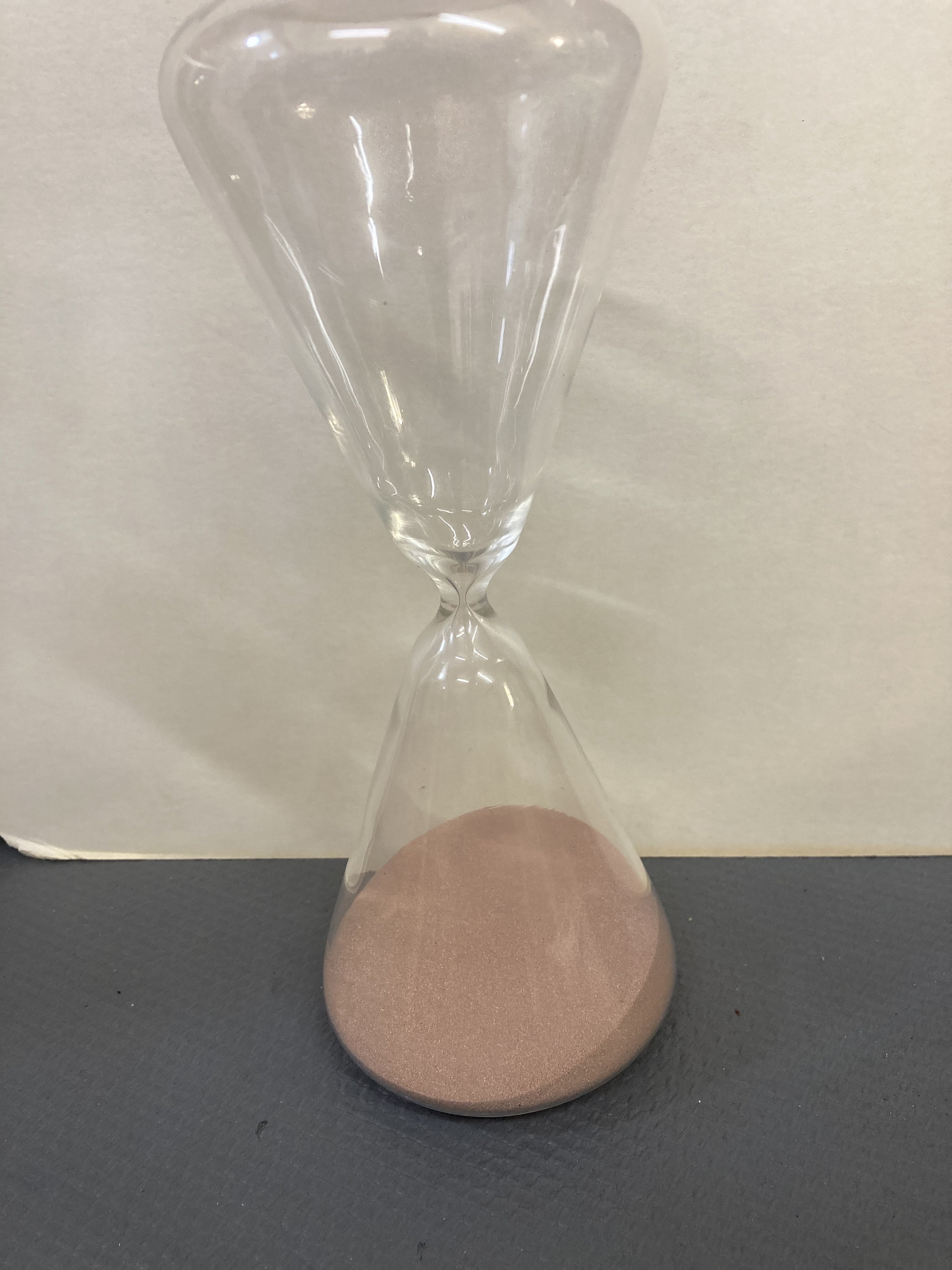 60 Minute Glass Timer with Cocoa Sand Rich, cocoa color of the sand in this one. This one is a stunner!60 minute timer9 1/4" tall x 3 1/2" wide / basePerfect like New Condition