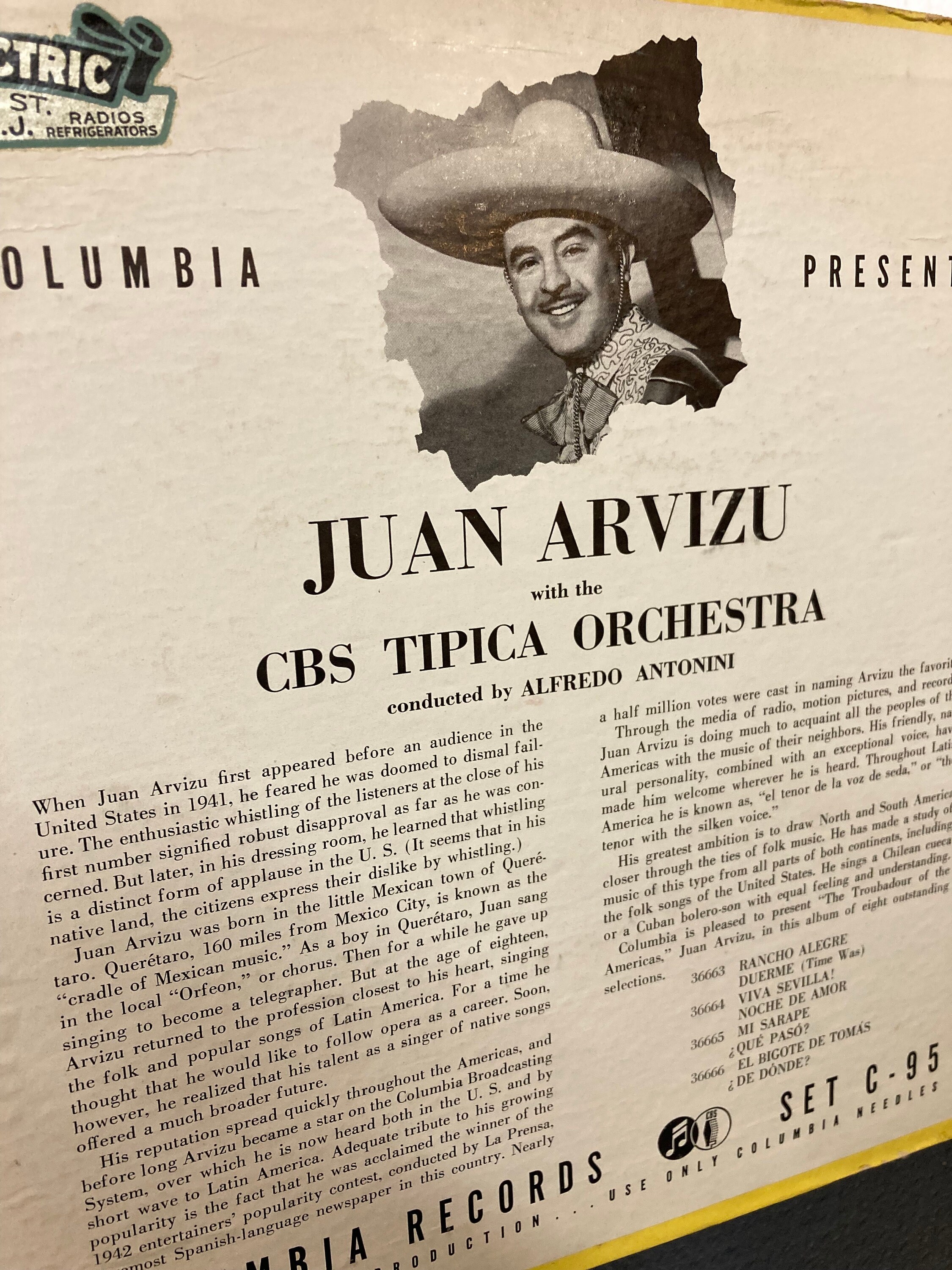 IT FEATURES JUAN ARVIZU, "TROUBADOR OF THE AMERICAS" & THE C. B. S. TIPICA ORCHESTRA ON ALL SIDES.