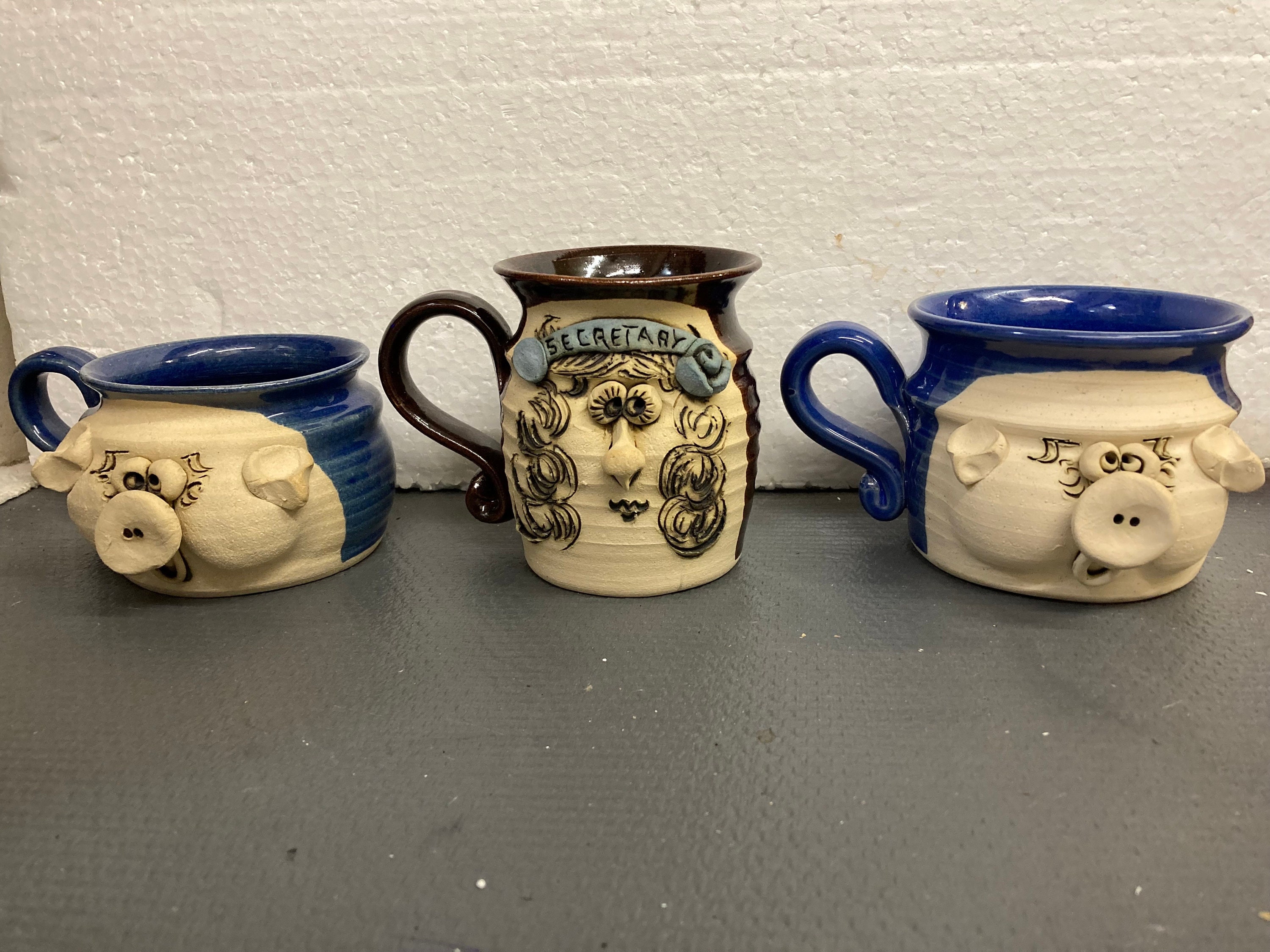 Two Boss & A Secretary . Vintage Signed 3 D Teigland Bradford Pottery
