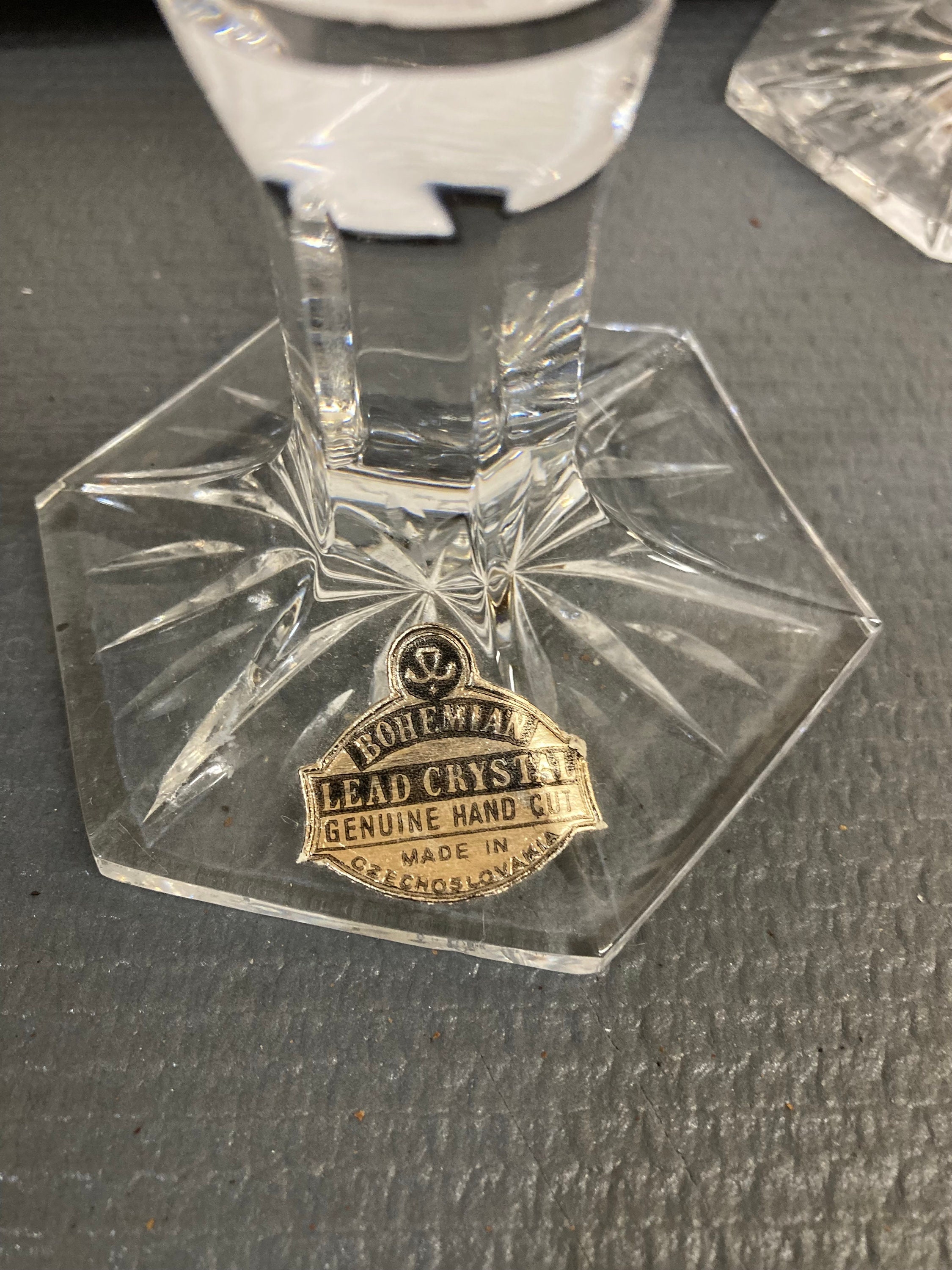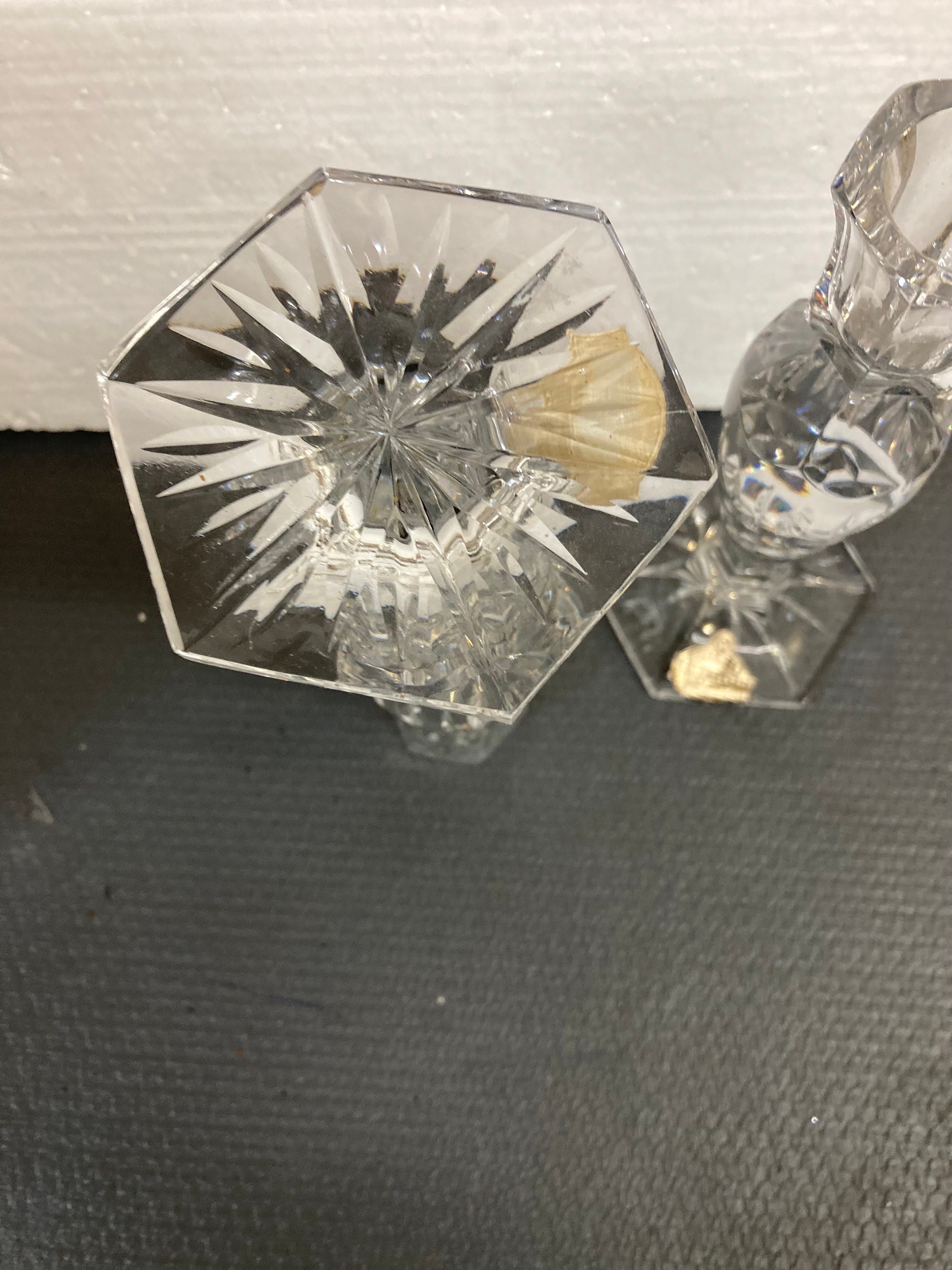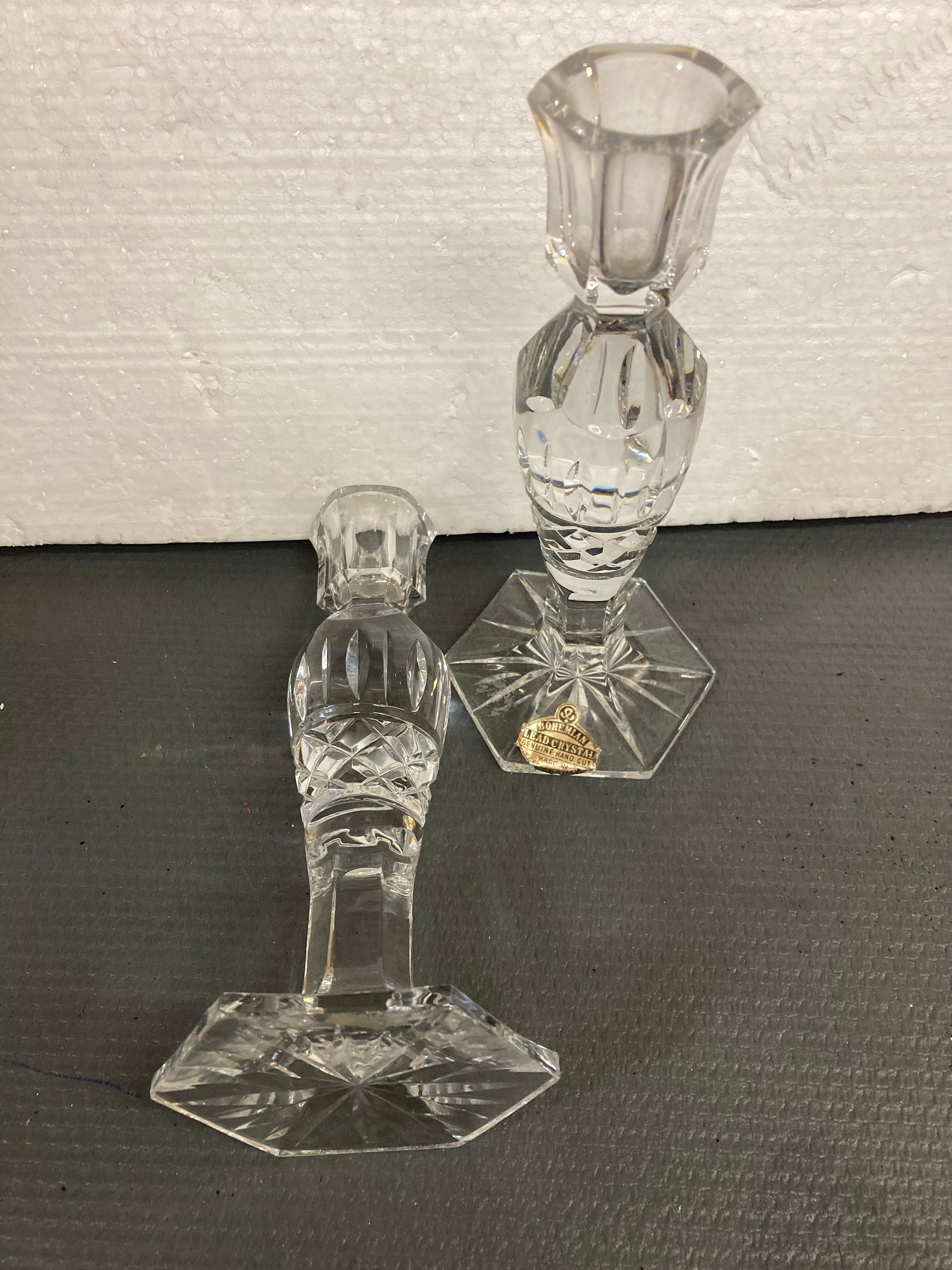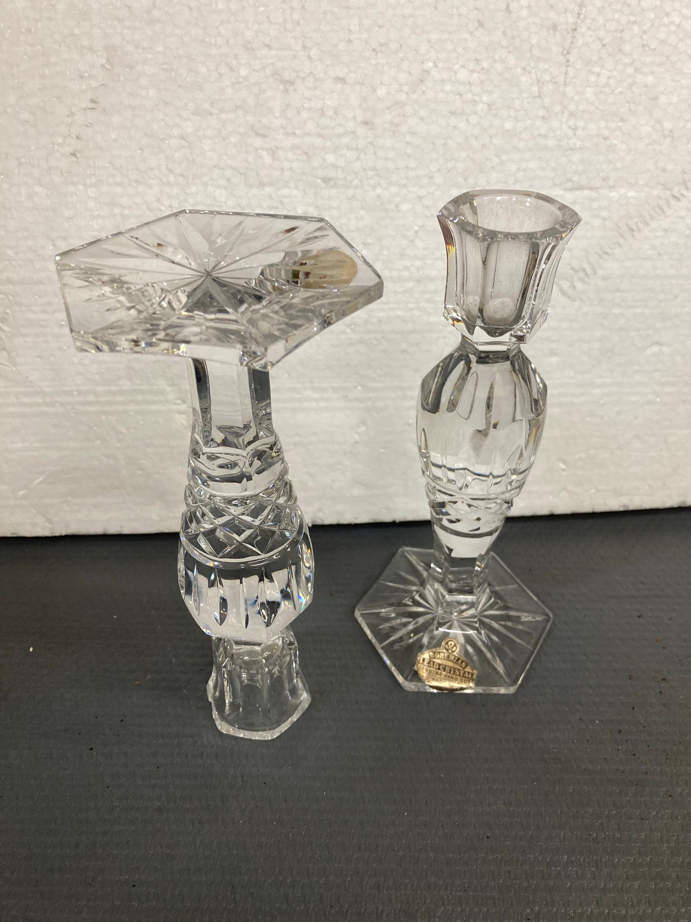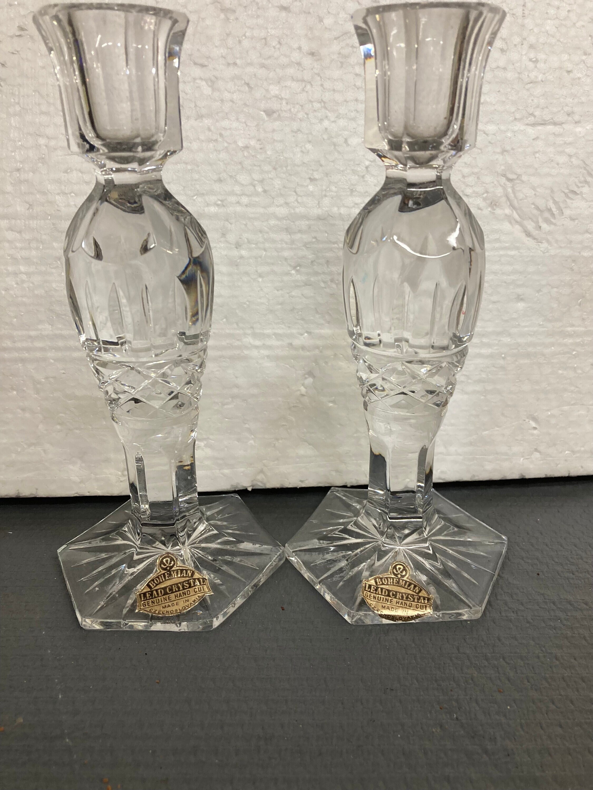 From Czechoslovakia, Vintage Bohemian Lead Crystal Genuine Hand Cut Candle Stick Holders,8 " tall x 3.5" wide x 3 deepExcellent ConditionNever UsedNo damages