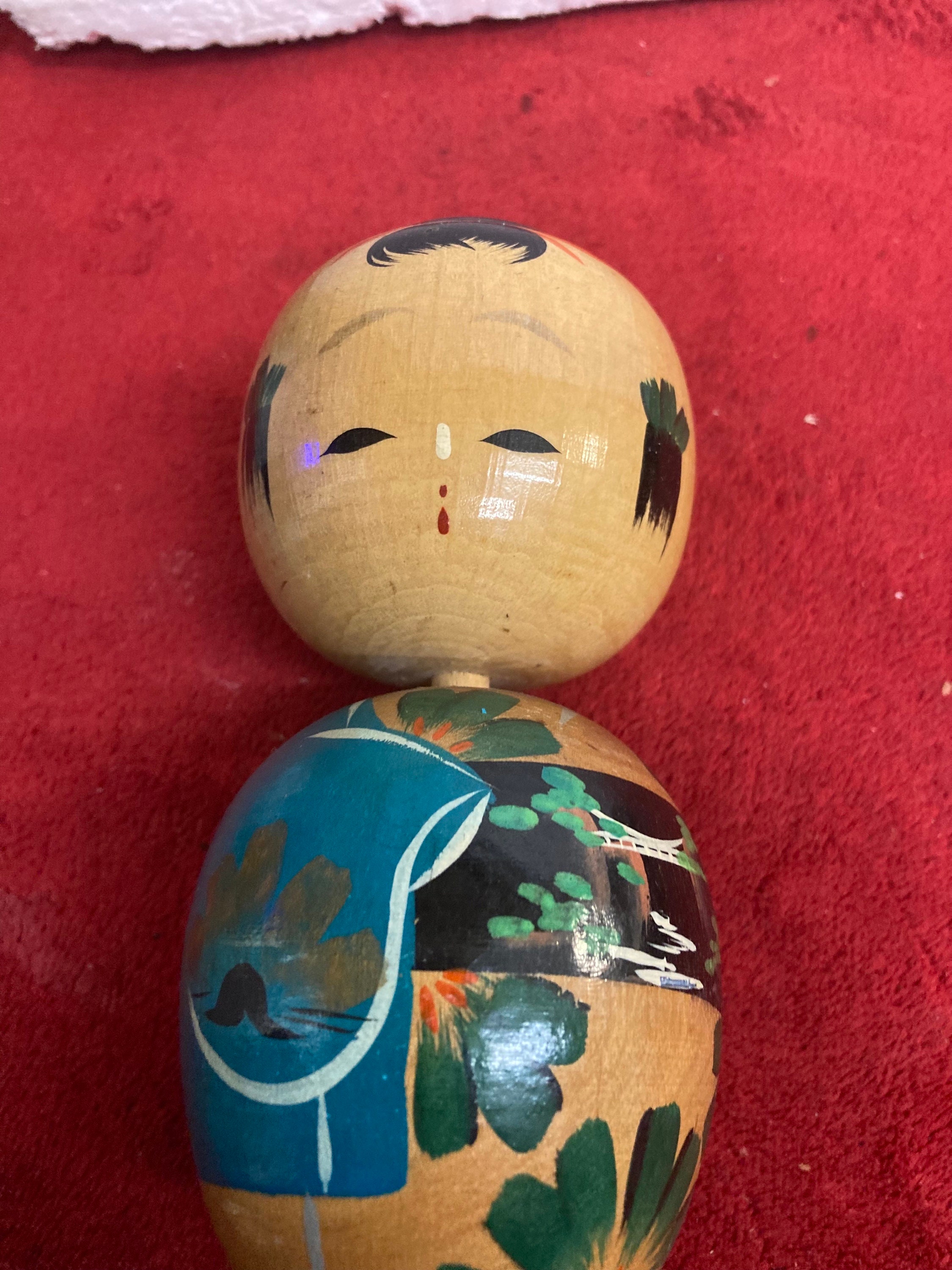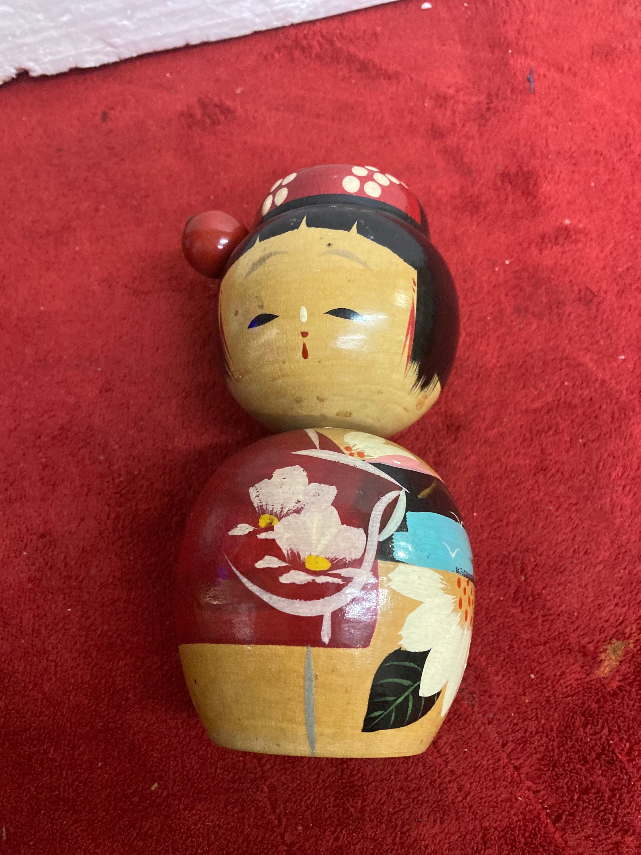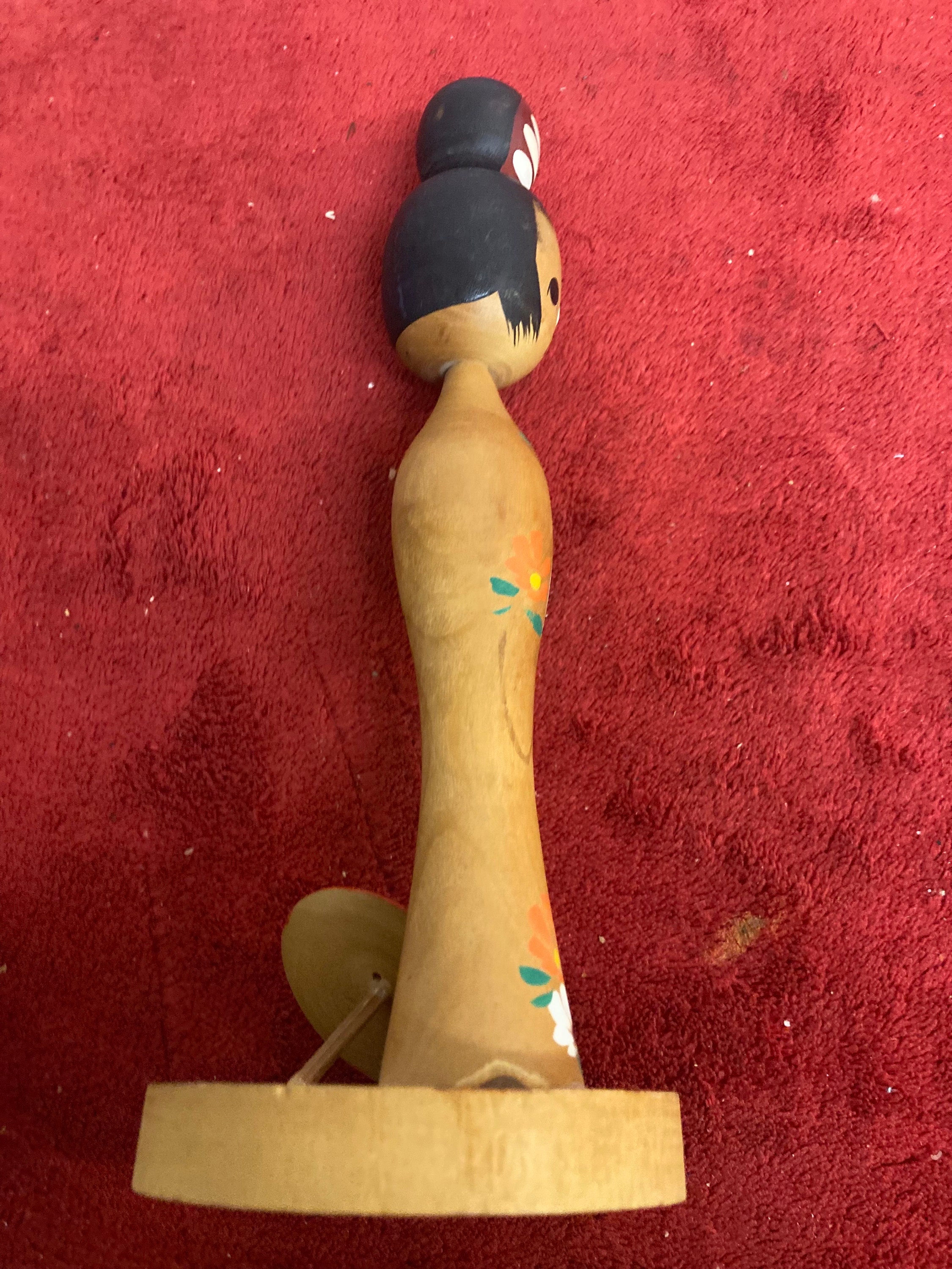 This is a vintage Japanese mid-Showa Era (c. 1950's) wooden doll known as a kokeshi.