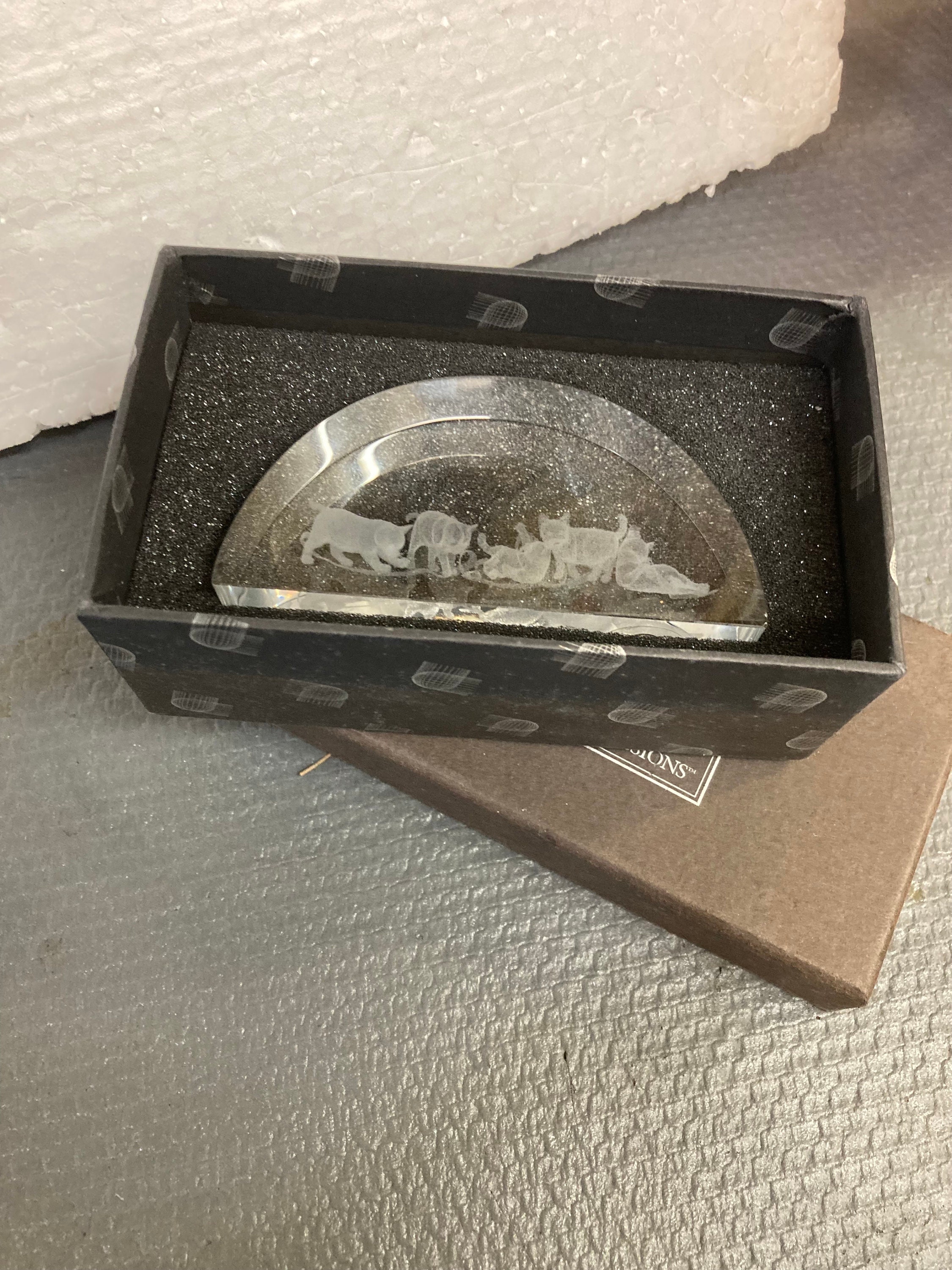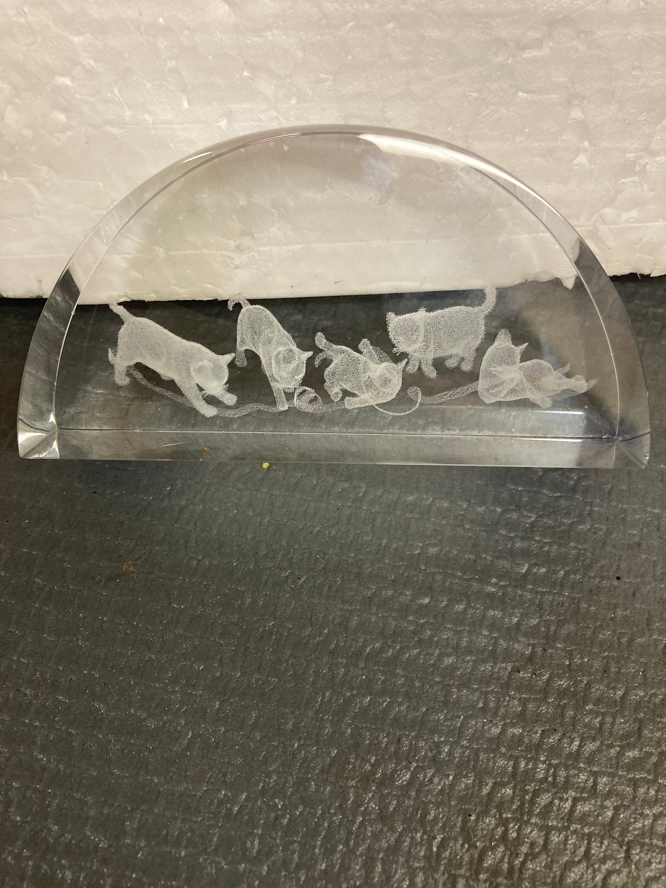 Crystal Impressions Paperweight ,Playful Cats3 3/4" wide x 1 3/4" tall x 1 " deepPerfect condition in original box ( 5 x 3 x2 )Never usedMade In Israel