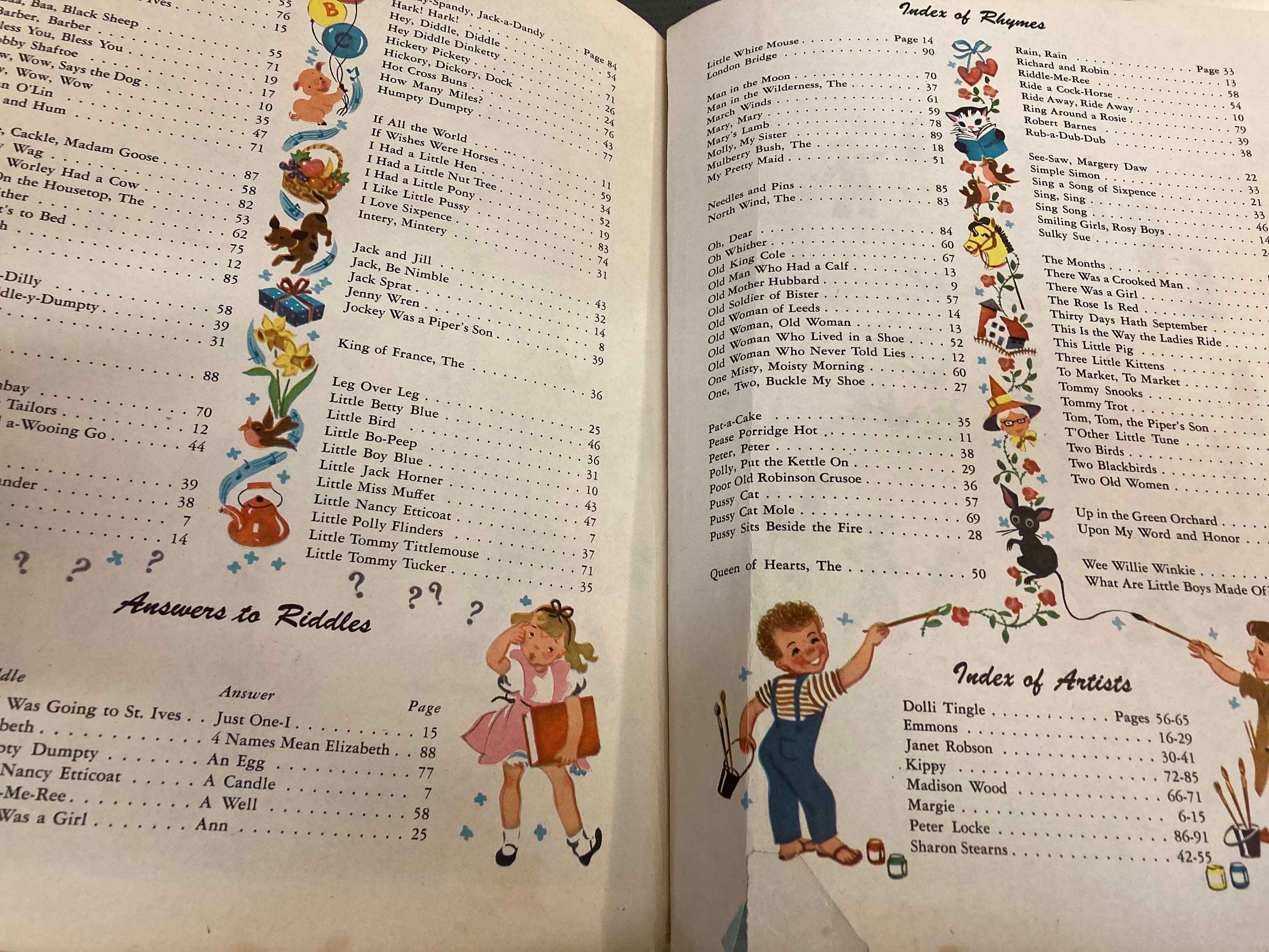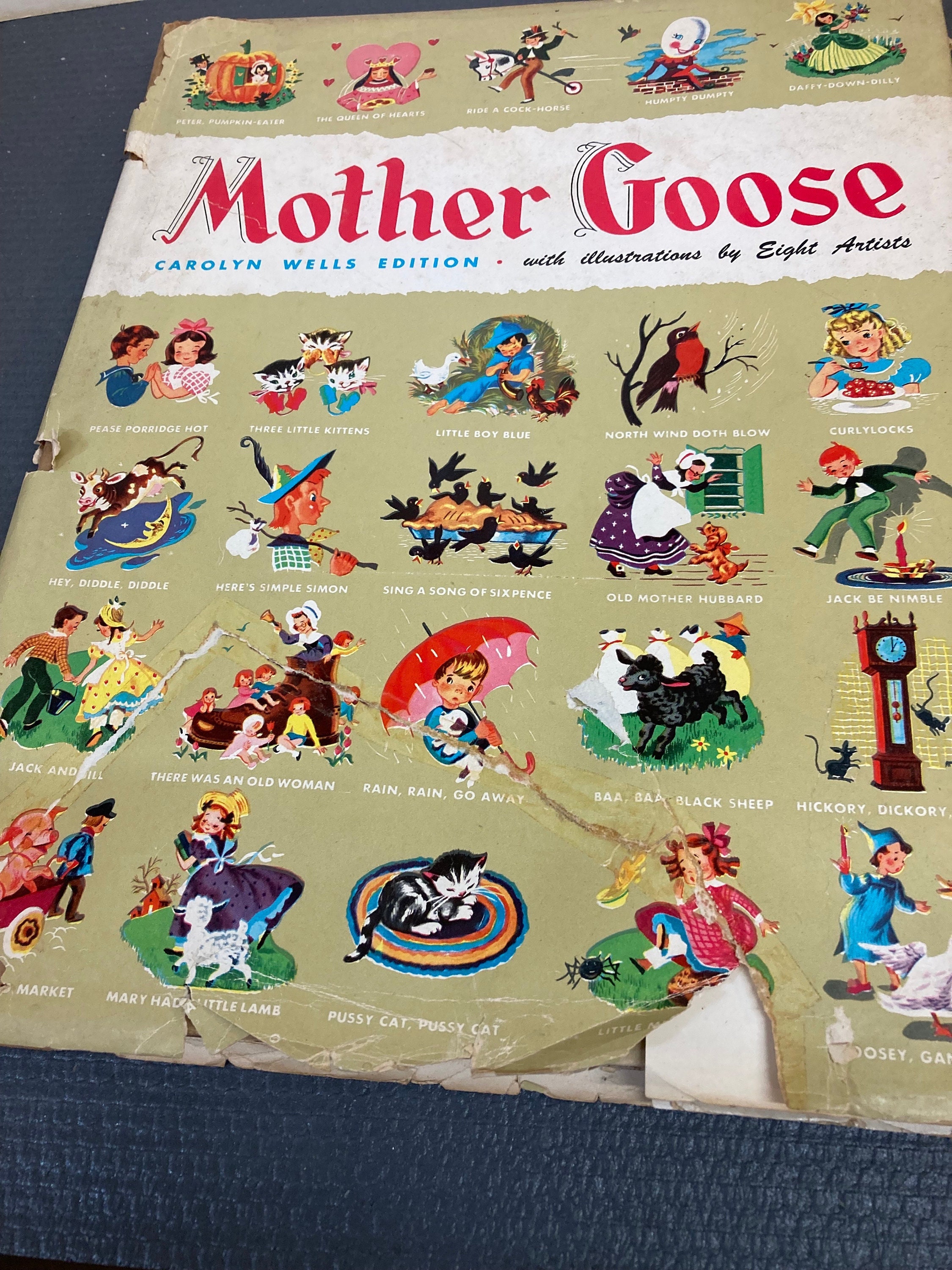 1)The Mother Goose by Carolyn Wells Edition, with Illustrations by Eight Artist, Copyright 1946 S. E, Lowe Inc Publisher