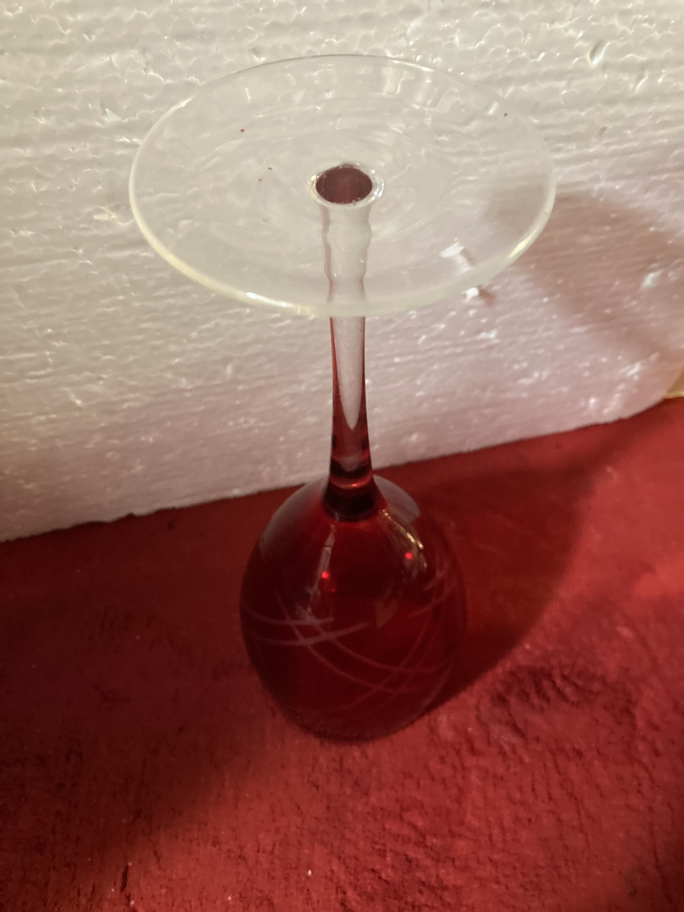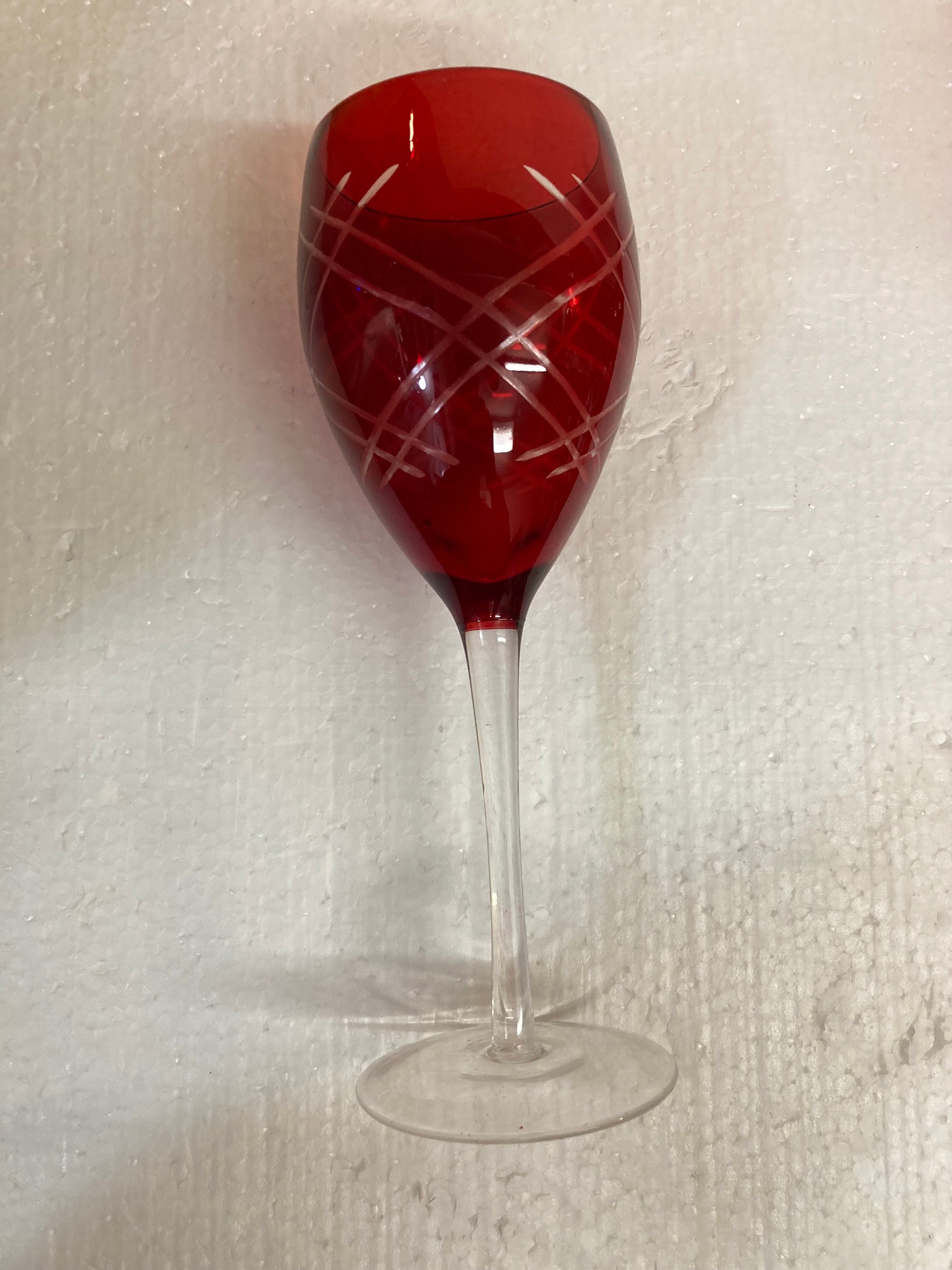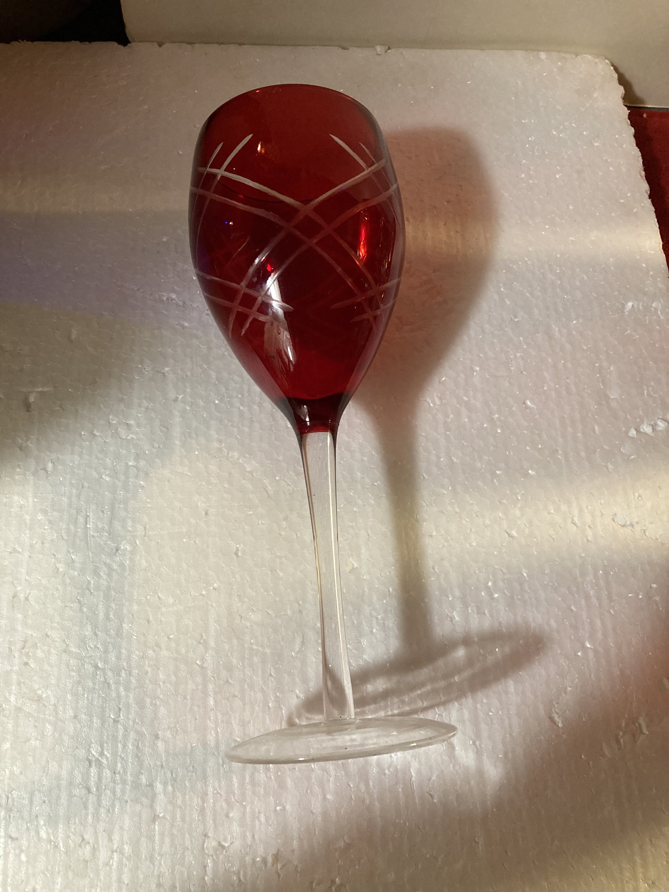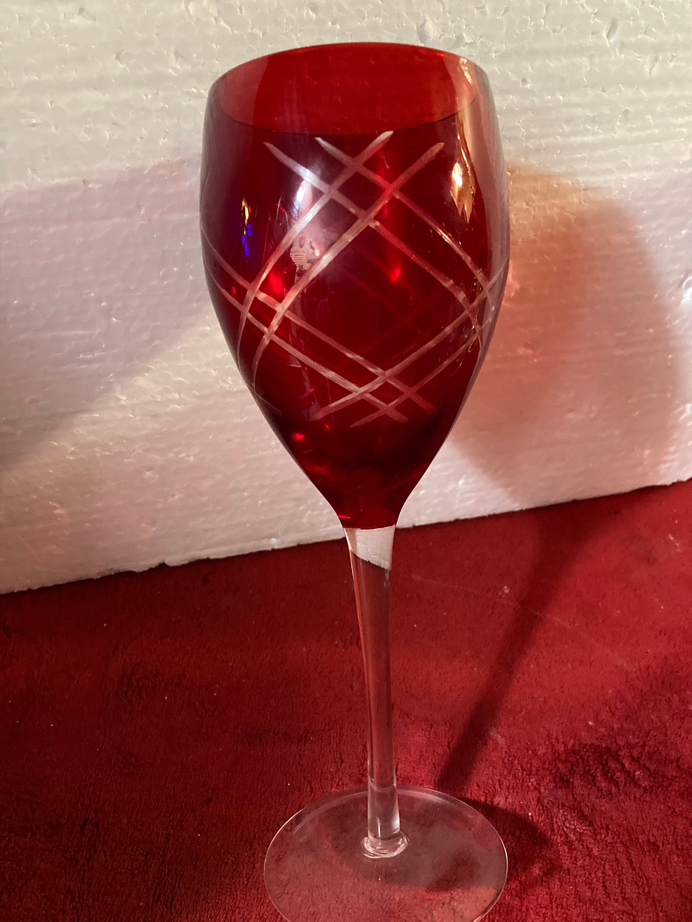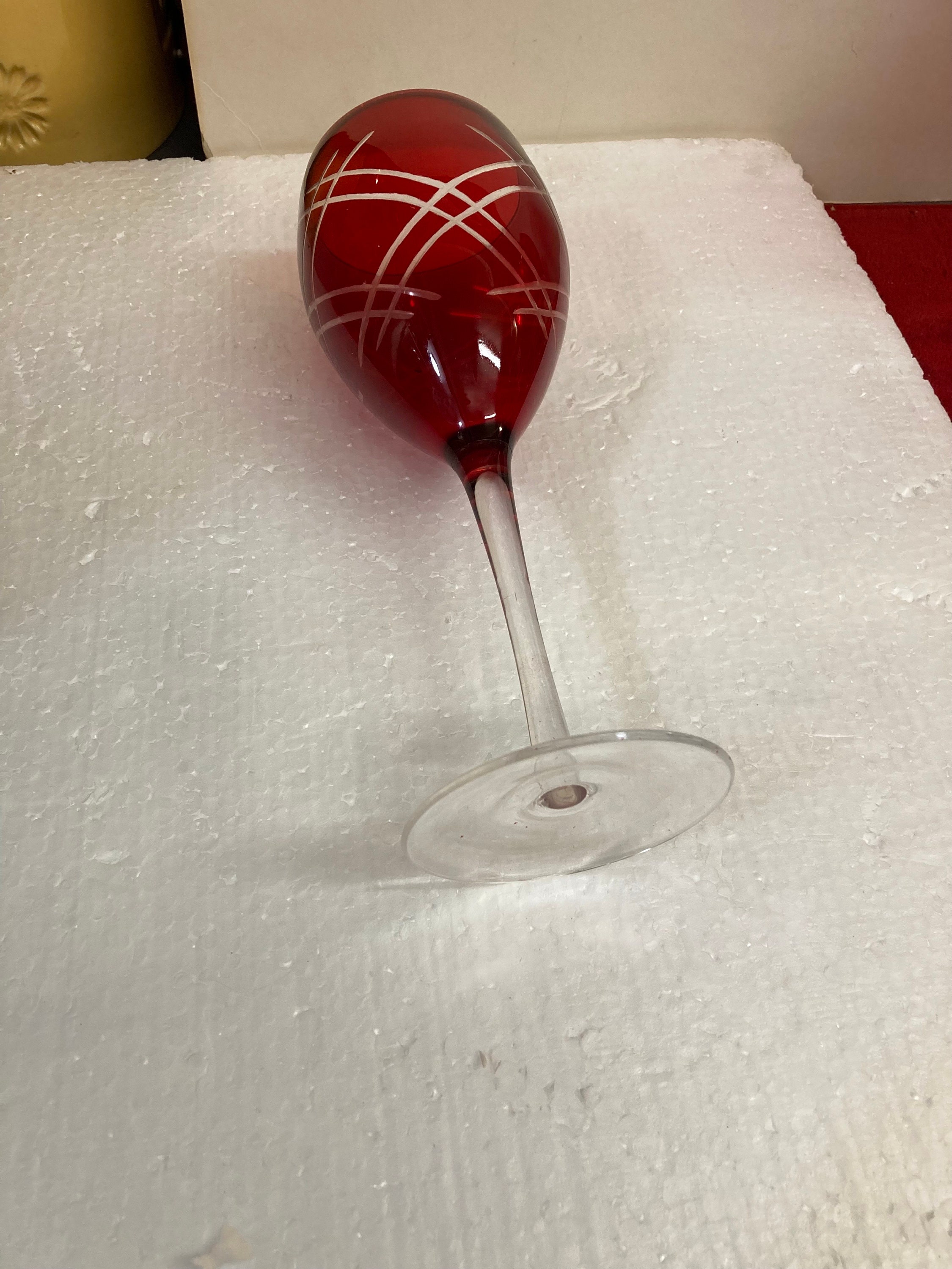 ART DECO RUBY RED WATER WINE COCKTAIL GLASS CURATED CUT TO CLEAR
