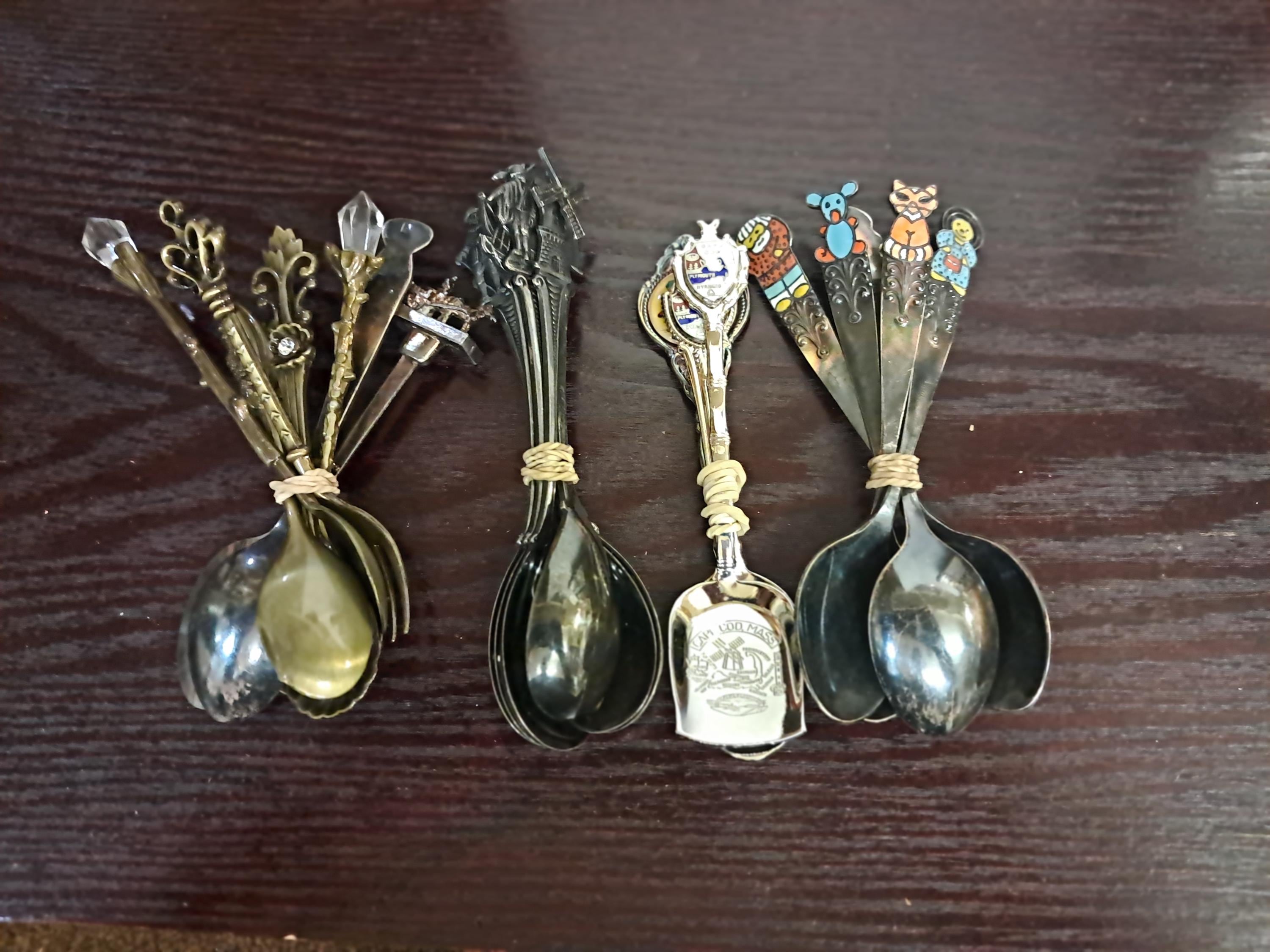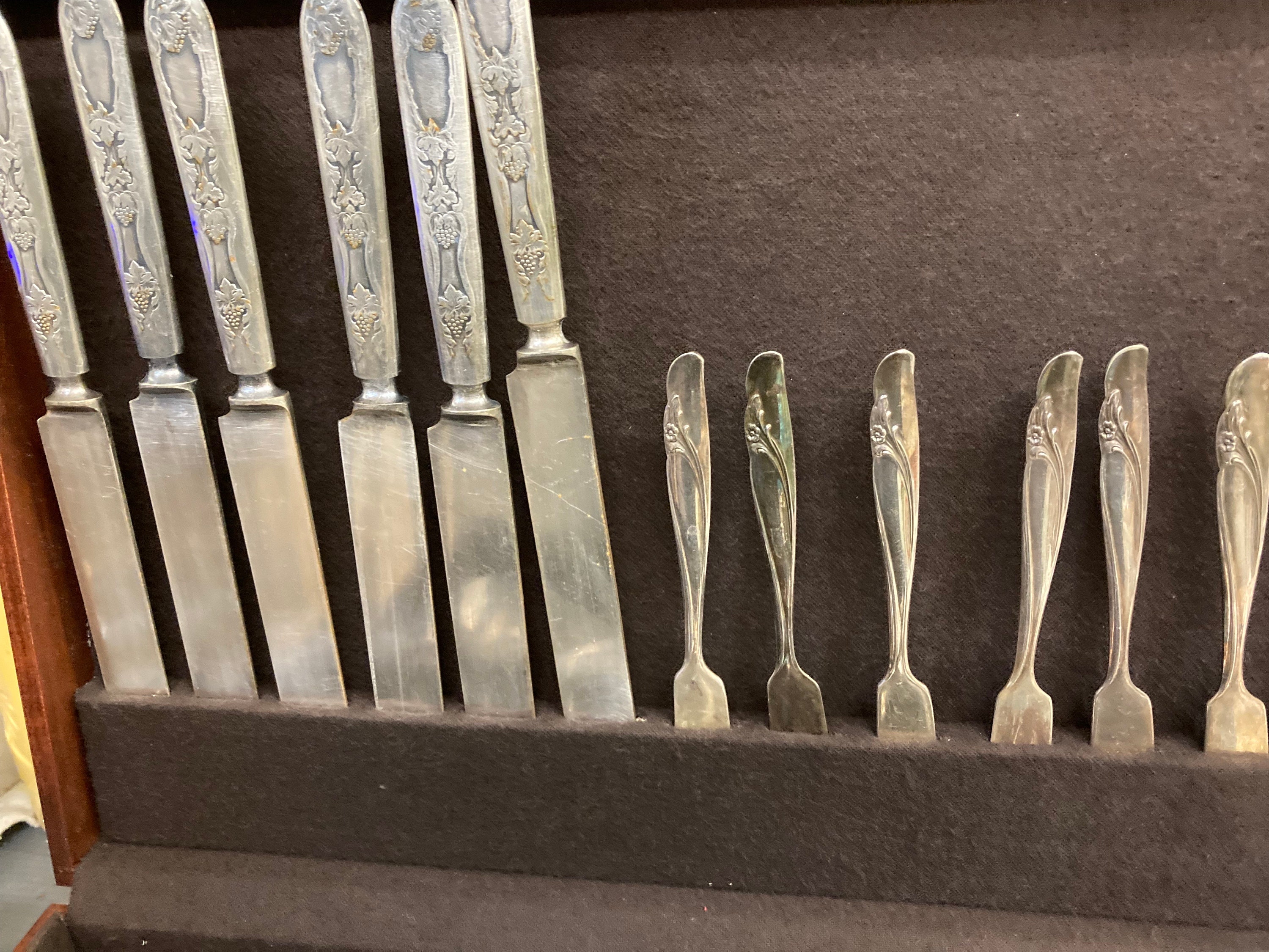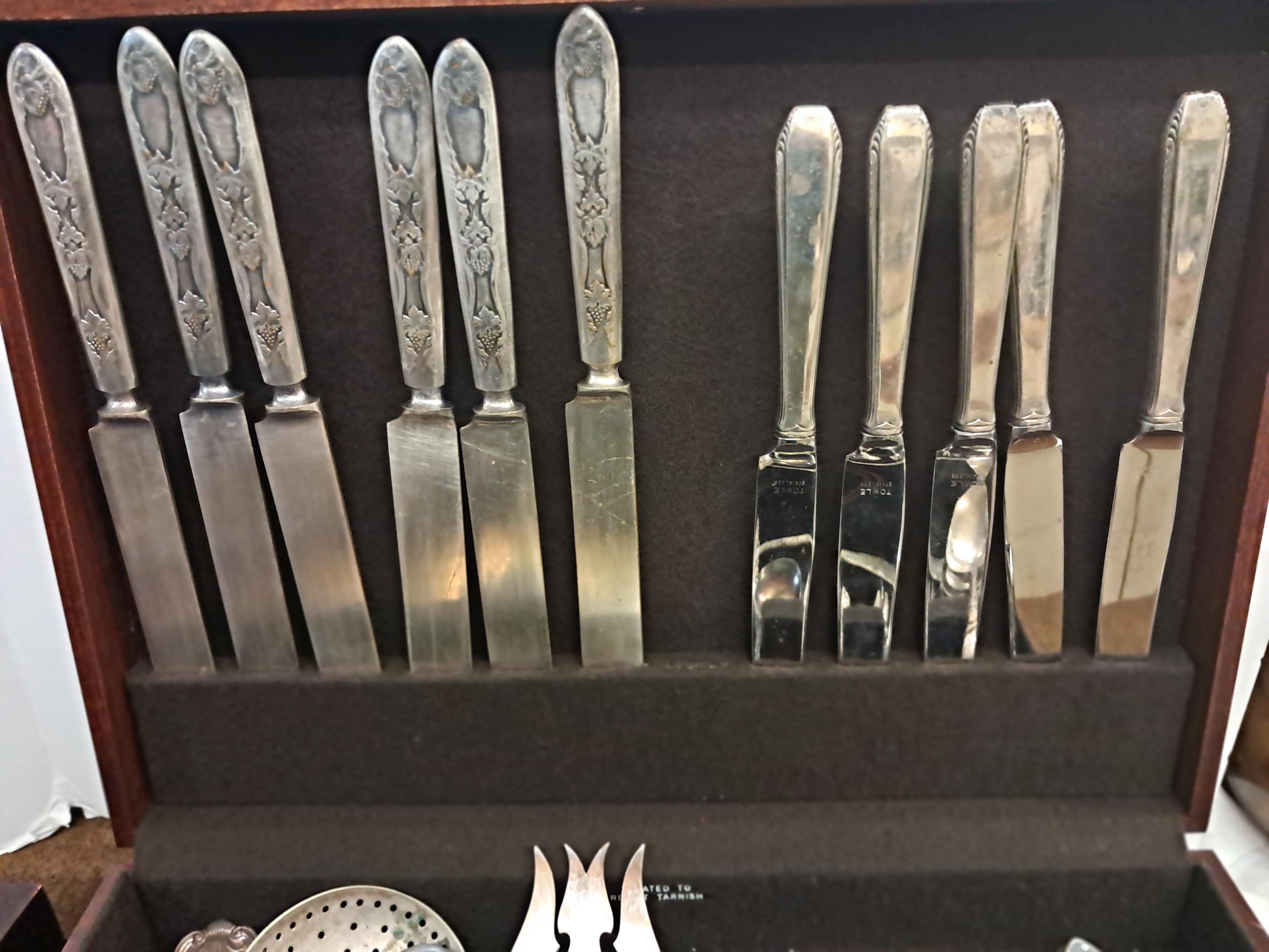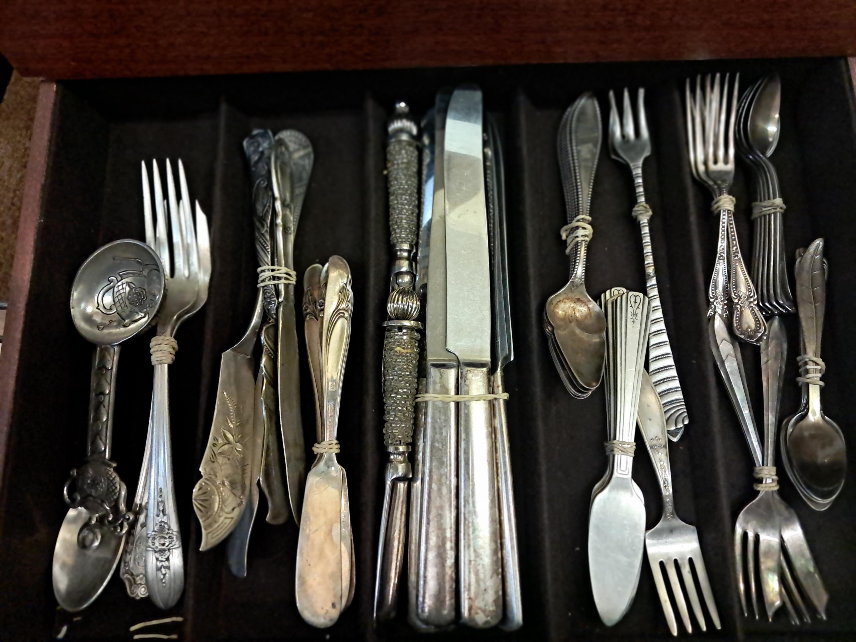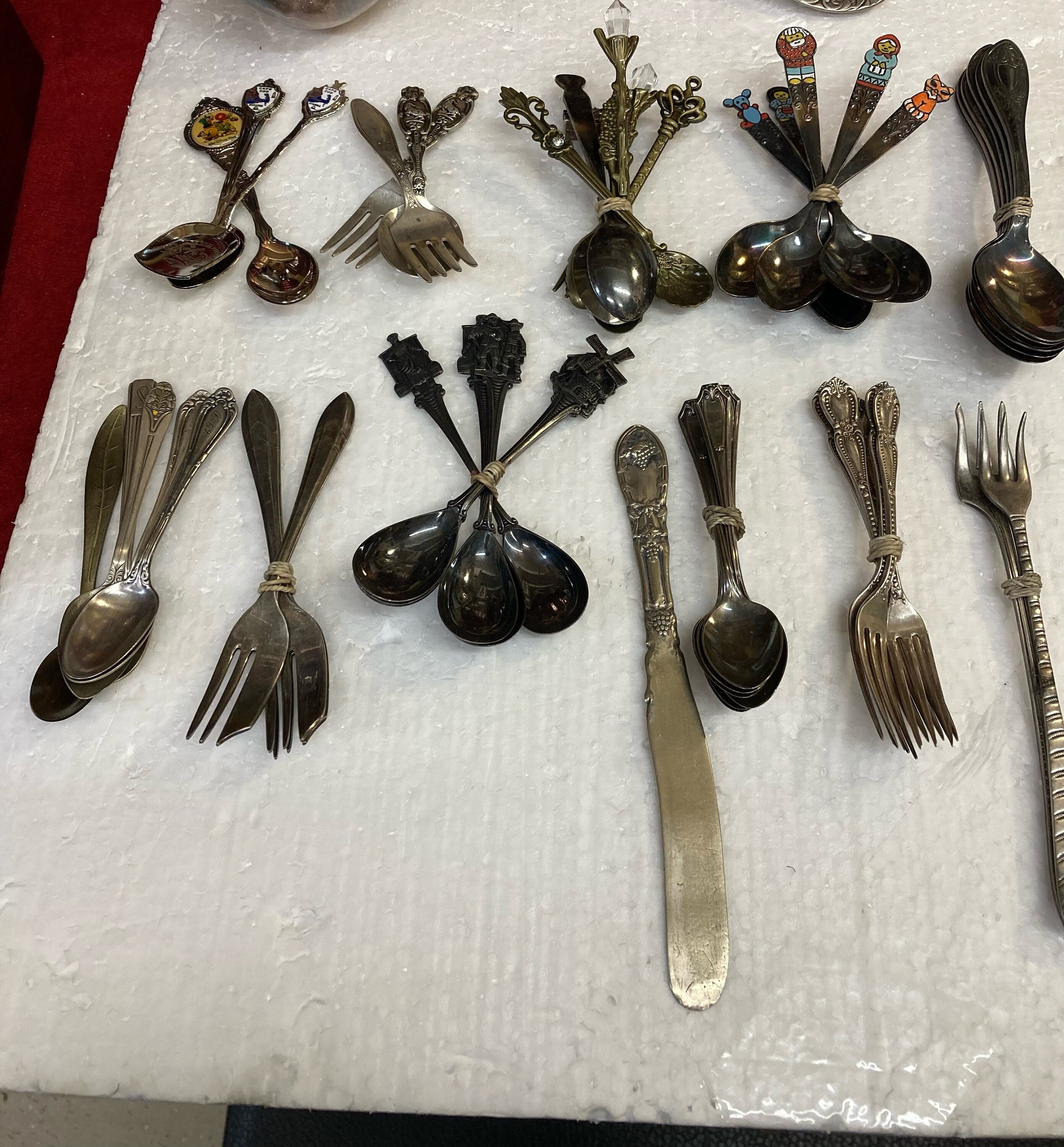 117 Pcs of Assorted Vintage / Antique Silver Plate FlatwareMost belong to early 20th Centuryplease refer to pictures as part of descriptionLess than $2 each priced to sell fast with a Vintage wooden case