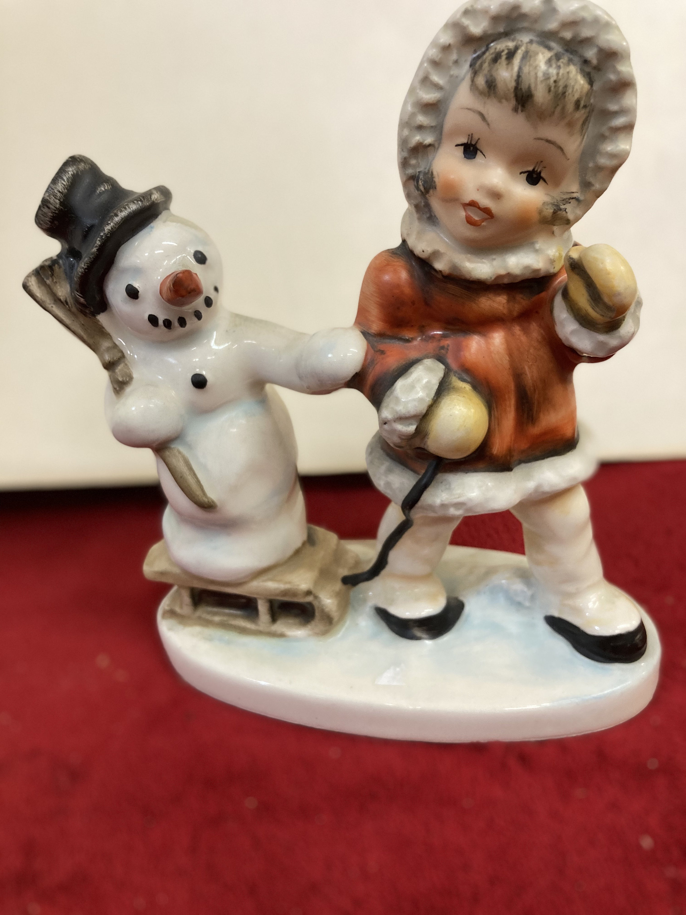I purchased a vintage Freidel figurine of a snowman being pulled on a sled by a girl in a red snowsuit. As a snowman collector, I have never seen anything as unique as this. The price was less than I thought an item like this would cost. The seller shipped in very quick time and did a superb packing job. It arrived in perfect condition and I would gladly purchase items from this seller again. I am extremely satisfied with my purchase.