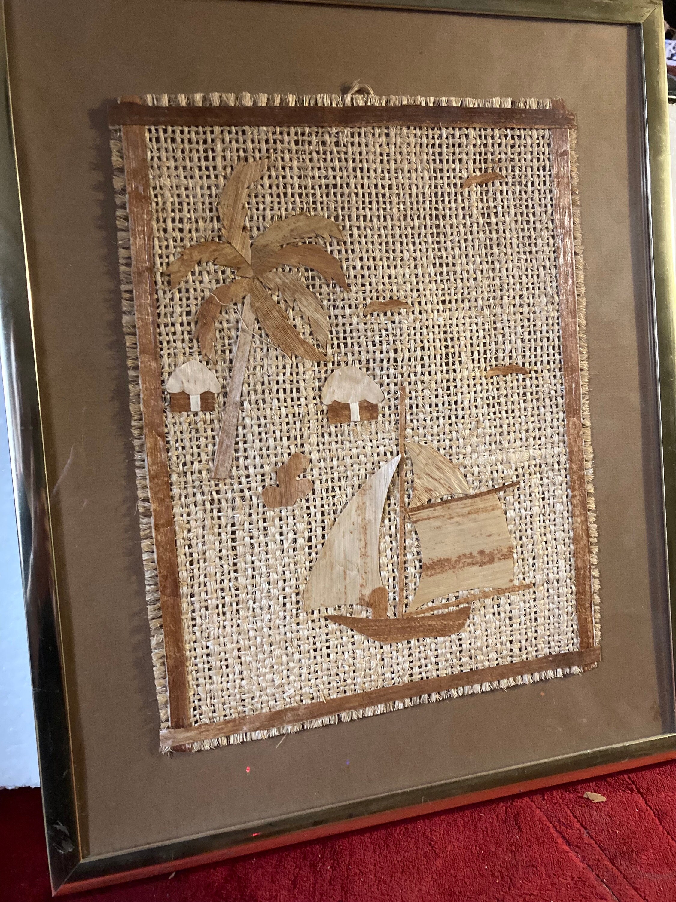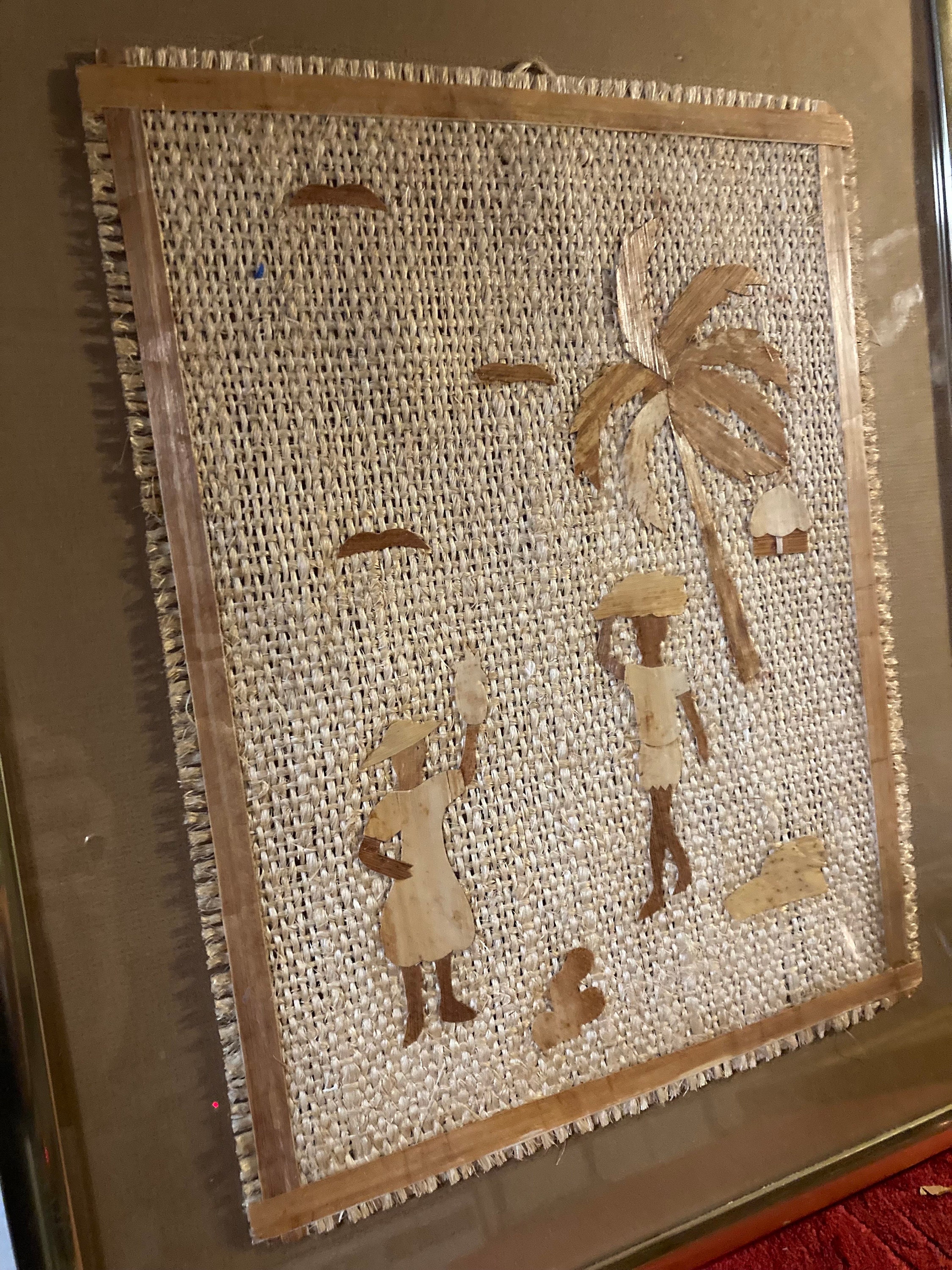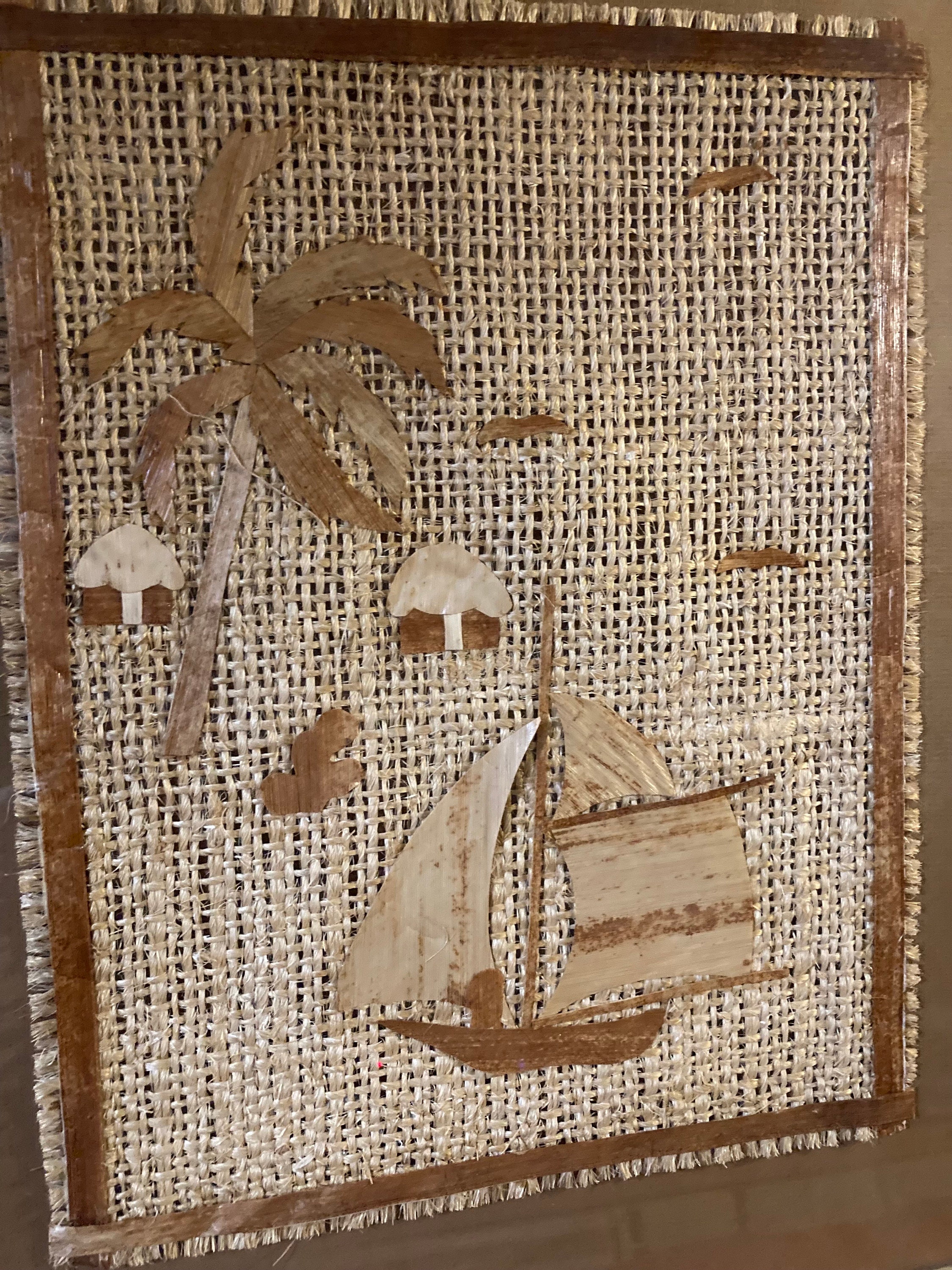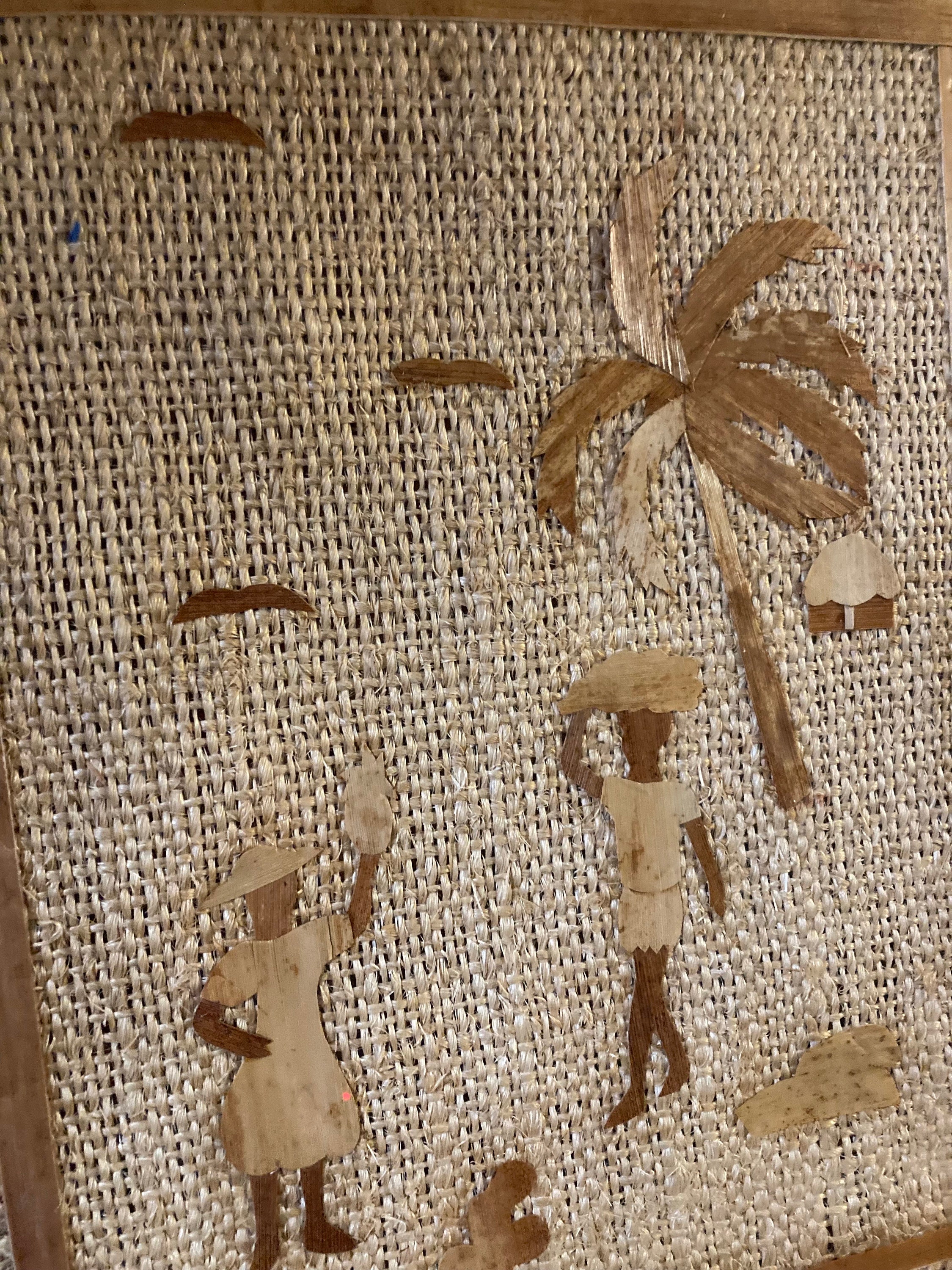 Vintage Folk Art Handmade Wood Plaque Art Work, Jamaica
