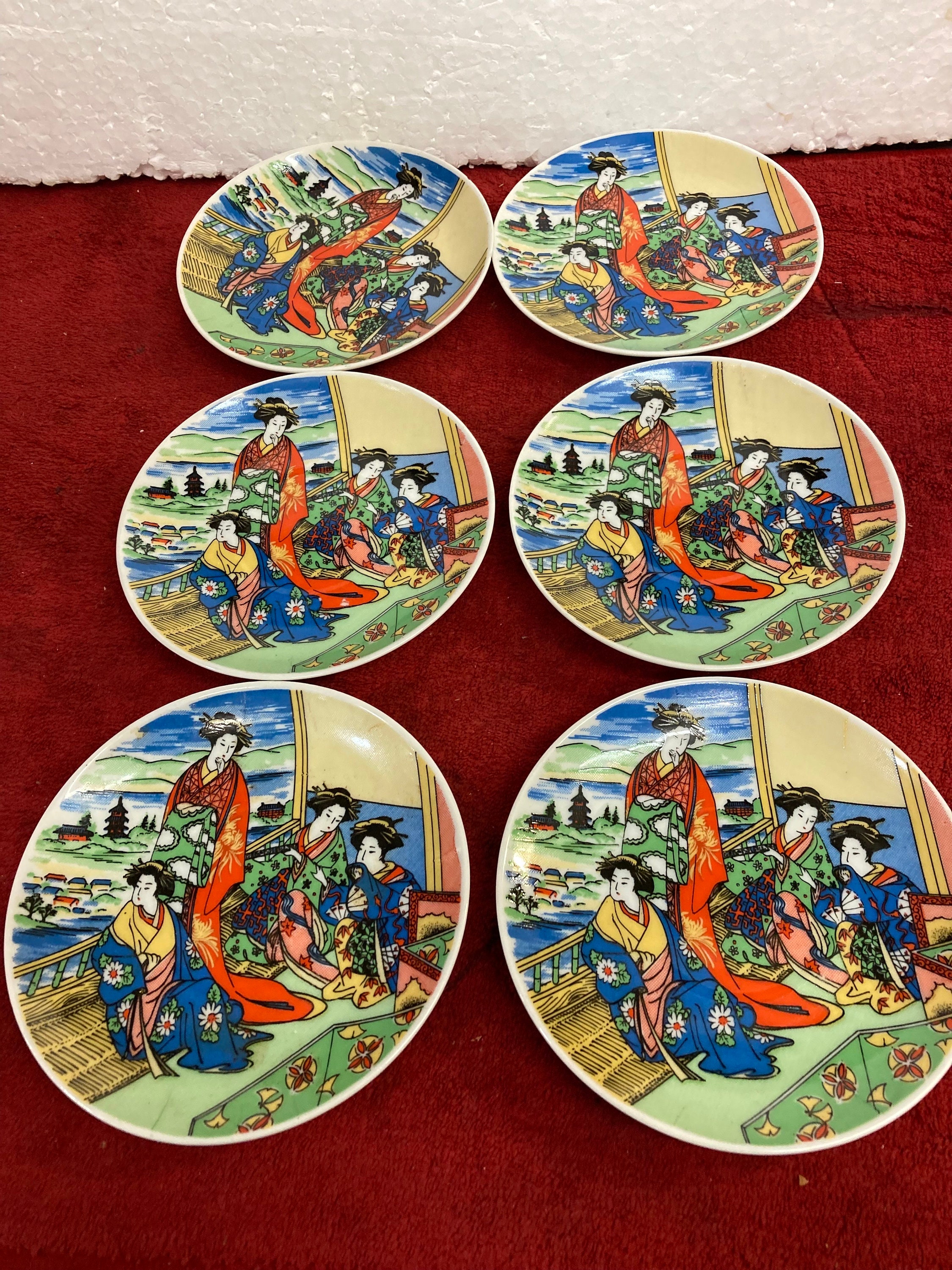 6 Vintage A.M.V. Japan Hand Painted Porcelain 4.5 " Collectible Plates